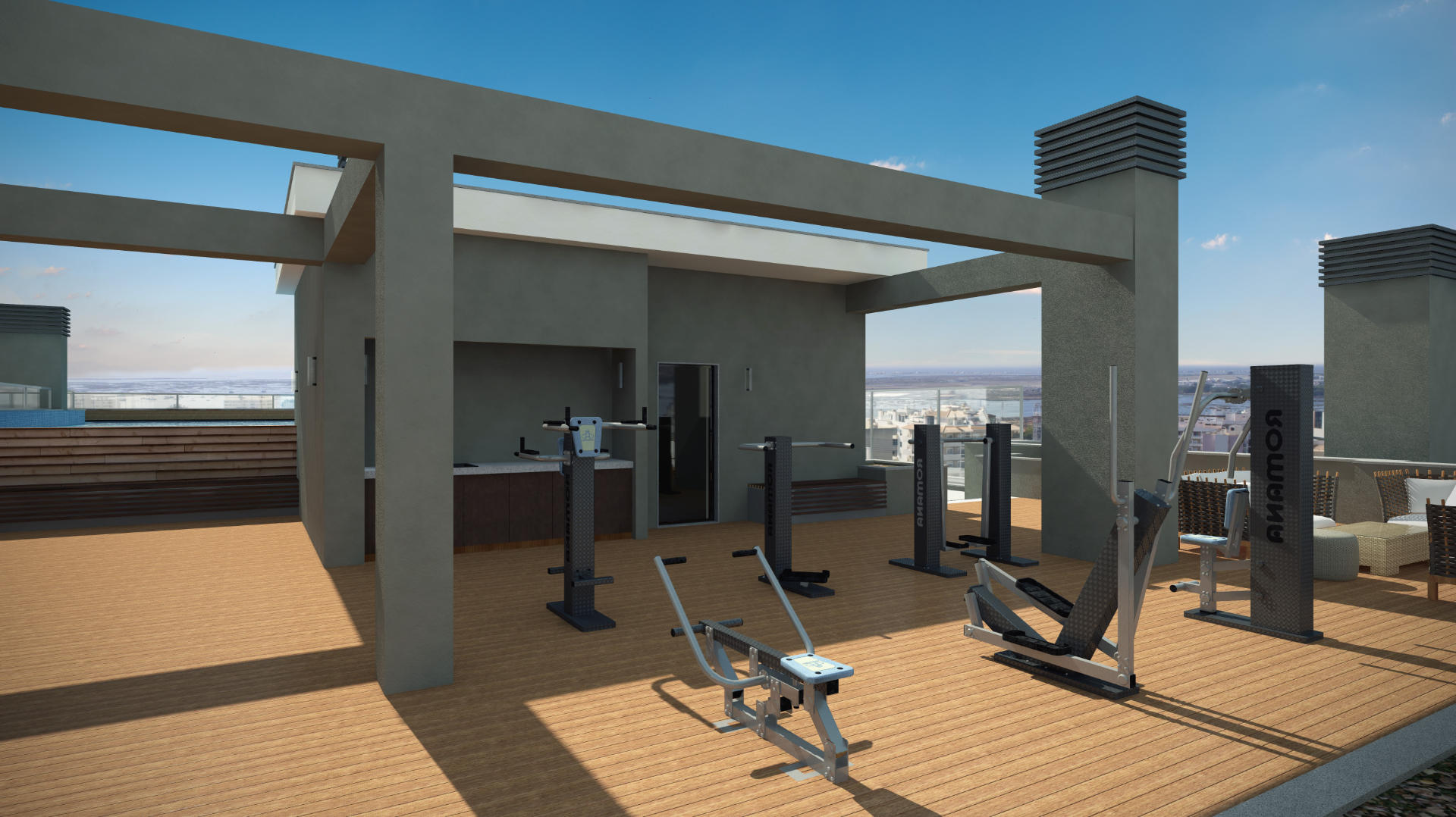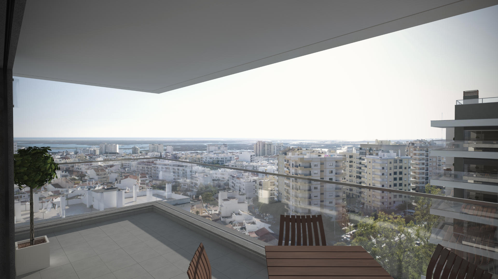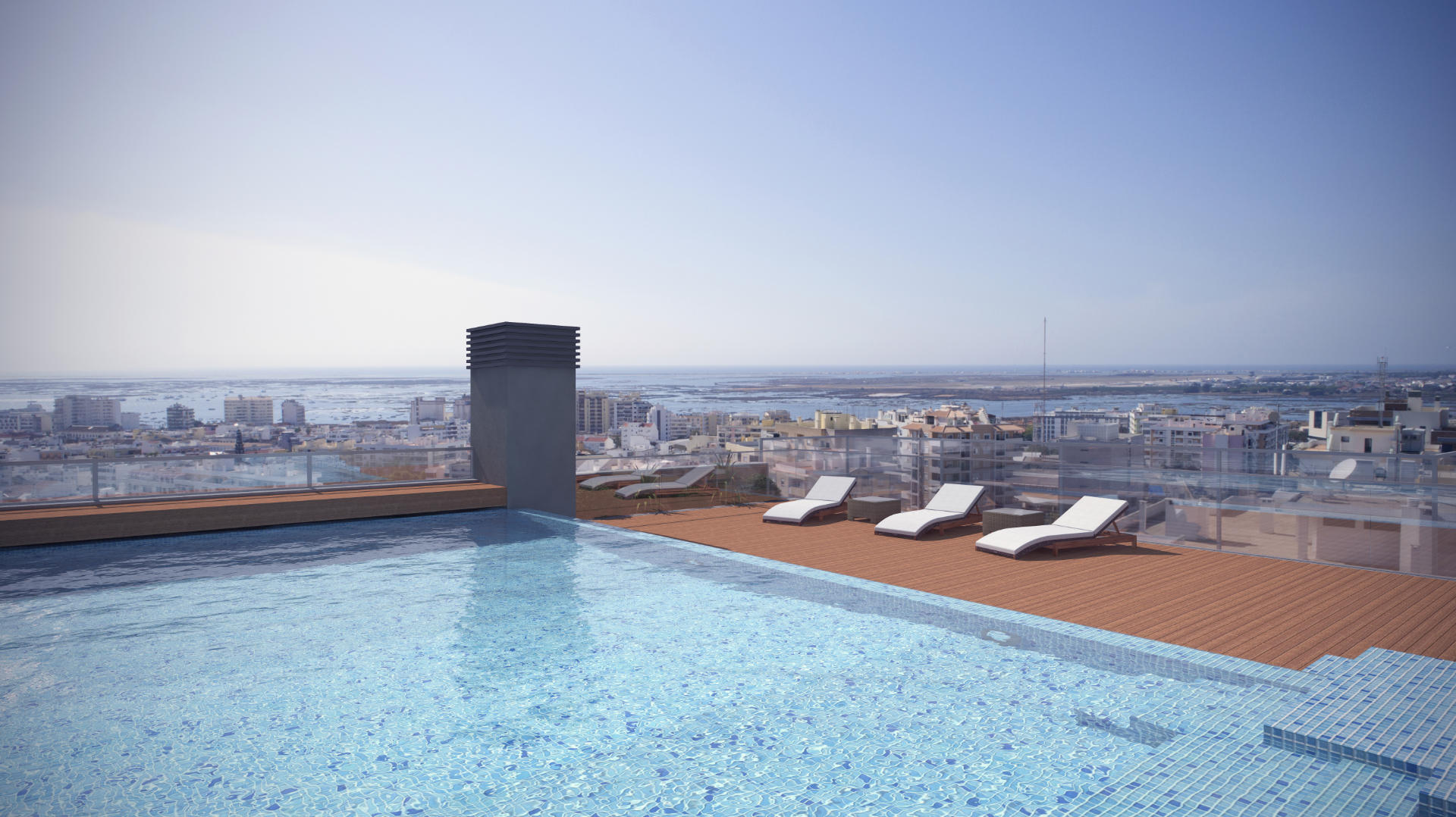 The standout features include a fantastic rooftop pool, panoramic views of Faro and the coast, and a state-of-the-art gym. These automated apartments integrate technology with contemporary design, ensuring a luxurious and private living space.