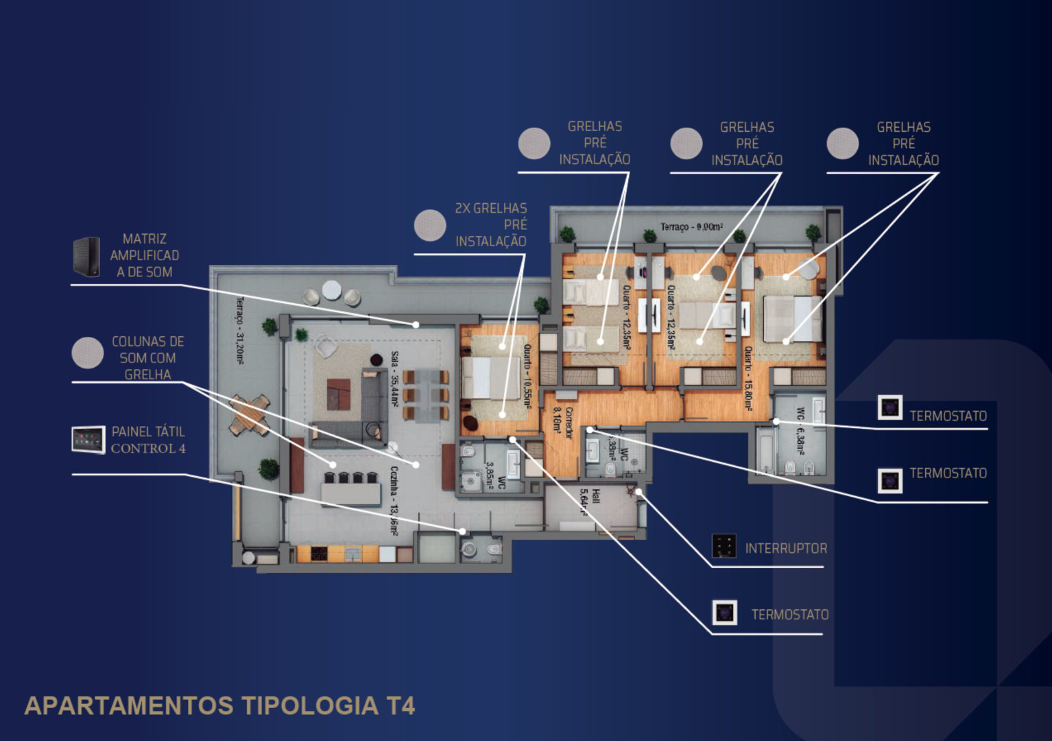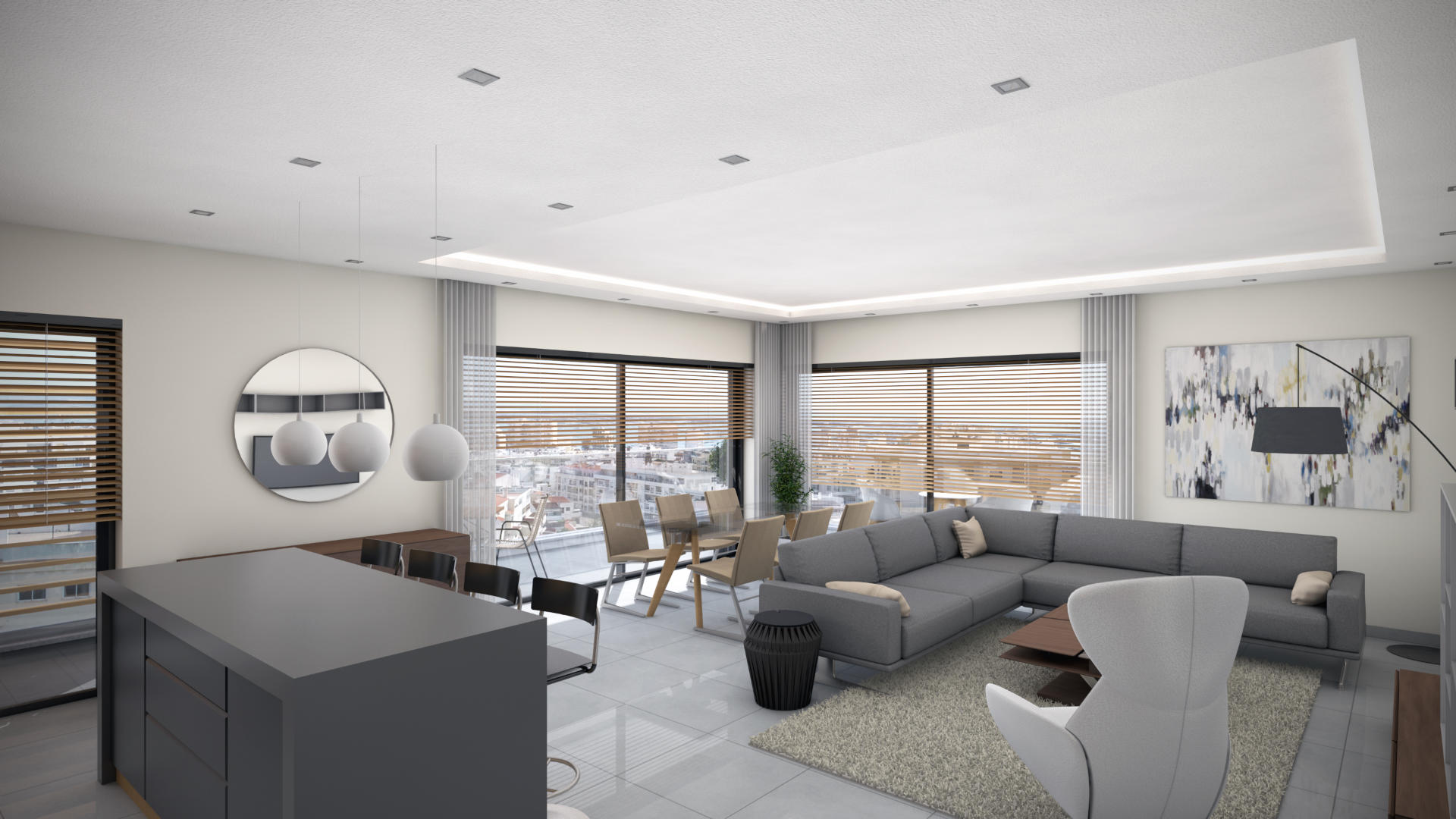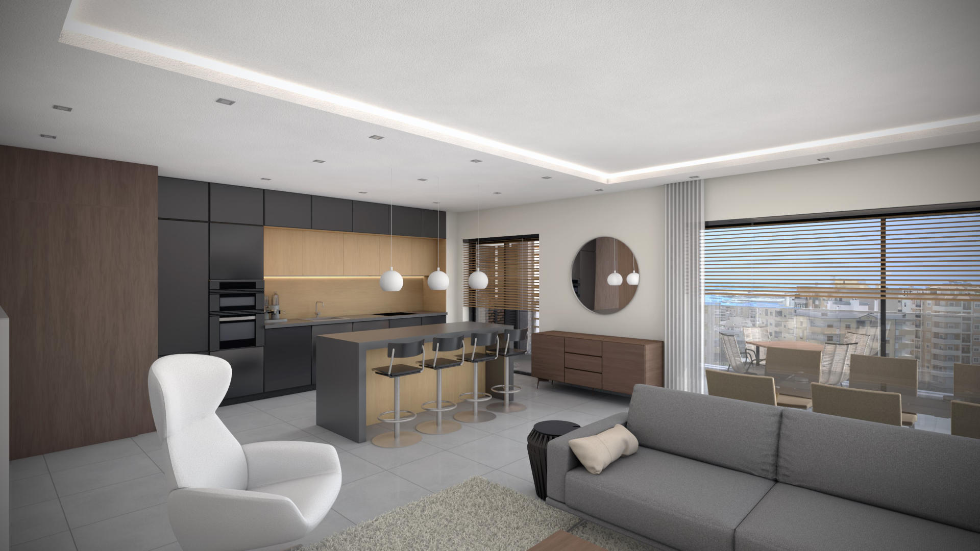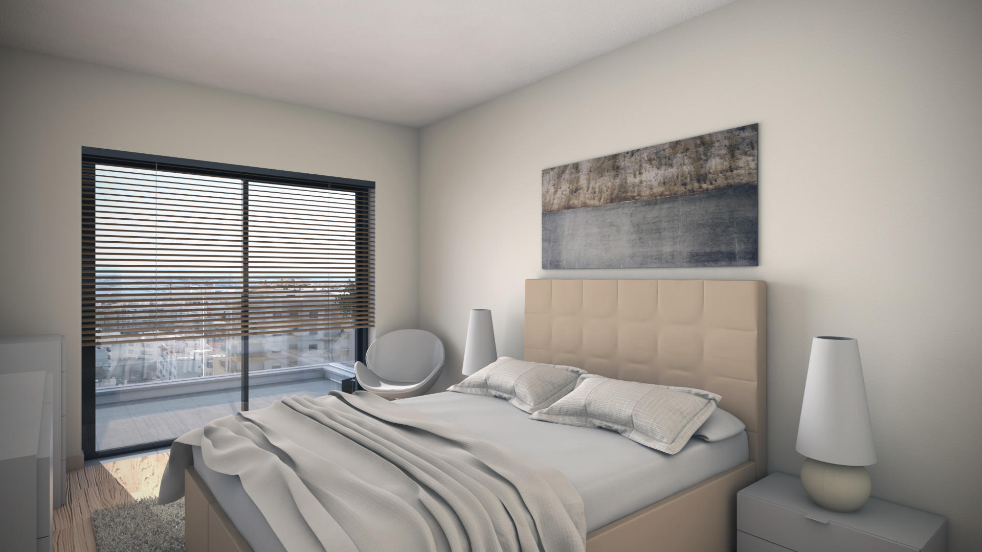 The standout features include a fantastic rooftop pool, panoramic views of Faro and the coast, and a state-of-the-art gym. These automated apartments integrate technology with contemporary design, ensuring a luxurious and private living space.