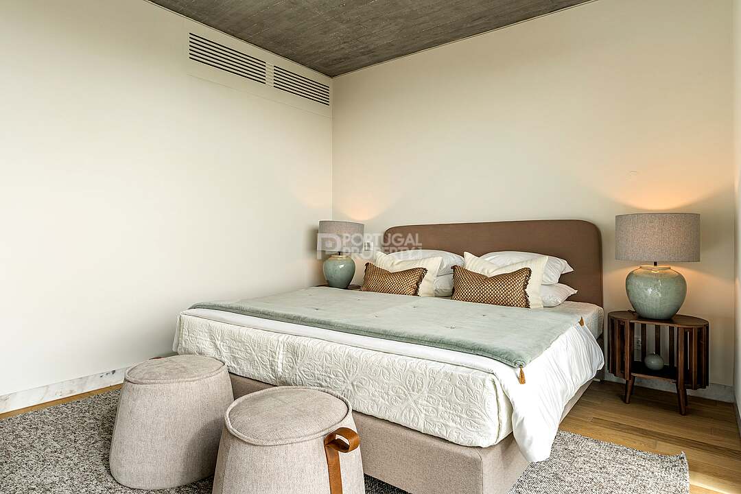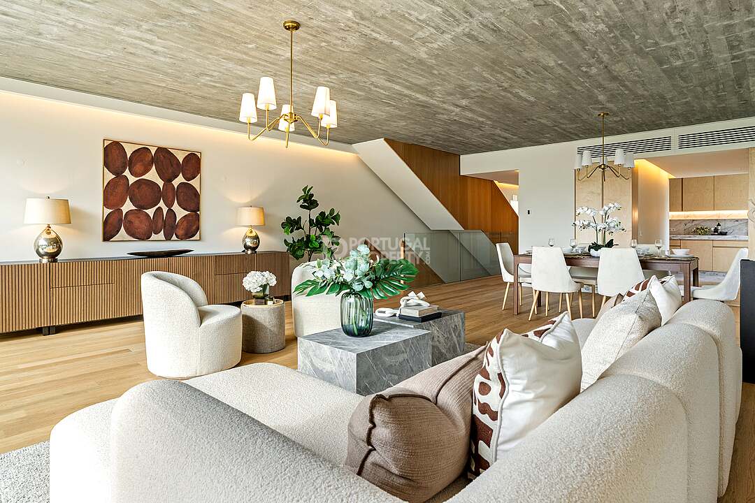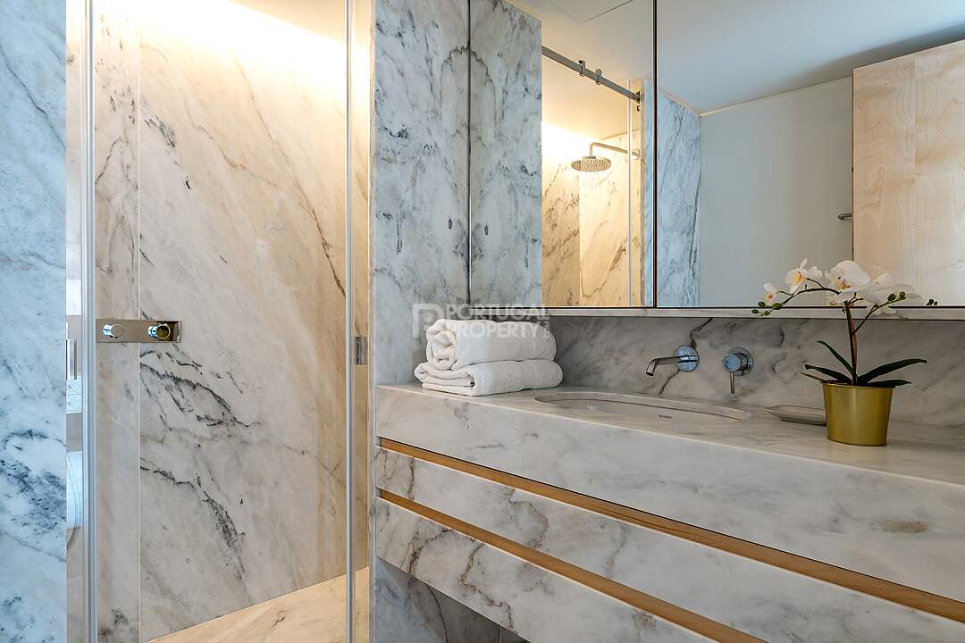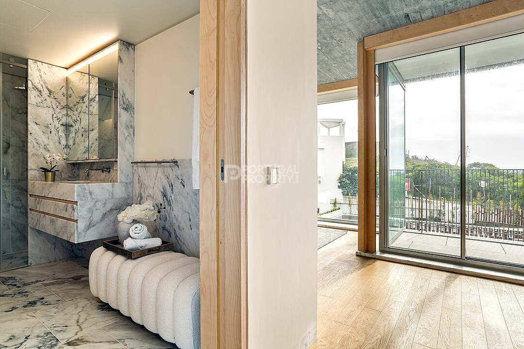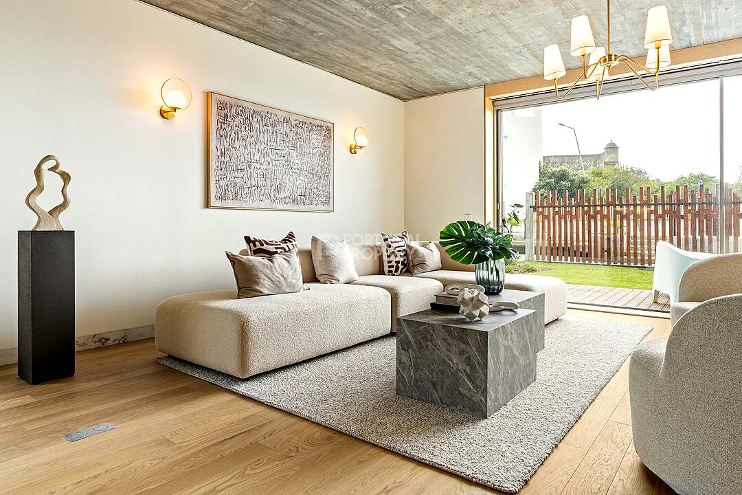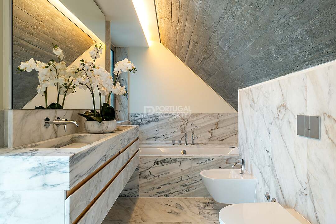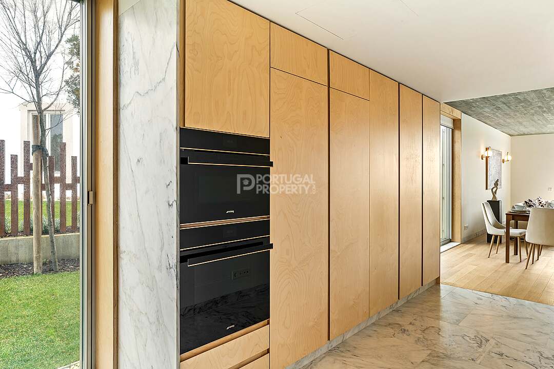 This unit is a V4+1, modern design, with 351 m2 of gross area, a triplex with a private elevator on all floors, a private garden of 127 m2, 23 m2 of terraces with an amazing sea view, and 4 large, private, underground parking spaces with direct and private access to the house.