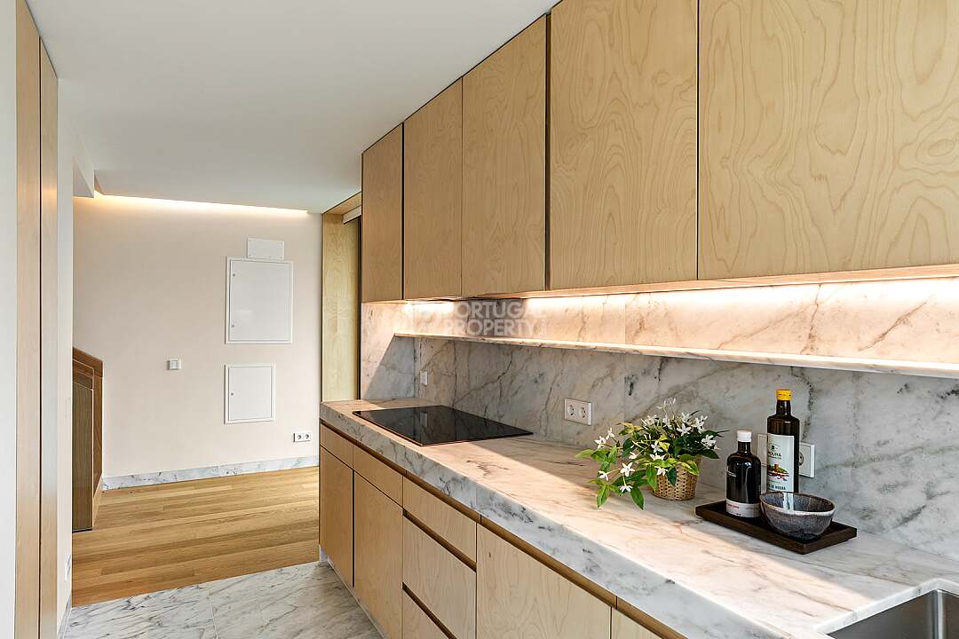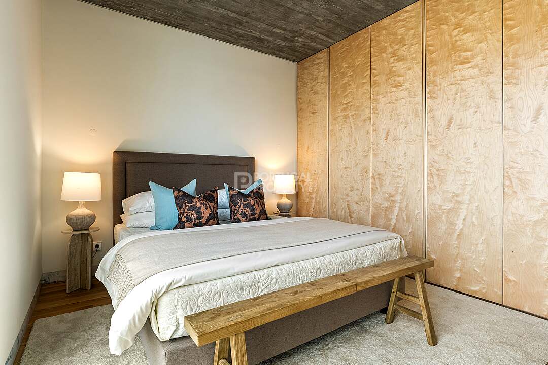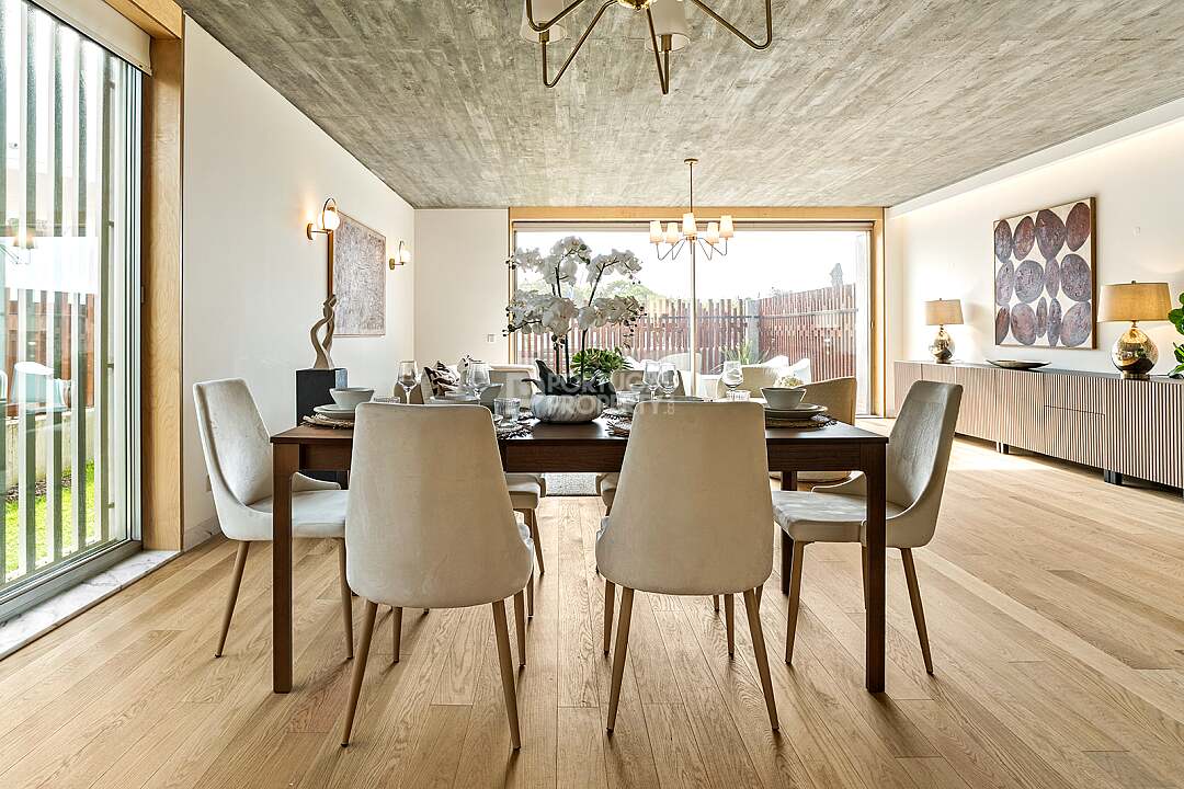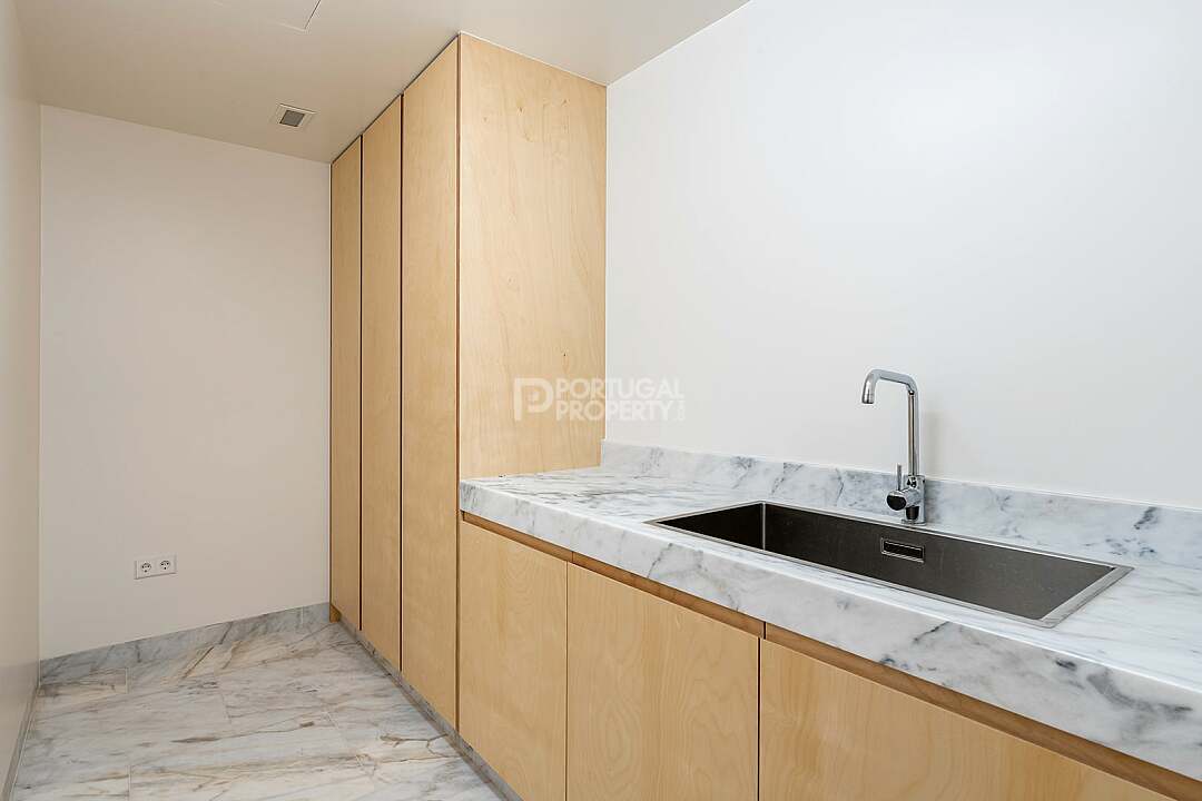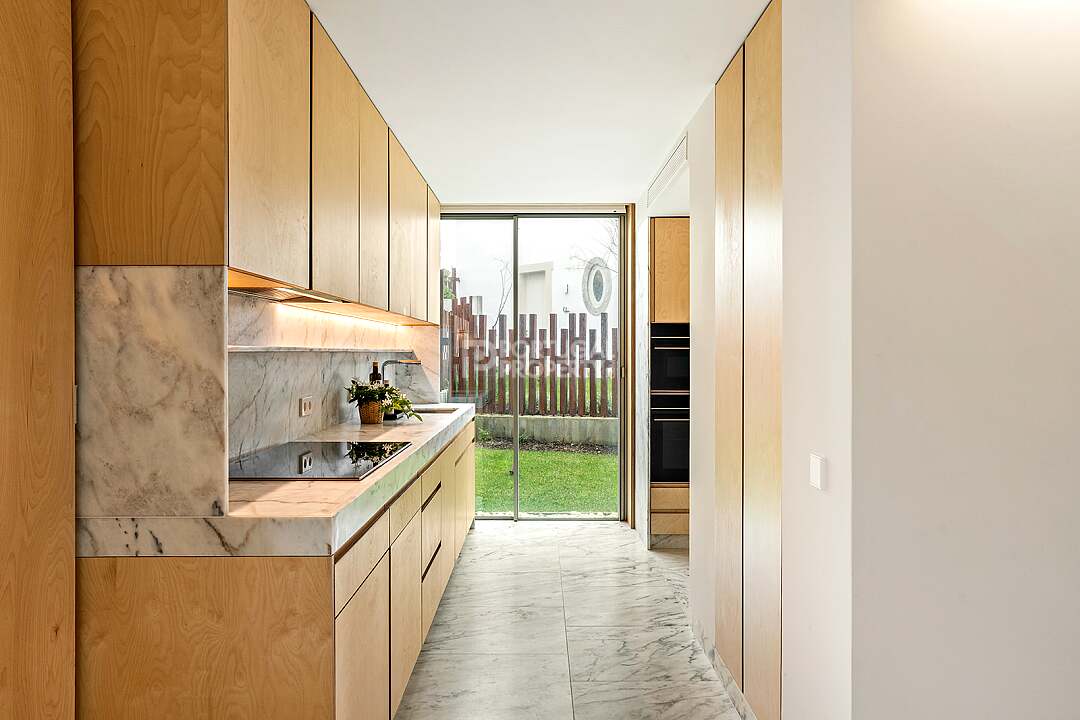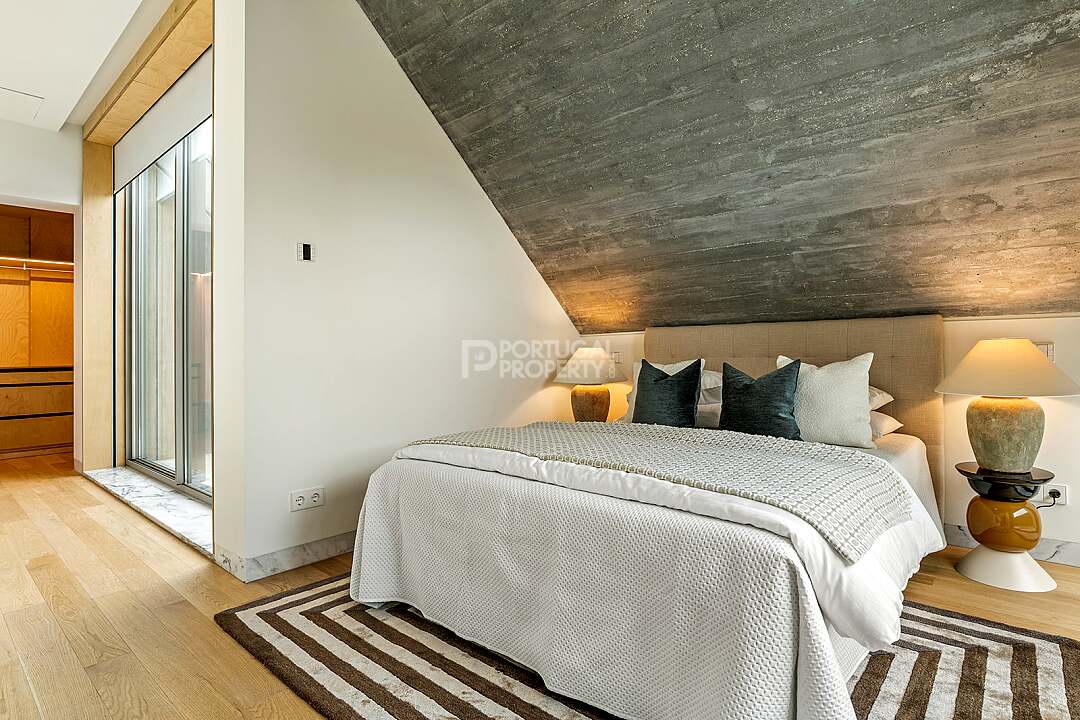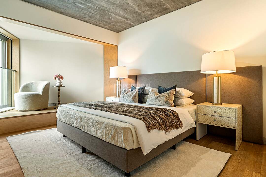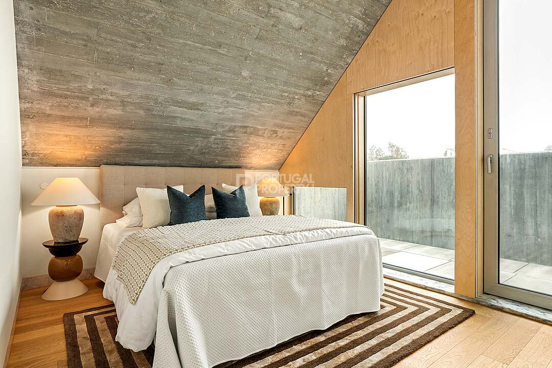 This unit is a V4+1, modern design, with 351 m2 of gross area, a triplex with a private elevator on all floors, a private garden of 127 m2, 23 m2 of terraces with an amazing sea view, and 4 large, private, underground parking spaces with direct and private access to the house.