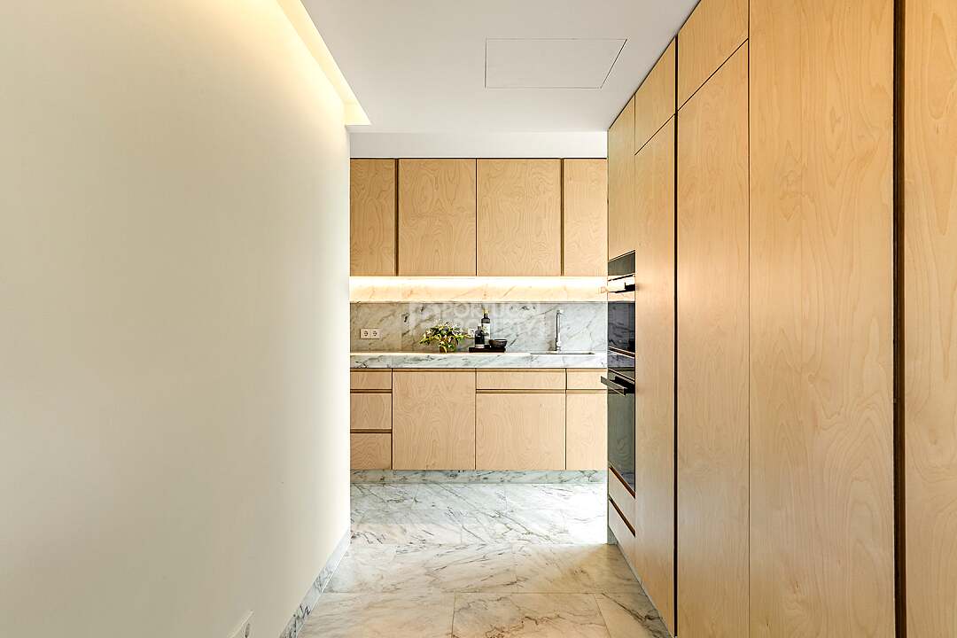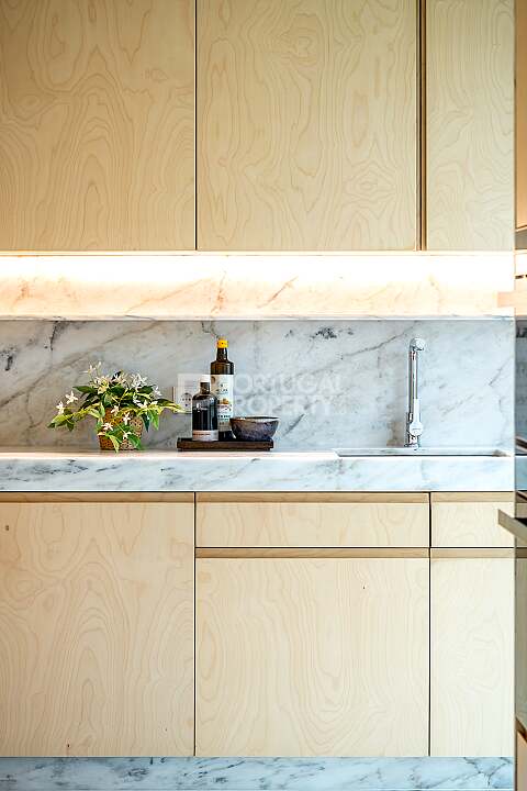 The unit will be finished with premium details, like the ultra-low-profile window system, Italian bathroom appliances, natural stone, and top-end kitchen appliances.
