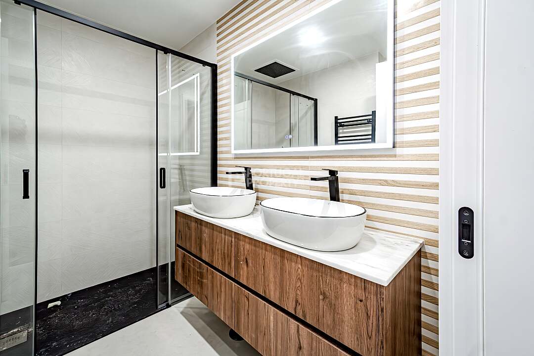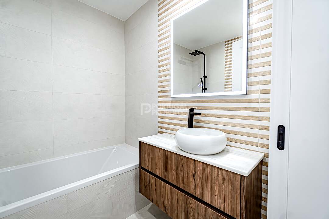 The bedrooms are fitted with built-in air conditioning, ensuring year-round comfort, and floor-to-ceiling wardrobes that optimise storage while maintaining a sleek, organised look. The bathrooms boast a minimalist, contemporary style, combining functionality with elegance.