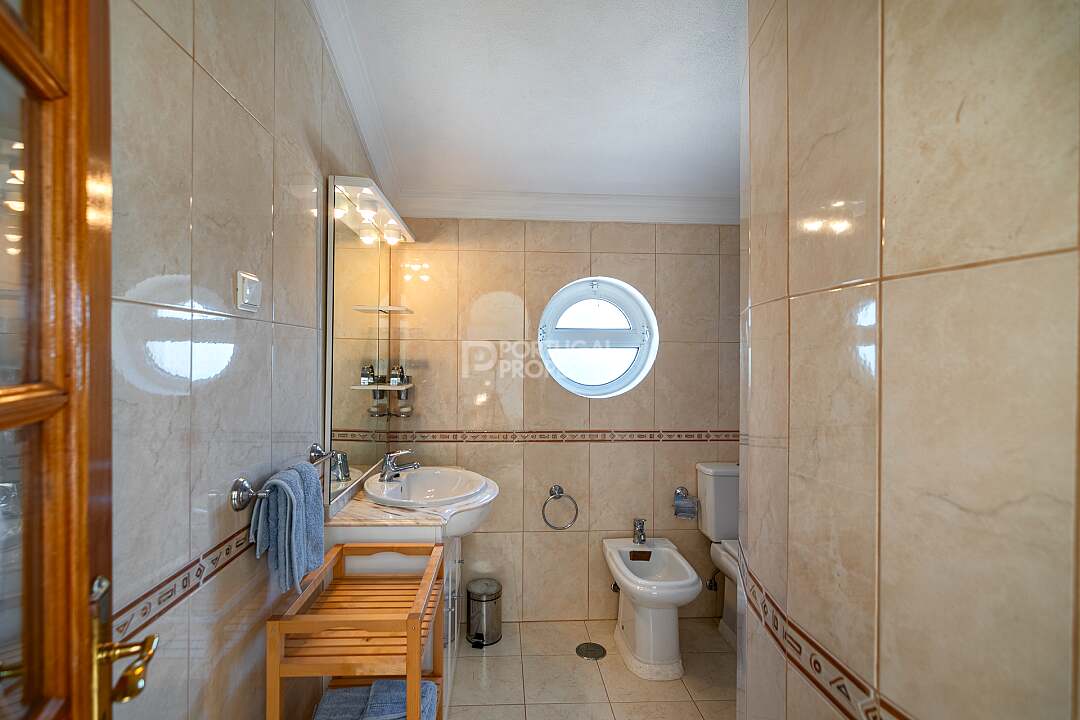 The first floor provides an open landing area used as a lounge with access to a wonderful large terrace with views over the neighbourhood, the hills, and beyond to the ocean. There are 3 bedrooms, two of which share a spacious bathroom, and the 3rd bedroom is en-suite.