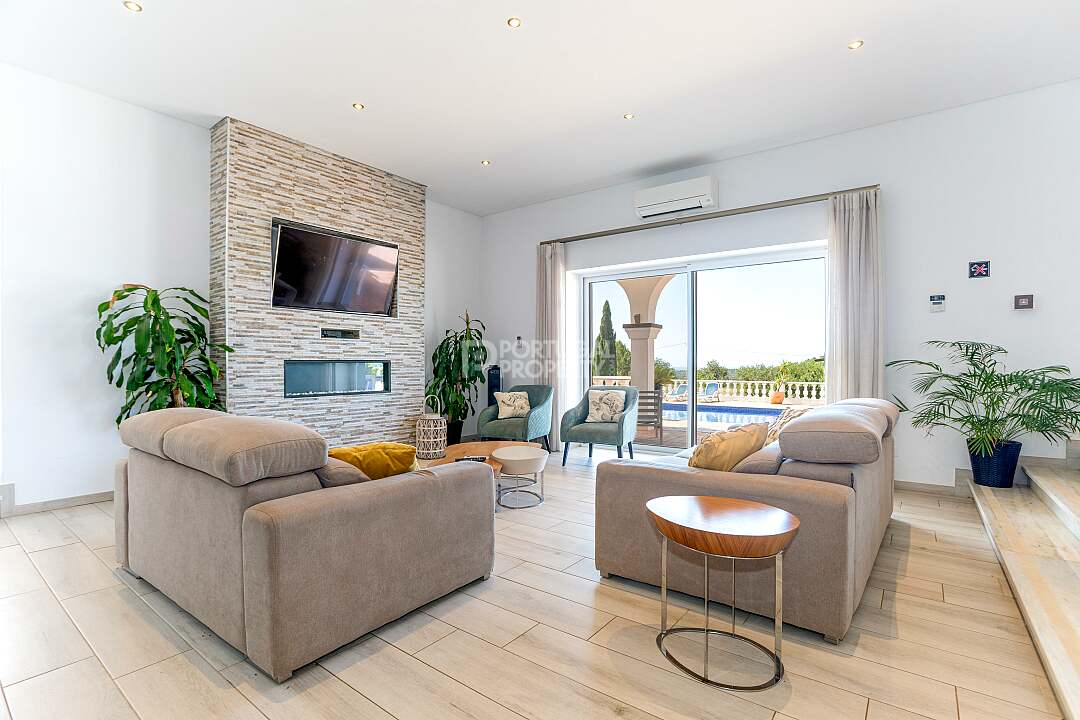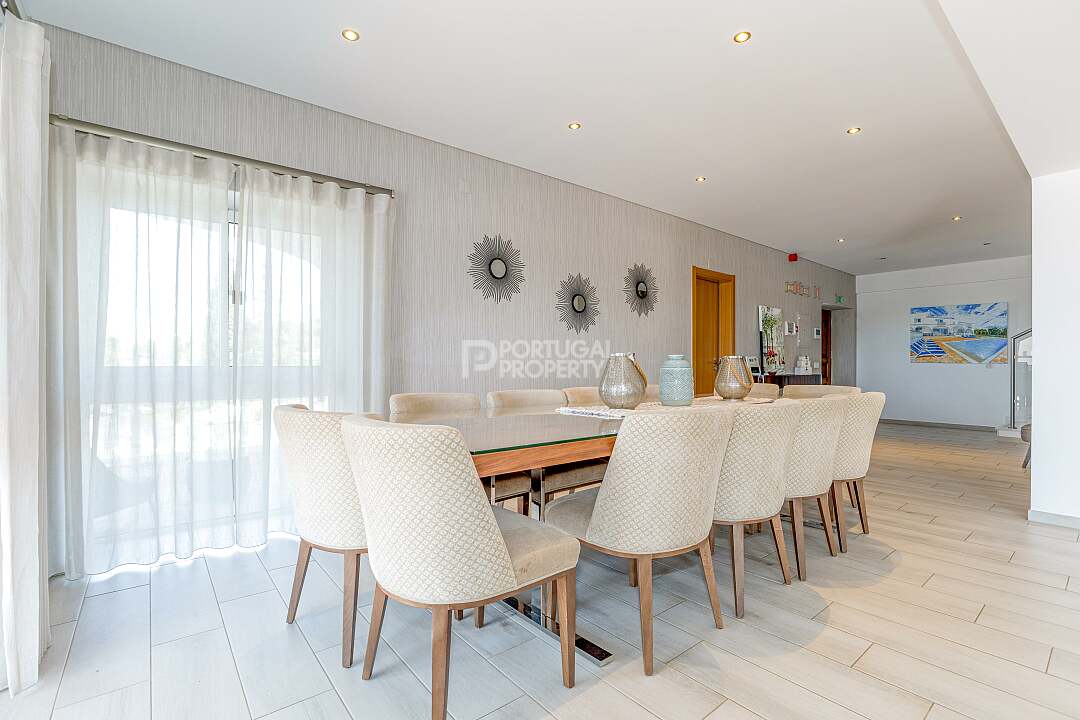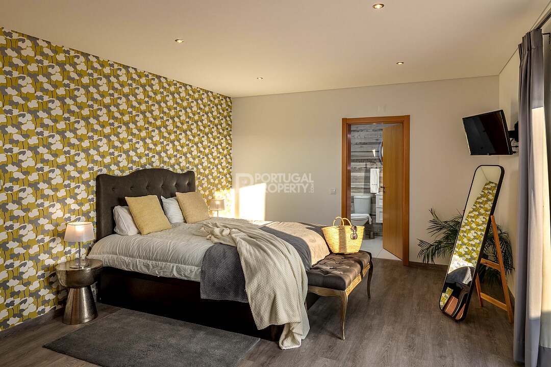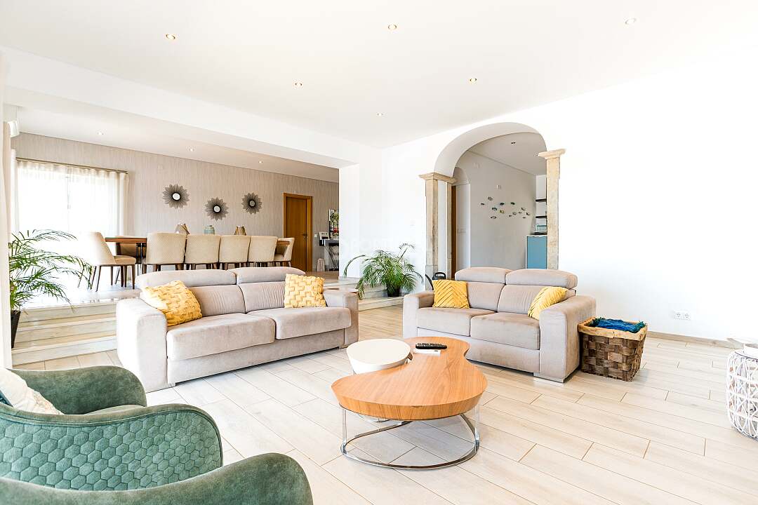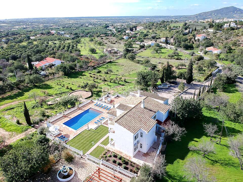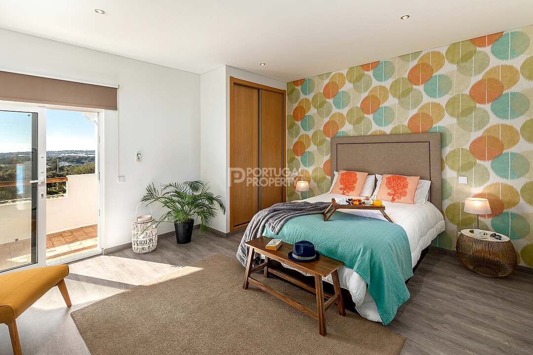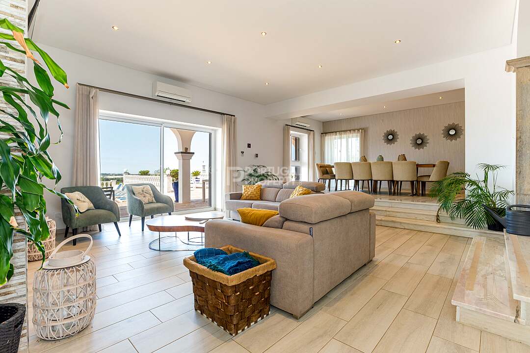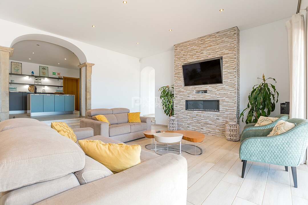 Set in a tranquil hillside just outside the historic village of Estoi, Vila Vale Mouro is a stunning six-bedroom estate offering refined Algarve living with 180° panoramic views across Faro to the Atlantic Ocean. Originally established as a private residence and later completely renovated in 2019, the villa blends authentic Portuguese character with contemporary comfort, making it ideal as both a luxury family home and a high-end rental investment.