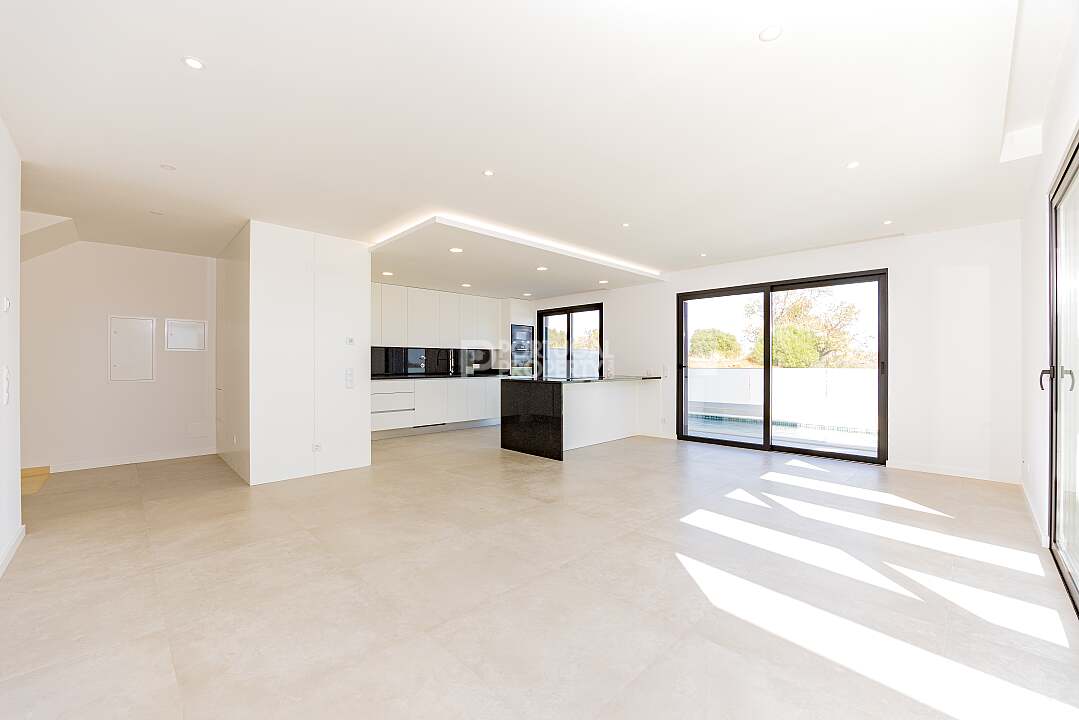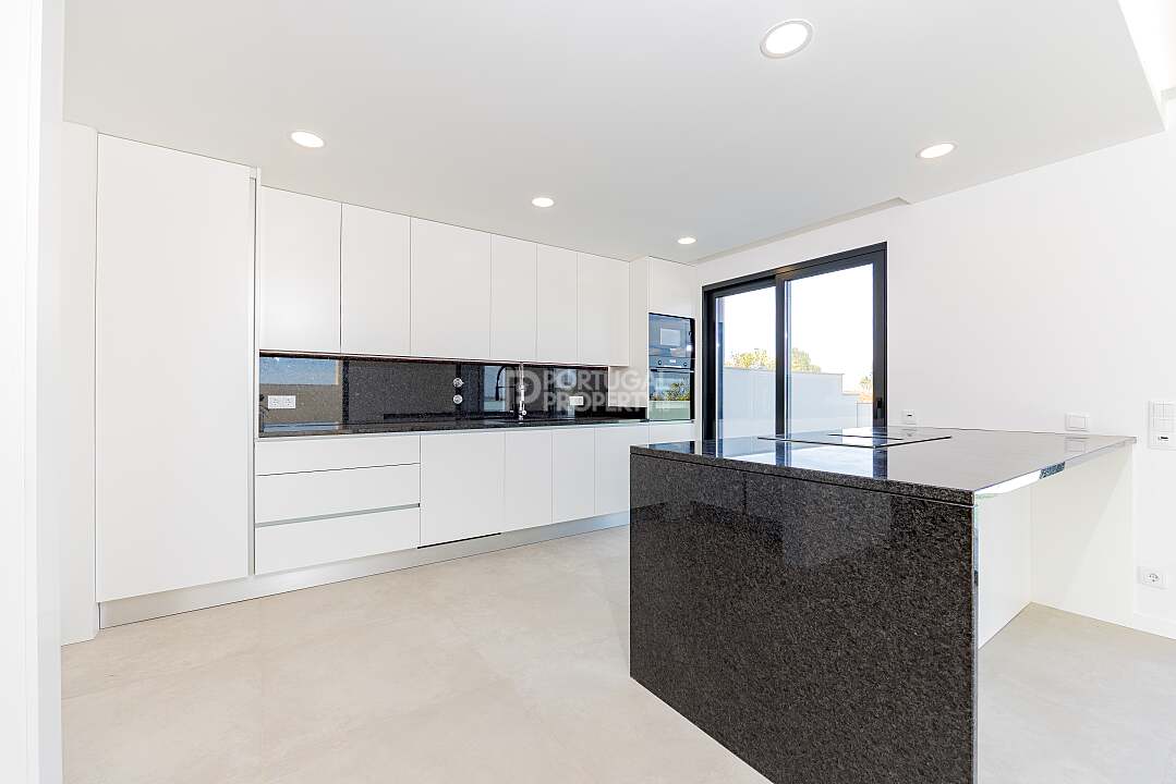 Designed for seamless indoor-outdoor living, the villa’s exterior includes a large garden, an inviting swimming pool, and an expansive terrace, perfect for entertaining guests or enjoying quiet moments of relaxation. The carefully landscaped grounds are perfect for basking in the Algarvean sunshine, creating an idyllic setting for family gatherings or private retreats.