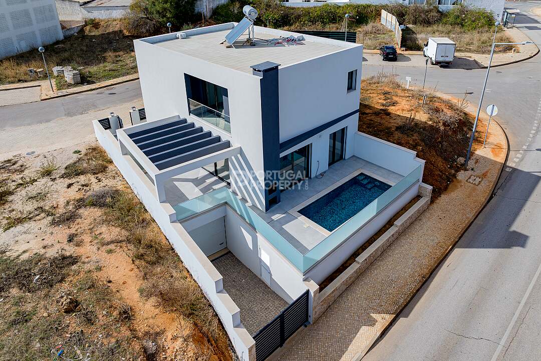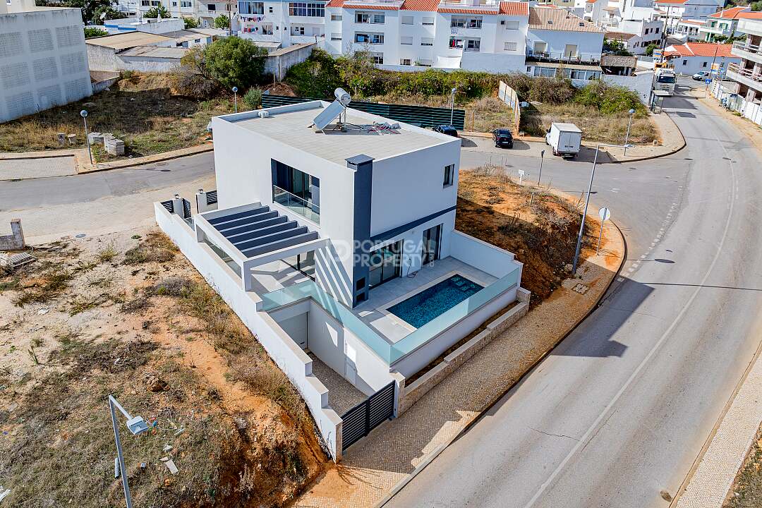 This magnificent contemporary villa, currently under construction, is positioned to offer unrivalled panoramic views of both the Algarvean countryside and the sparkling Atlantic Ocean. Located in the serene area of Mexilhoeira Grande, between the charming towns of Alvor and Lagos, this modern residence blends cutting-edge design with the highest standards of luxury and comfort.