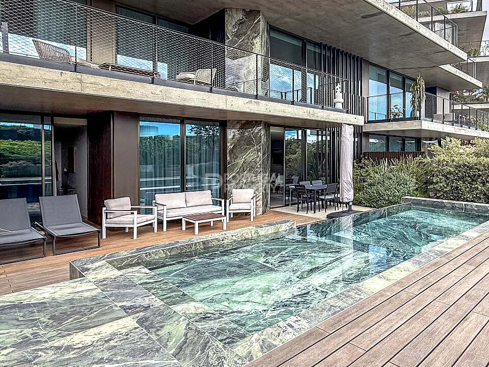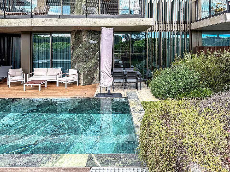 Outside, the property offers a spacious terrace with a private swimming pool, providing a true private retreat for leisure and relaxation. Elegant steps lead directly to the communal areas and the shared swimming pool, allowing residents to enjoy the resort-style amenities while maintaining a high level of privacy.