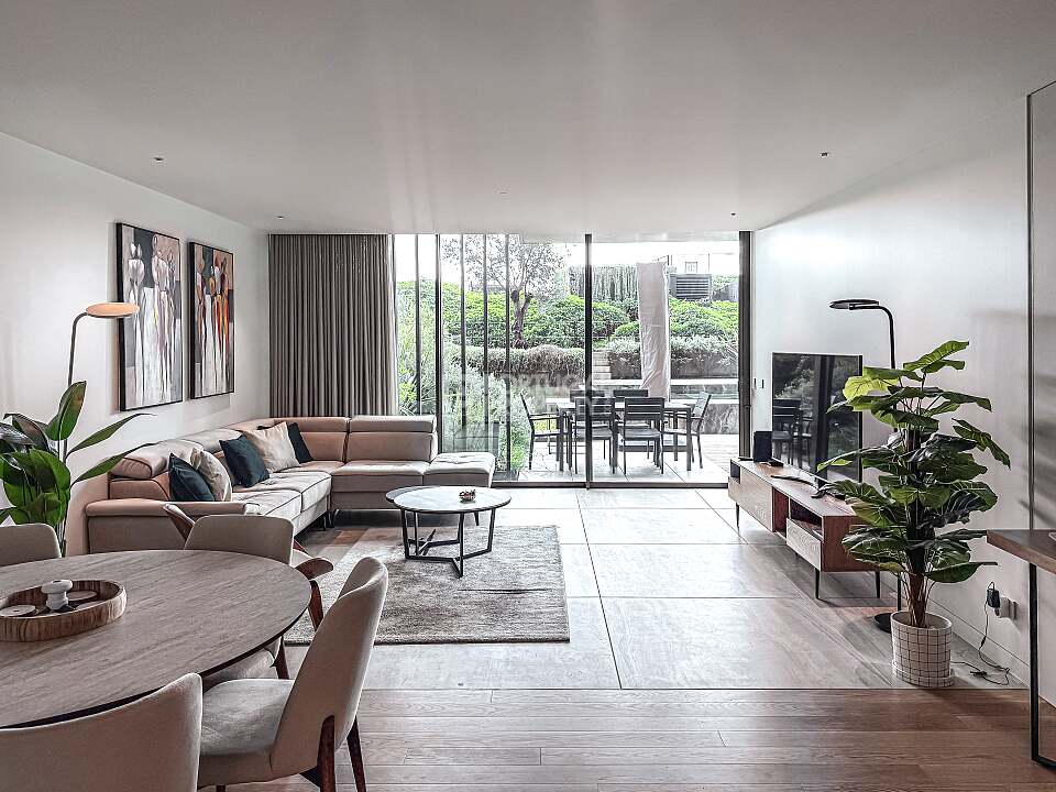 The apartment stands out for its excellent layout and seamless indoor–outdoor living. It features two en-suite bedrooms, ensuring comfort and privacy, as well as a guest bathroom. The open-plan kitchen flows naturally into the living area, creating a contemporary, functional and welcoming space, ideal for both everyday living and entertaining.
