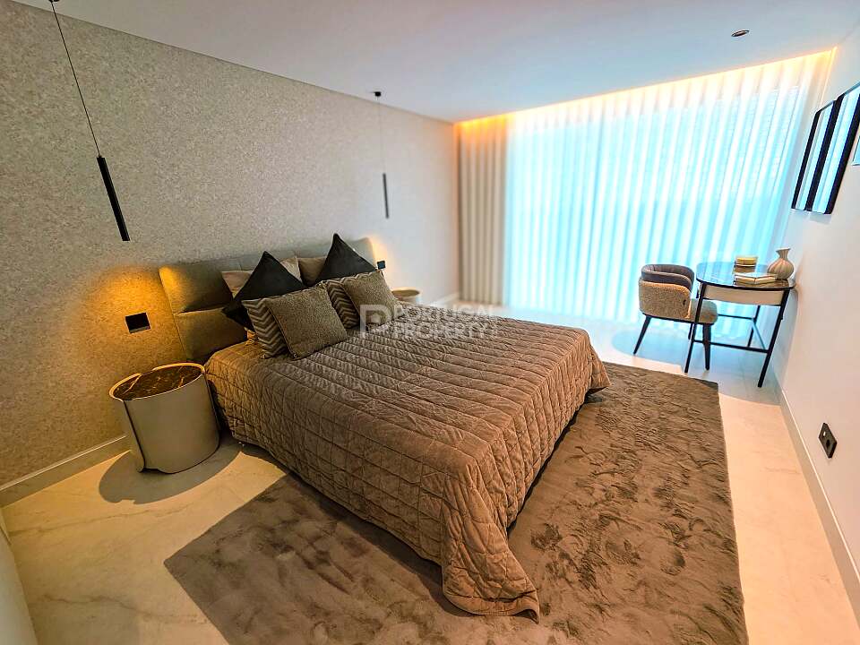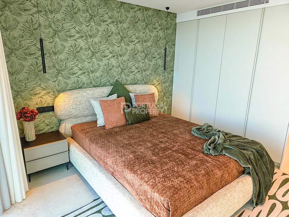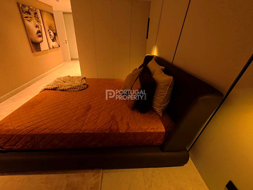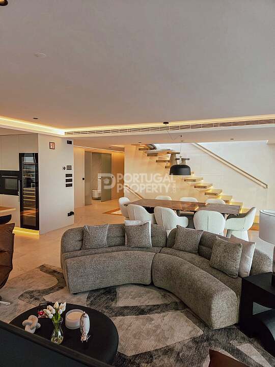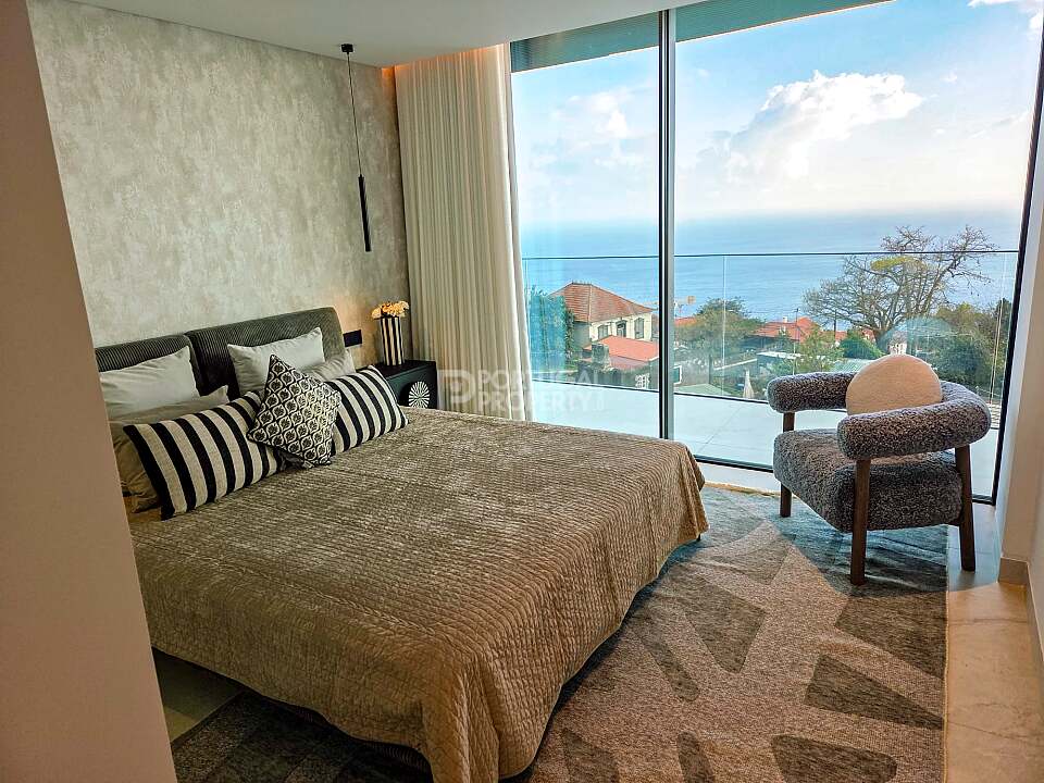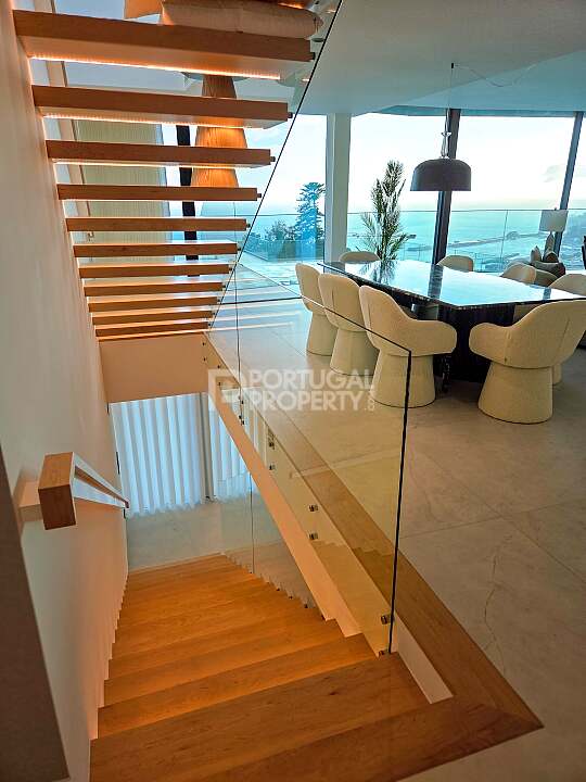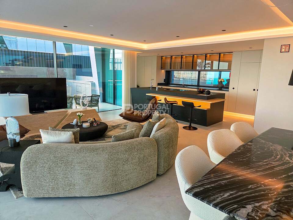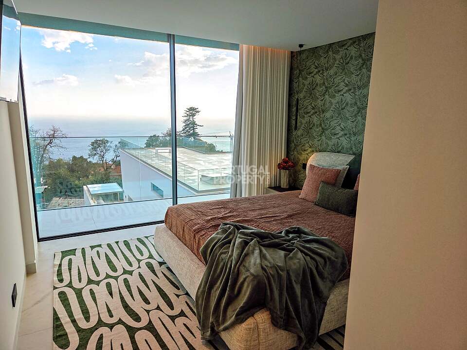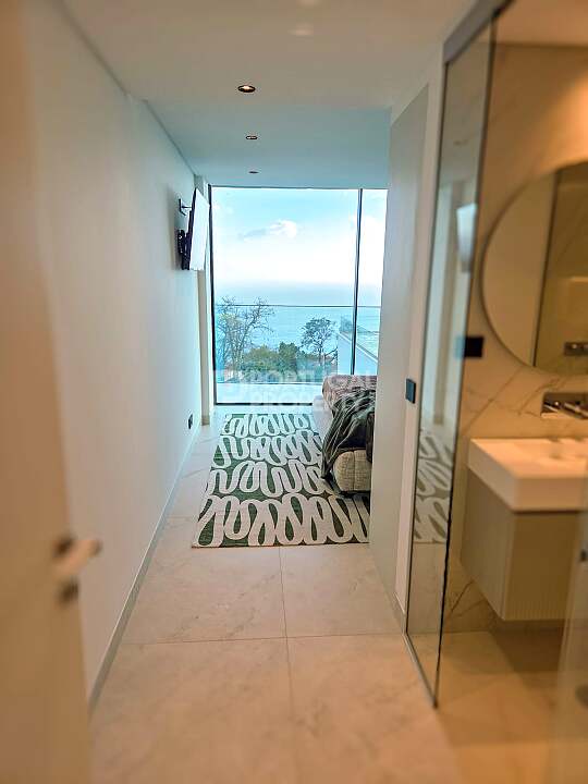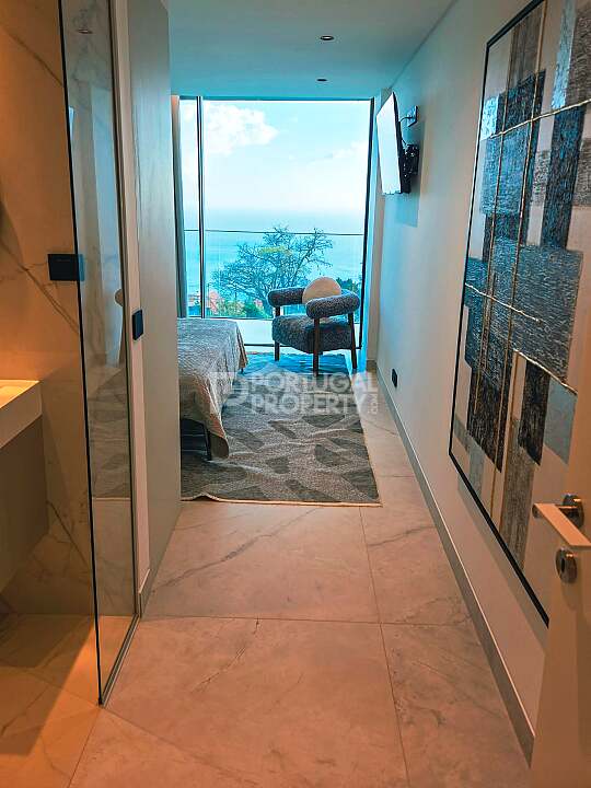 On one floor, there is a living room, dining room, and kitchen space, all open-plan, with stunning views of the sea and Funchal harbour. Three suites and plenty of built-in wardrobes are discreetly integrated into the walls.