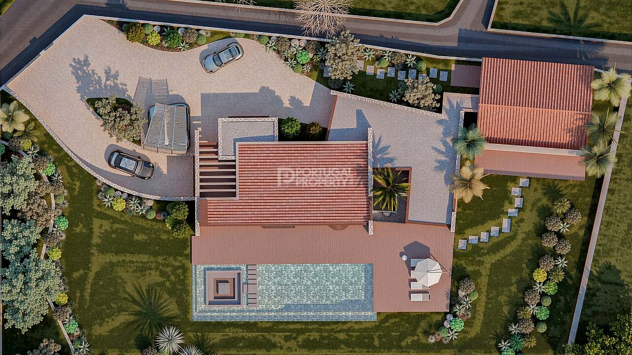 The villa features 4 spacious bedrooms, expansive open-plan living areas, and over 80 m² of covered terraces that flow effortlessly towards a large swimming pool and landscaped gardens, perfectly positioned to enjoy the views and Algarve lifestyle.
