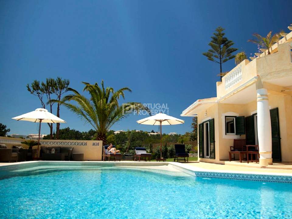 This magnificent Villa, built with high quality standards, in immaculate condition, is located on the prestigious Santo António Villas, Golf and SPA Resort, former Parque da Floresta, in a quiet cul-de-sac. It is a luxurious frontline Villa, set in a beautiful private and well kept landscapped mature garden, that leads you smoothly down directly onto the 12th tee of the golf course.