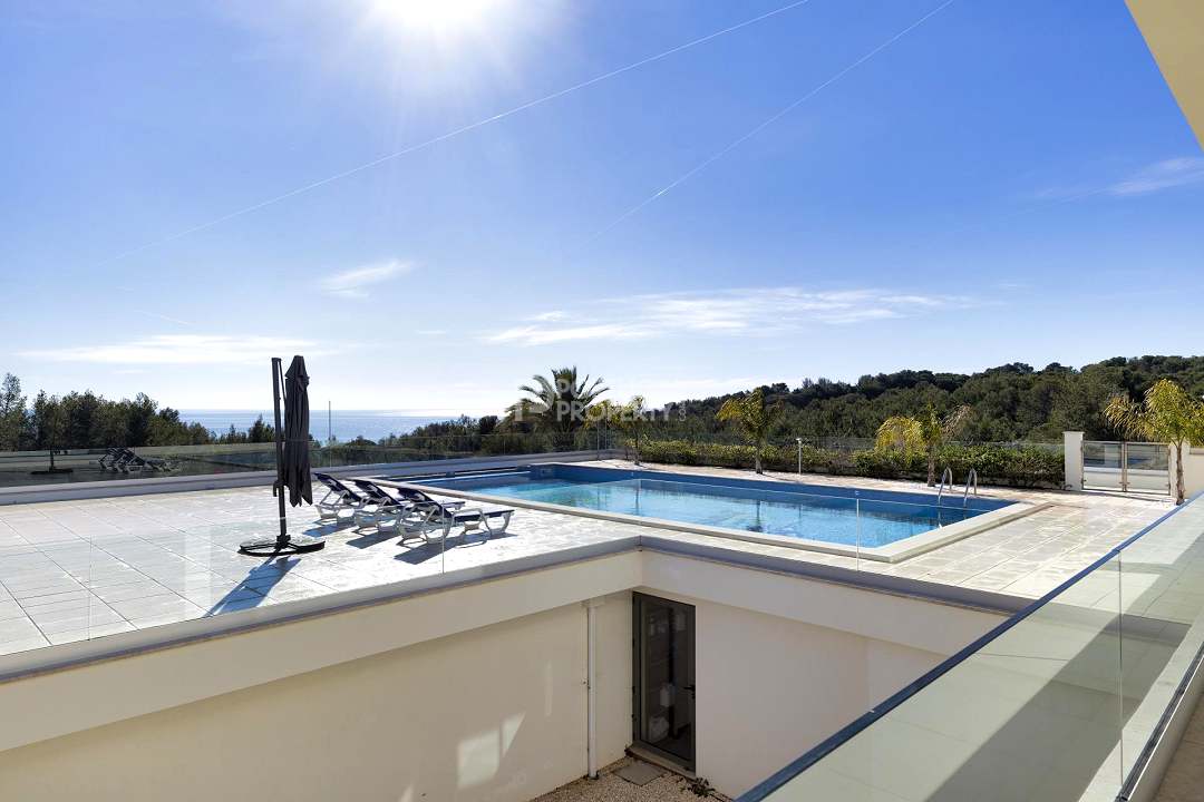 Luxurious new villa, inserted into a beautiful green plot of more than 10,000 m2 with lush gardens, fruit trees and panoramic sea views.
