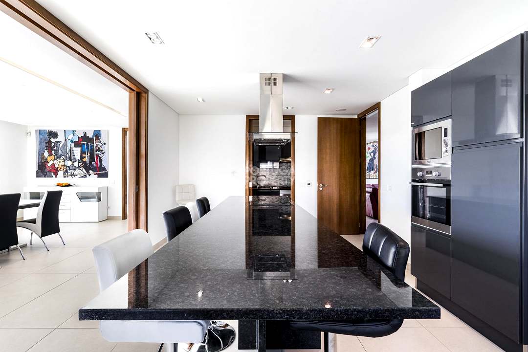The ground floor consists of an entrance hall, a large living room with sea and swimming pool views, a large dining room, a huge fully equipped American style kitchen, a utility room, pantry, and a full independent bathroom. These rooms link to huge terraces with panoramic views of the sea and the pool.