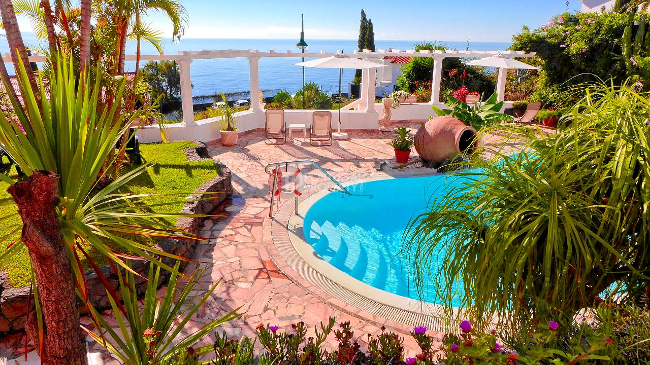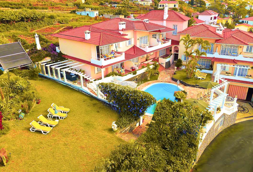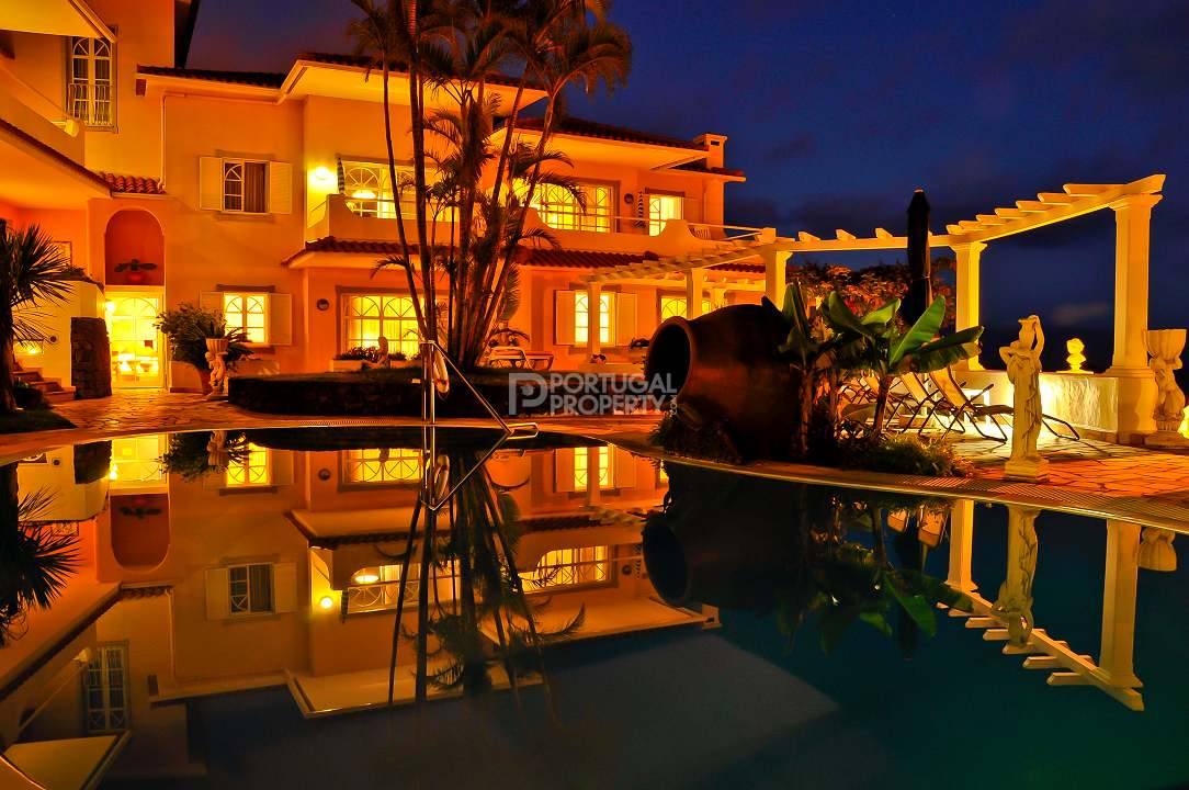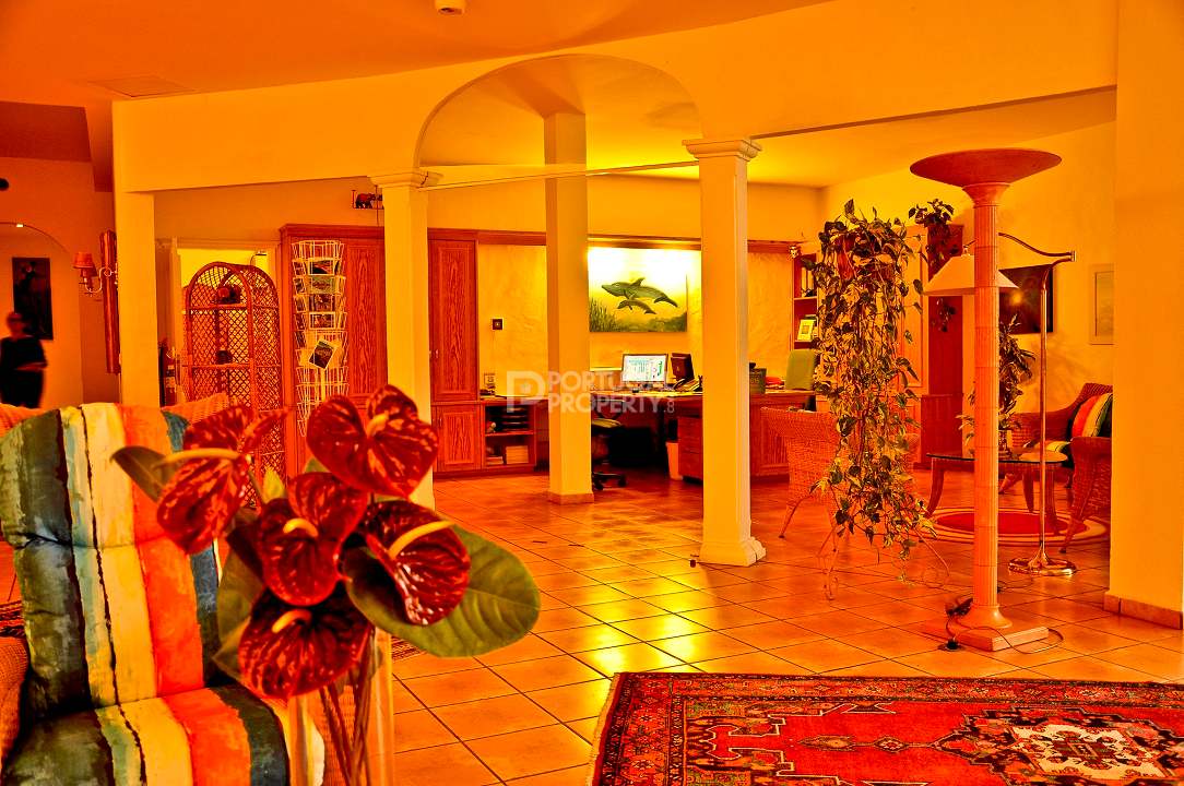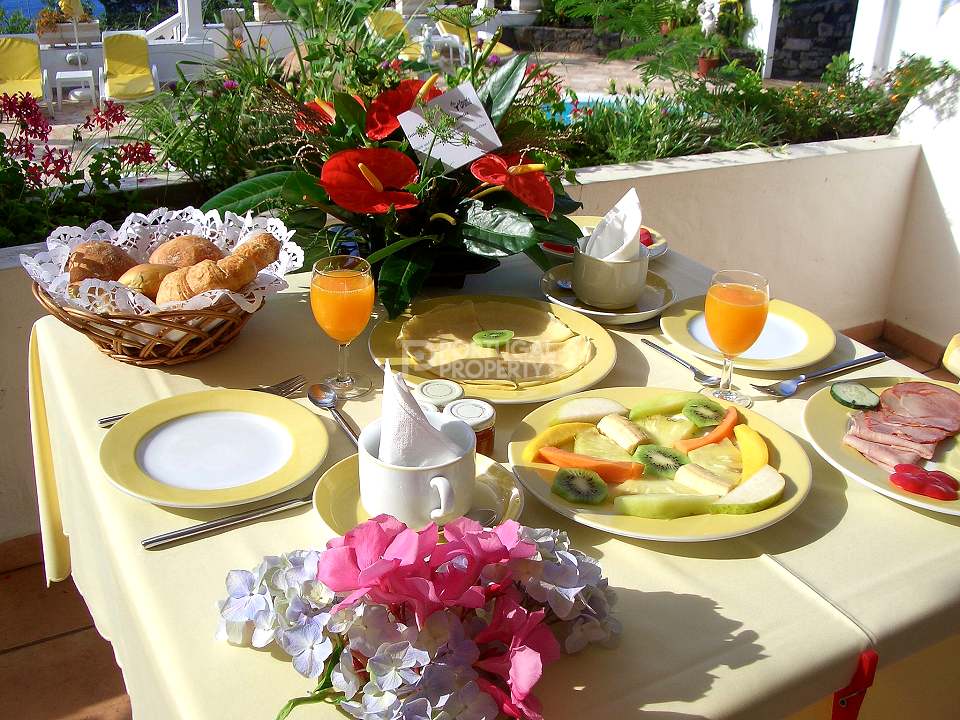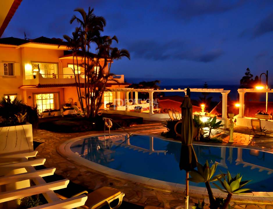 The Boutique Hotel is situated on a south- facing-slope of the upmarket cottage area of Caniço de Baixo with a magnificent view over the Atlantic Ocean, only 12 km east of the capital of Madeira – Funchal and also only a 10 minutes drive on the motorway from the airport. The hotel was built in 1995 with top quality construction material and interior design. Modern IT-outfit and ample public areas (fitness, pool, bar, library, botanical garden, garage, etc) the building uses solar energy for hot water production, pool- water heating and electric energy. Permanent maintenance results in top condition of the building and outfit.