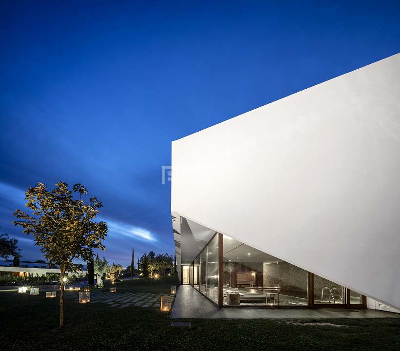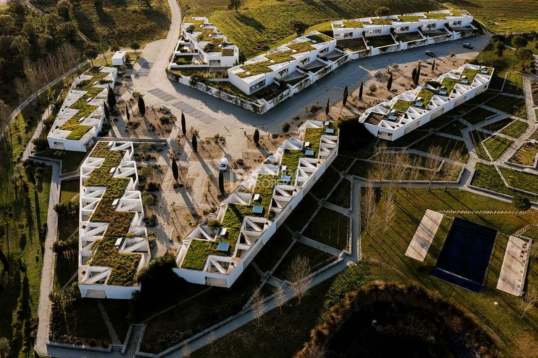 The villas are designed by Peter Märkli, and located on the highest hill of the resort, with unique views over a valley with vineyards, the serene plains of oaks and the castle of Montemor-o-Novo.