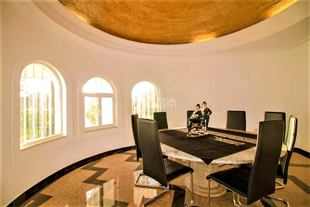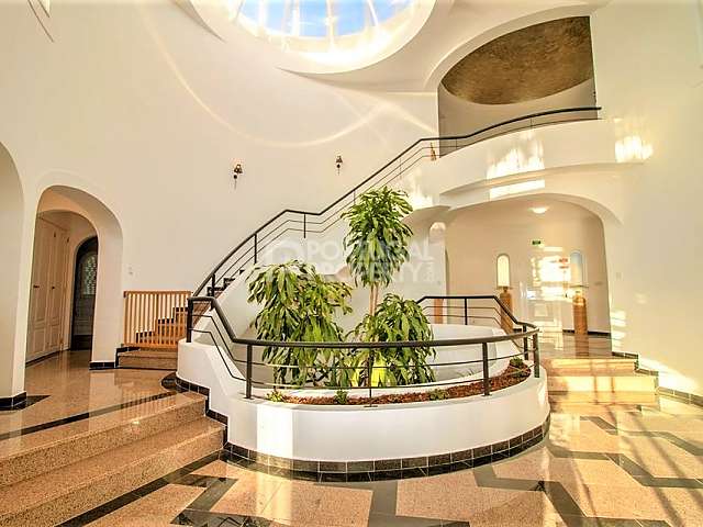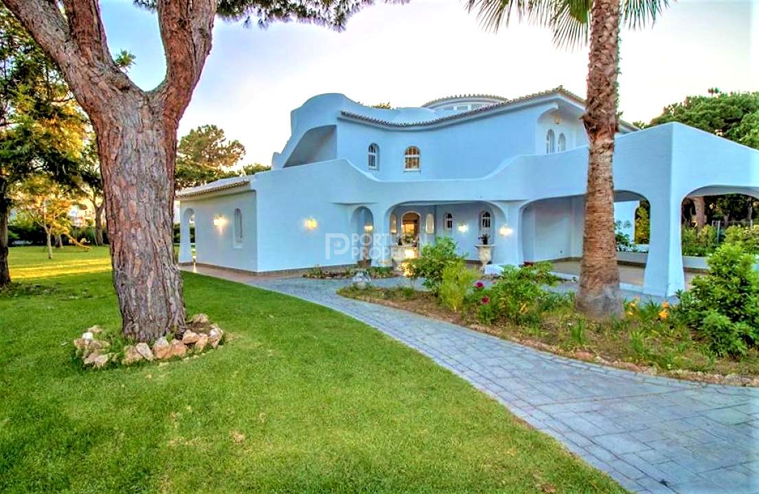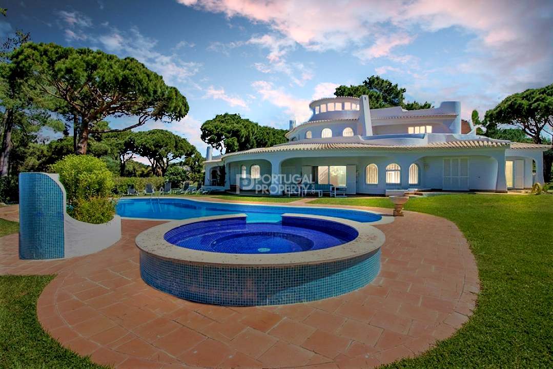 This magnificent imposing villa sits on a large front-line plot with stunning views over the prestigious Pinhal Golf Course in Vilamoura,