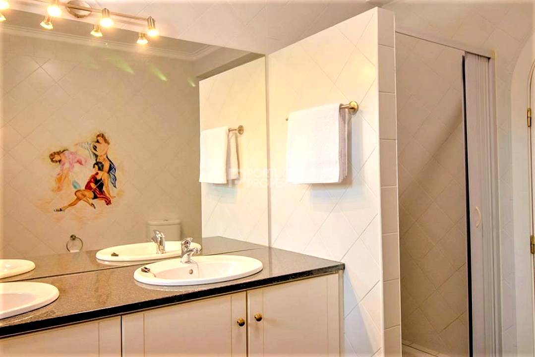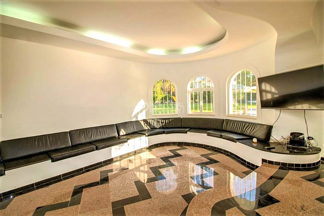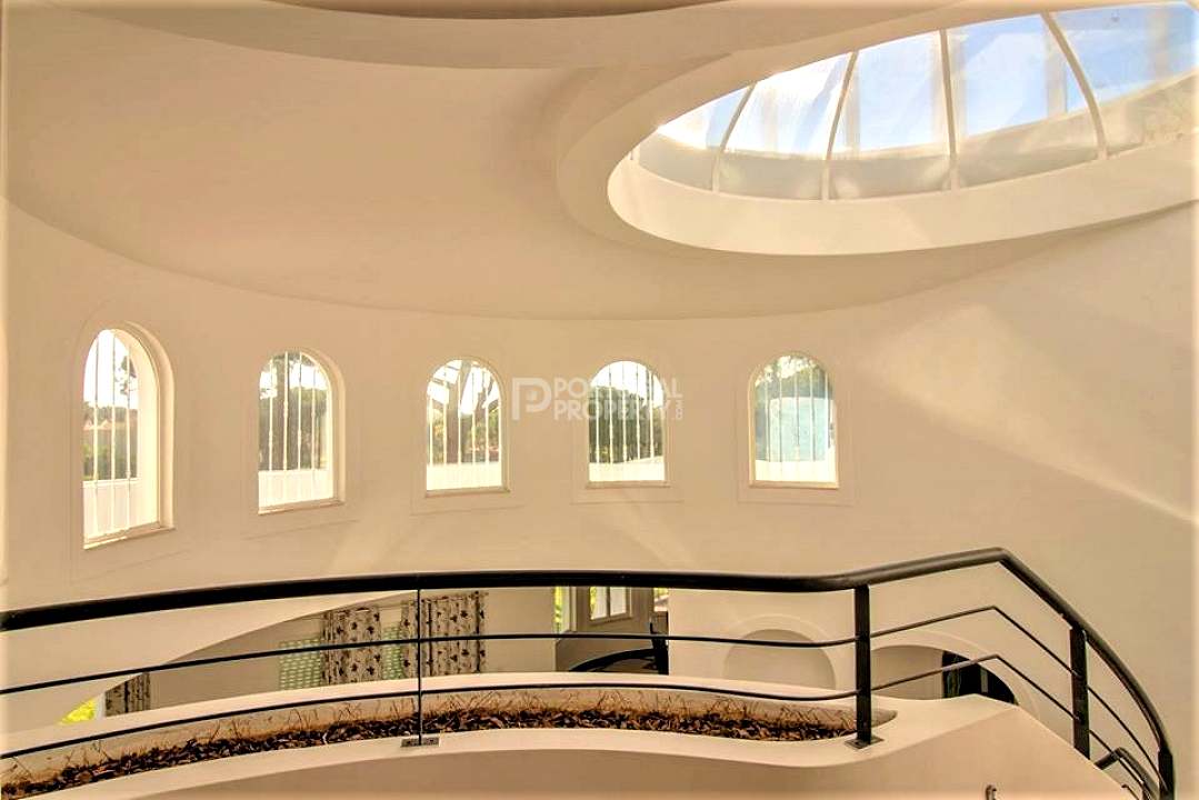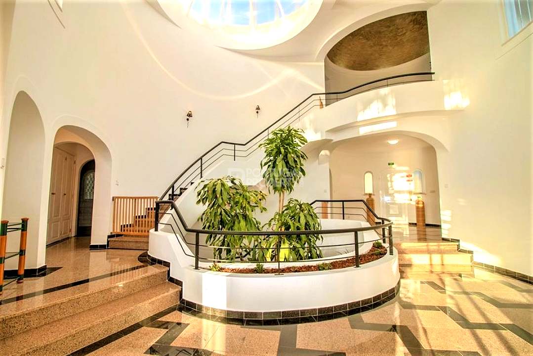 The large, bright villa has a beautiful typical round atrium/hallway from which you can access the living room and the 5 bedrooms and at the garage level, there is also a self-contained 1 bedroom apartment.