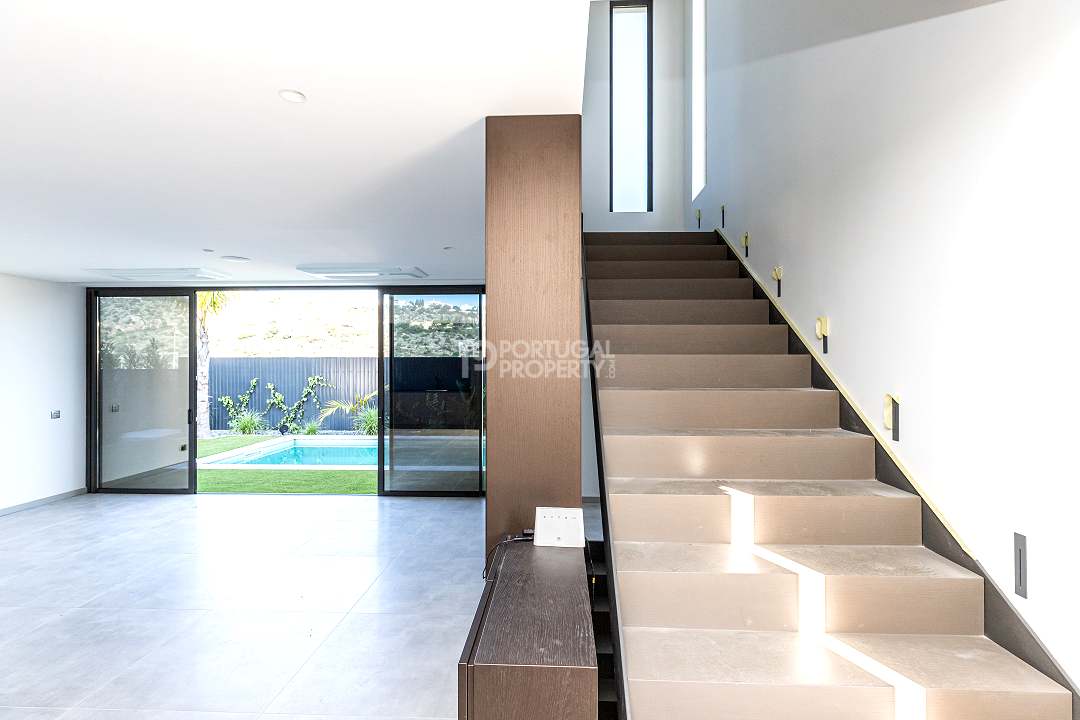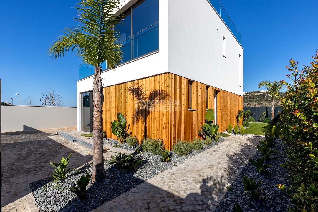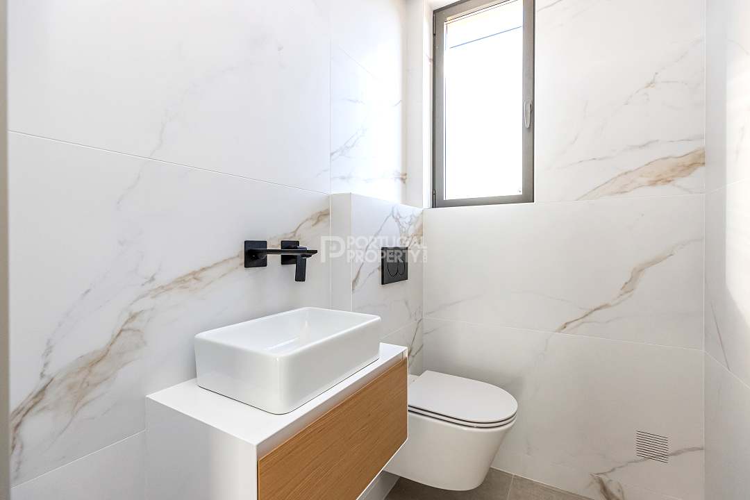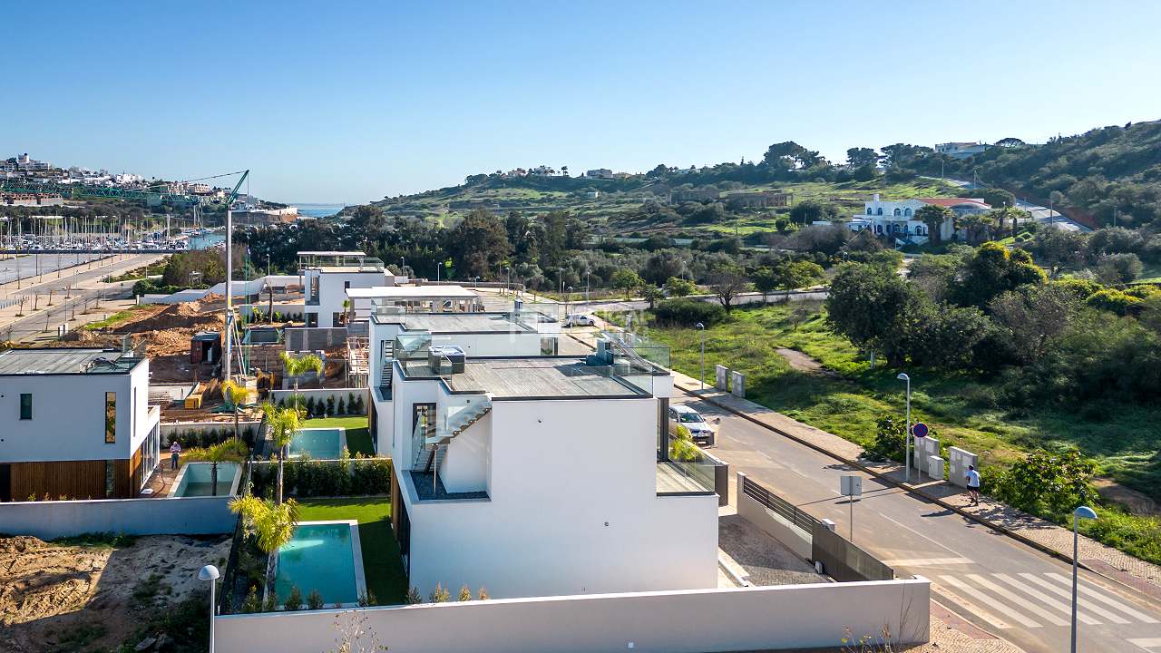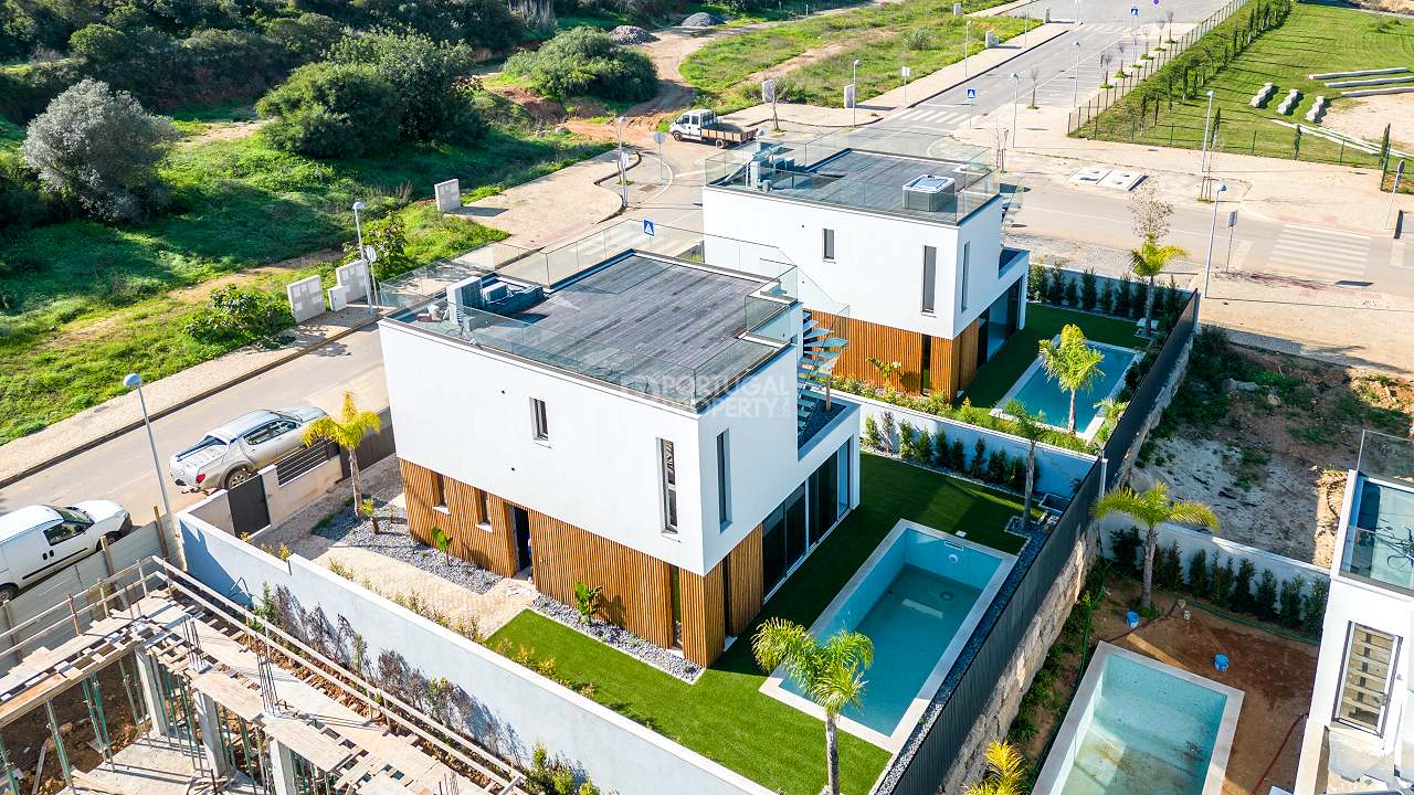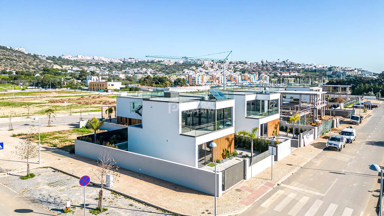 This stunning, brand-new, modern detached villa is conveniently inserted in the Albufeira marina, in a small, new urbanisation within walking distance of the beach and amenities. It comprises a basement, ground floor, 1st floor and rooftop terrace, totalling 150 m2 of habitable space (ground and first floors) plus a 68 m2 basement. This villa impresses with exceptional high-quality finishes throughout. It is set on an easy-to-maintain, landscaped plot with a private swimming pool. There is the possibility to park cars inside the property.
