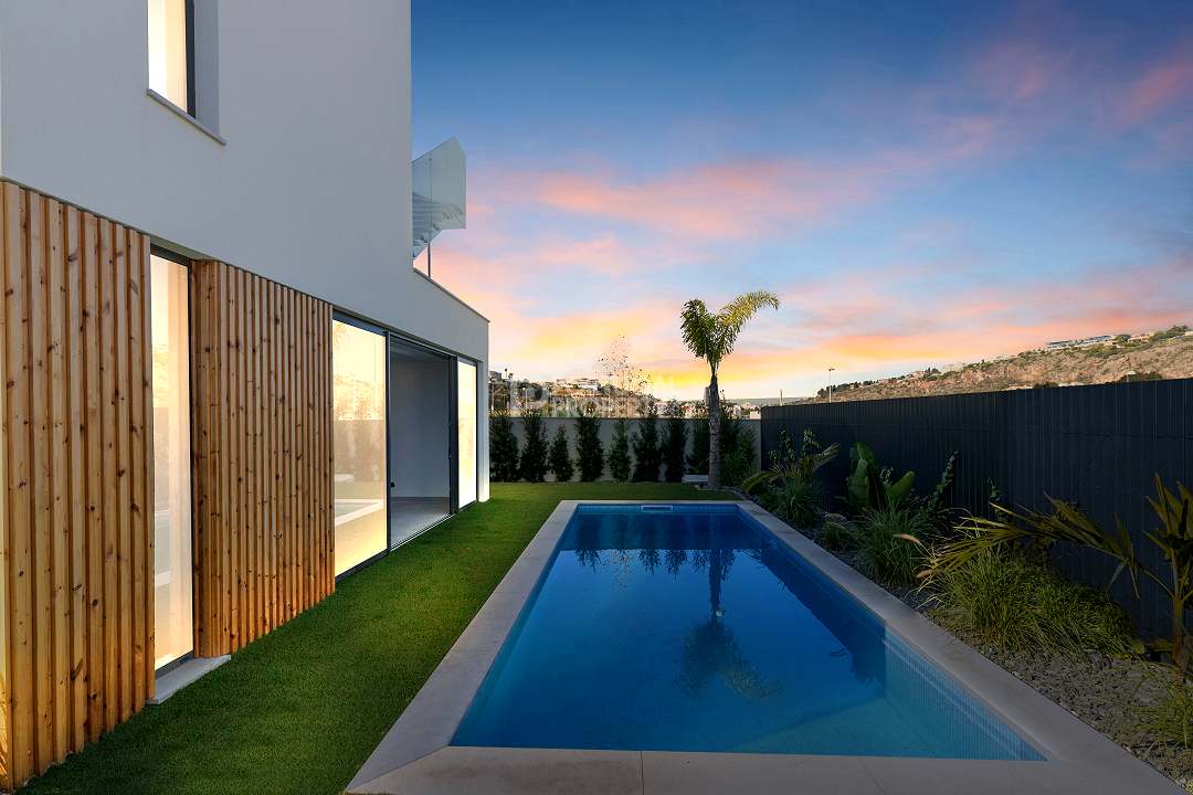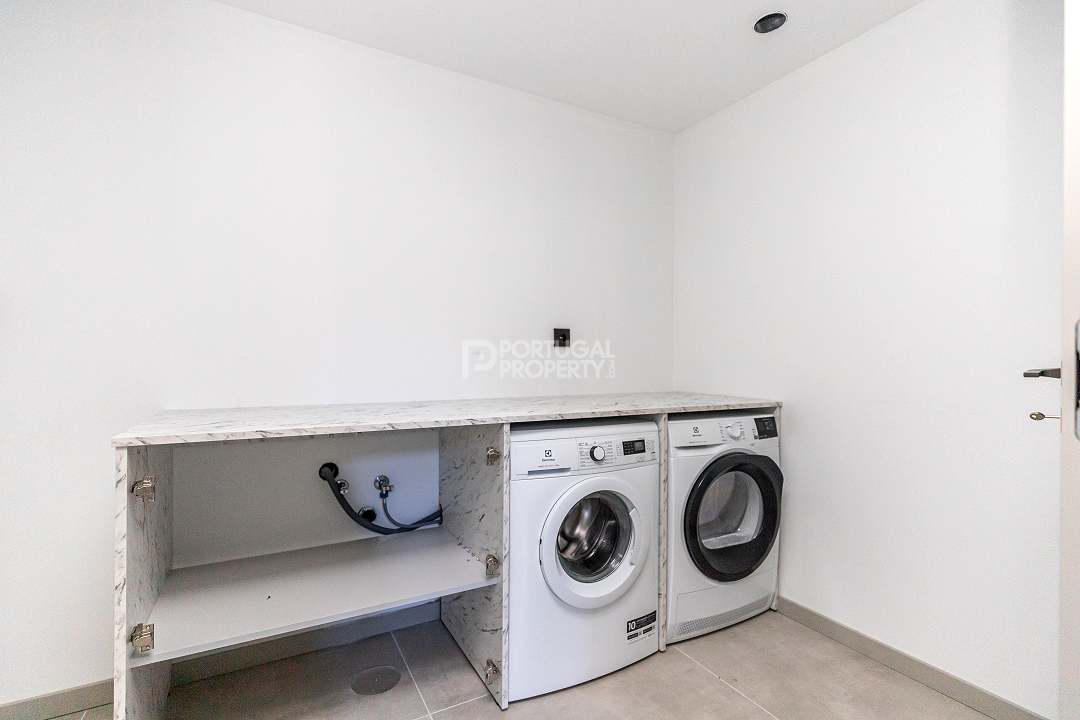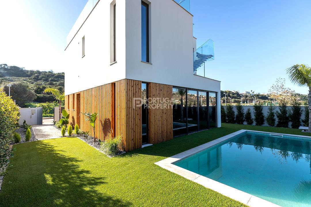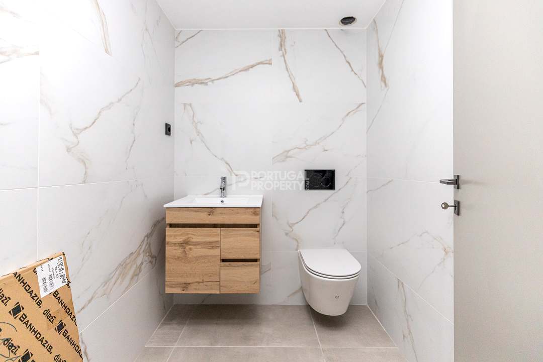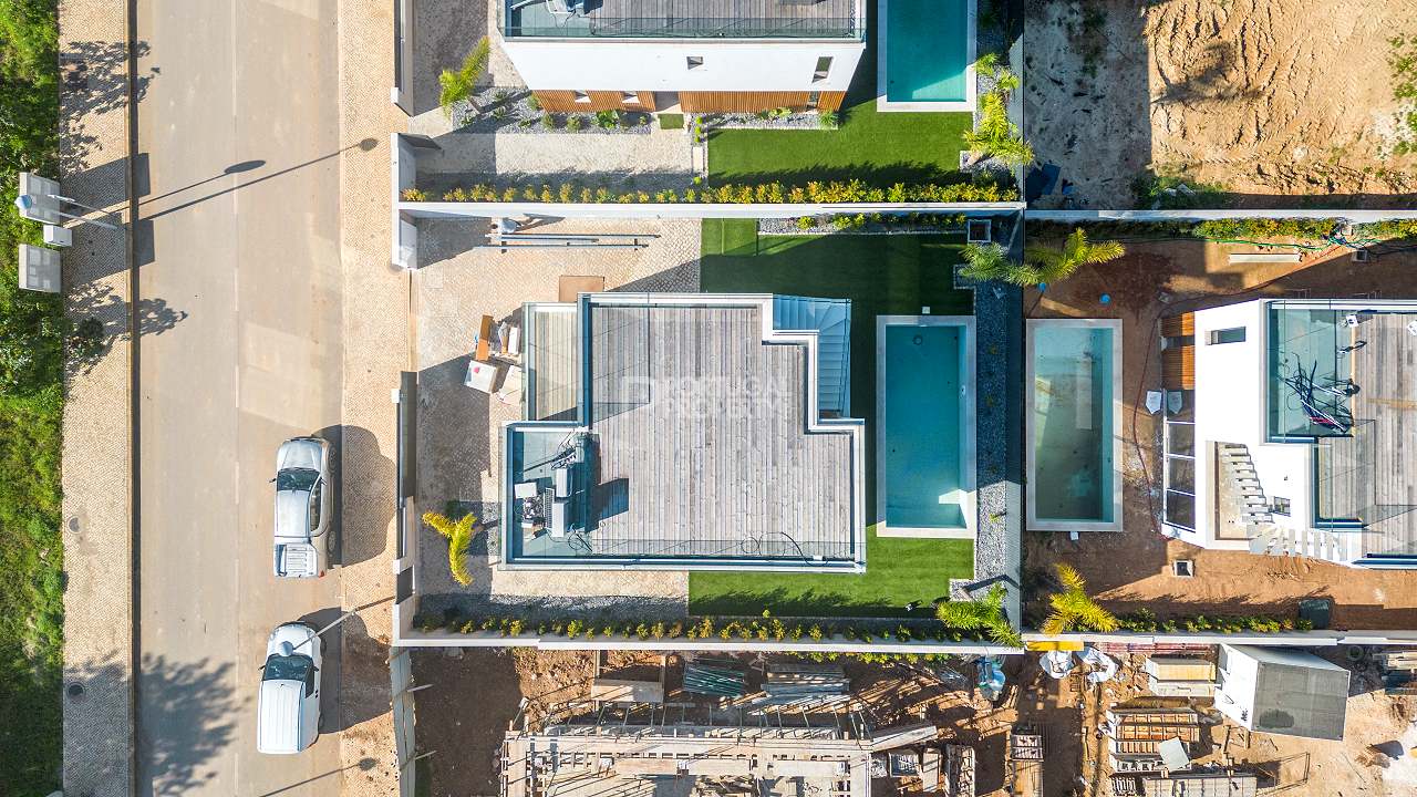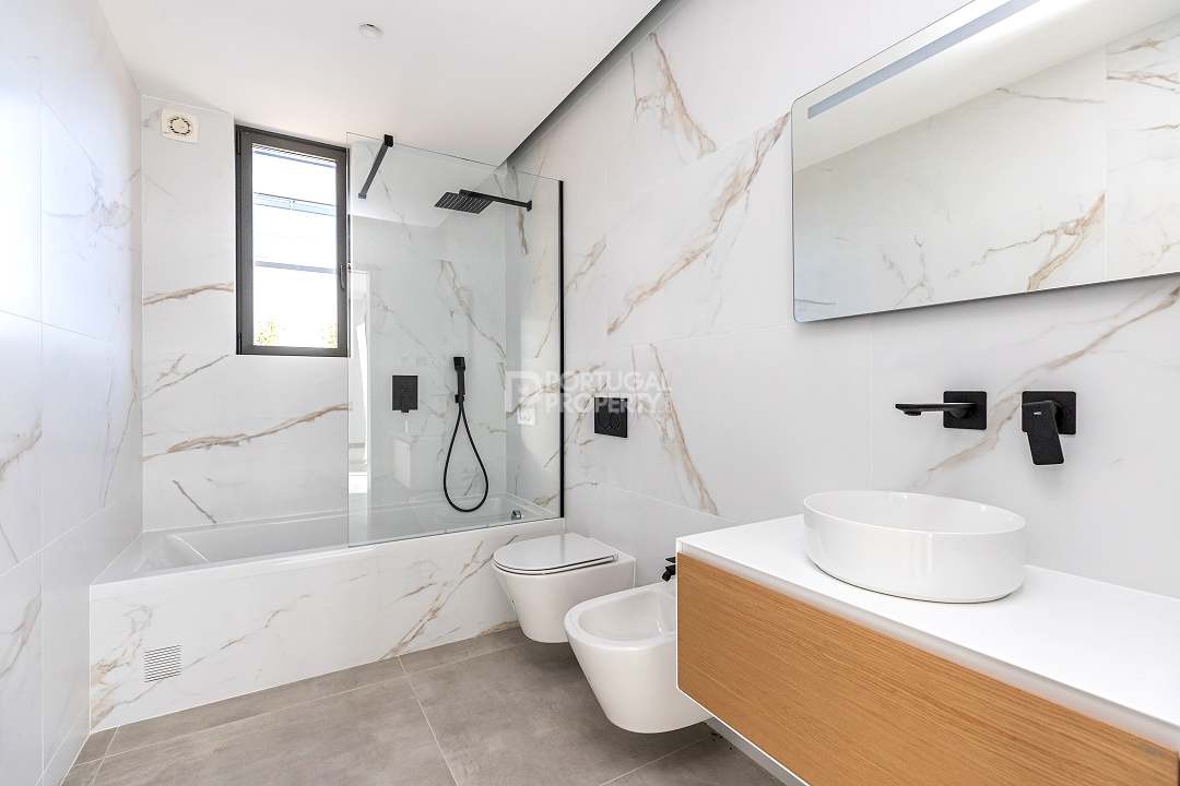 This stunning, brand-new, modern detached villa is conveniently inserted in the Albufeira marina, in a small, new urbanisation within walking distance of the beach and amenities. It comprises a basement, ground floor, 1st floor and rooftop terrace, totalling 150 m2 of habitable space (ground and first floors) plus a 68 m2 basement. This villa impresses with exceptional high-quality finishes throughout. It is set on an easy-to-maintain, landscaped plot with a private swimming pool. There is the possibility to park cars inside the property.