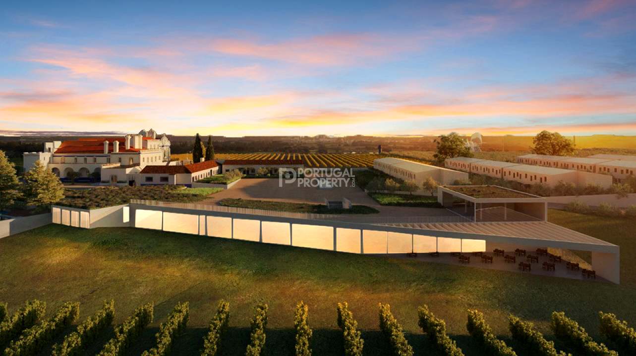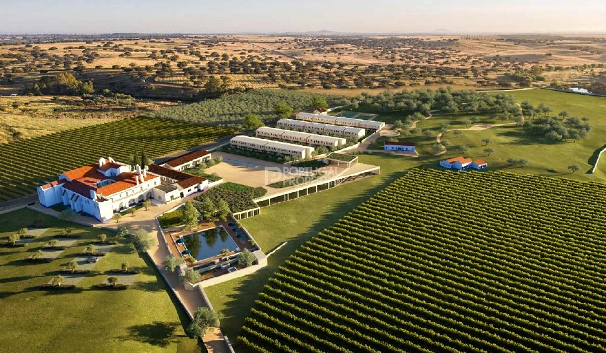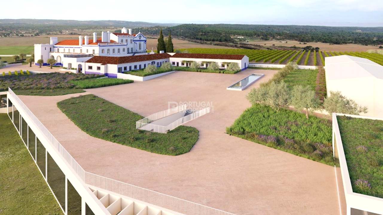 The project is situated on 14 hectares of land - 7 hectares of that being for construction and the other 7 for the plantation (vineyards, cork trees and olive trees).