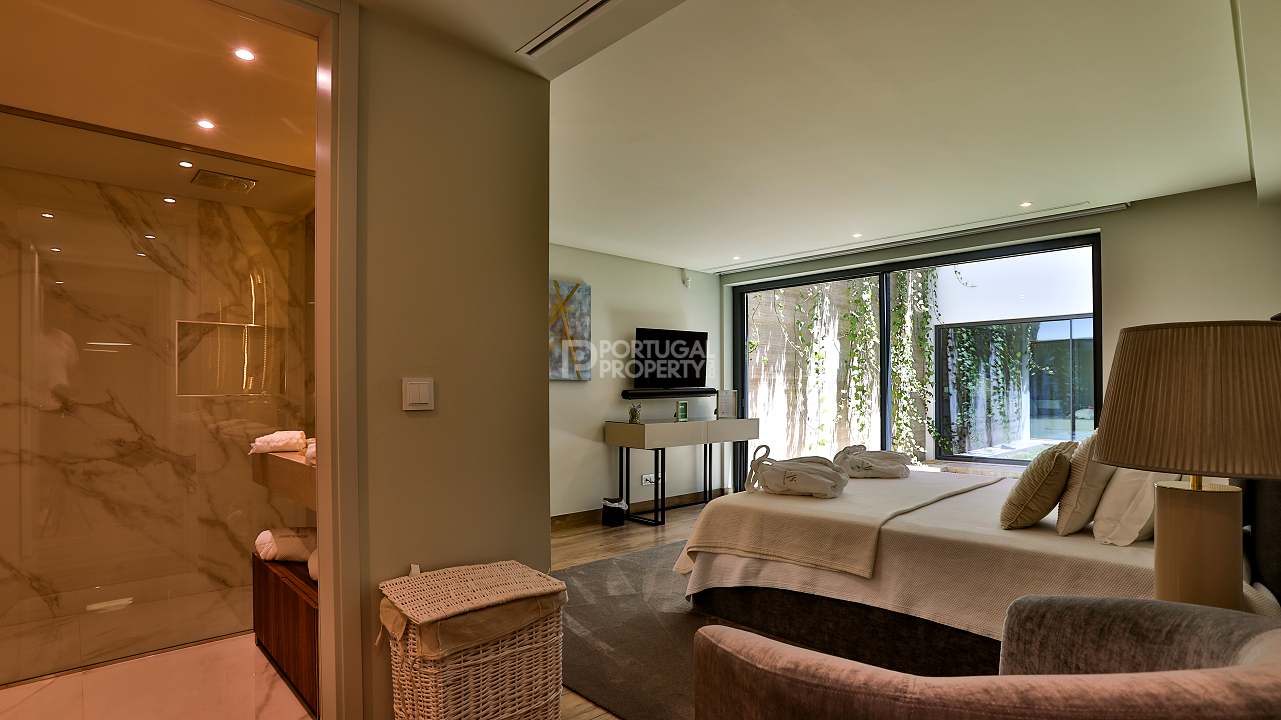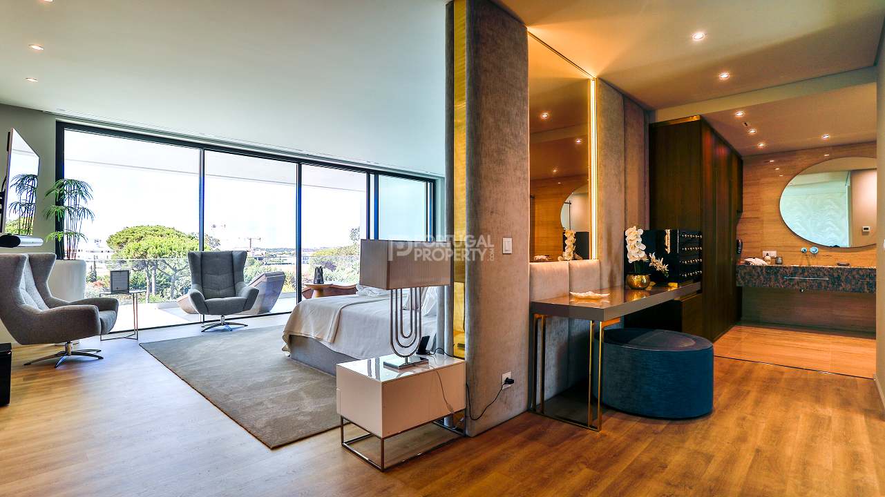 Living is elevated with state-of-the-art technology including air conditioning, underfloor heating, a central vacuum, a Sonos sound system, wireless chargers, electric blinds, and high-speed Wi-Fi. Situated in one of Portugal’s premier locales, the villa is moments from renowned golf courses, gourmet dining, the vibrant Vilamoura Marina, and the stunning Falésia Beach.