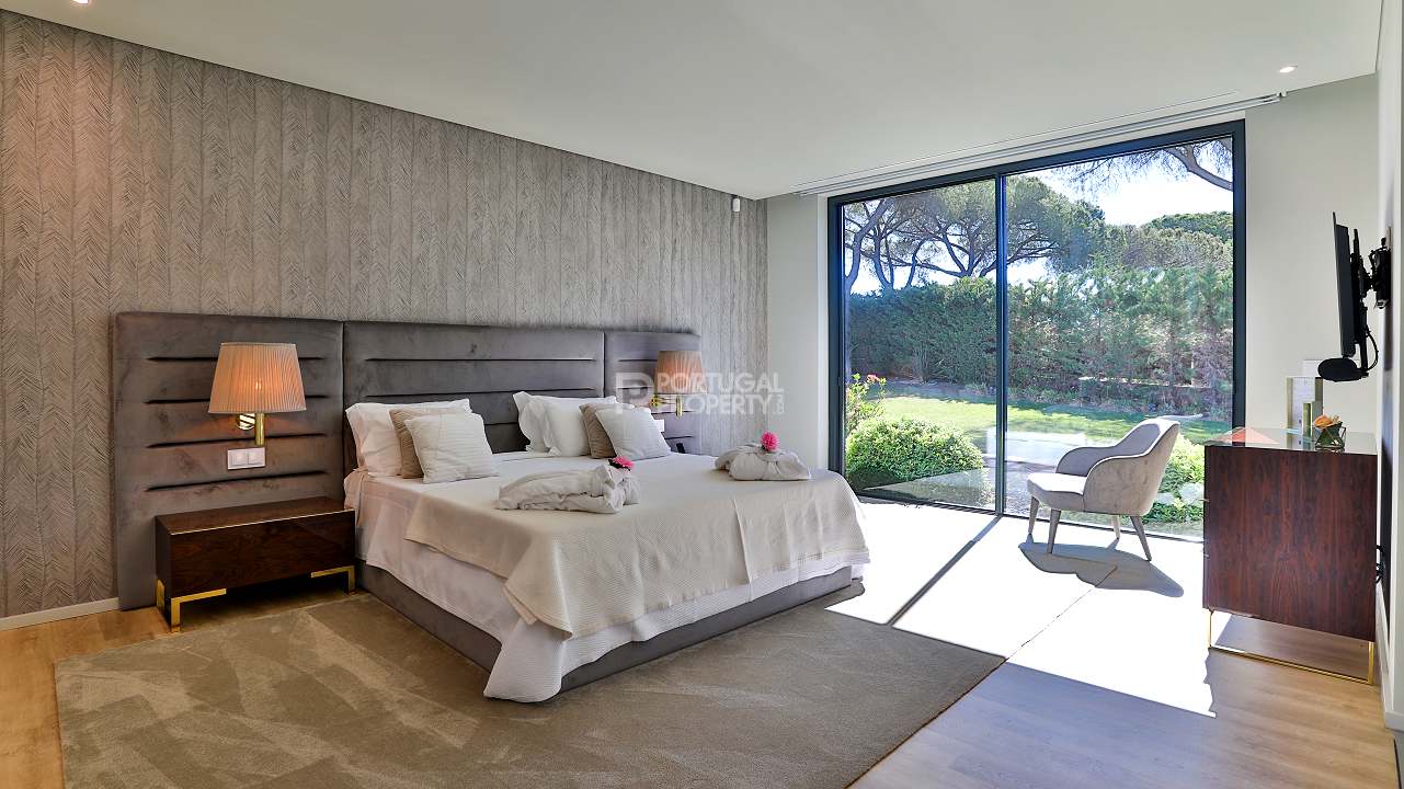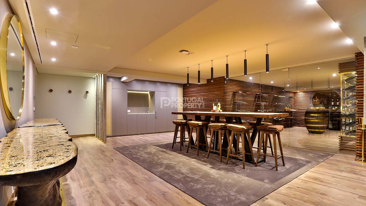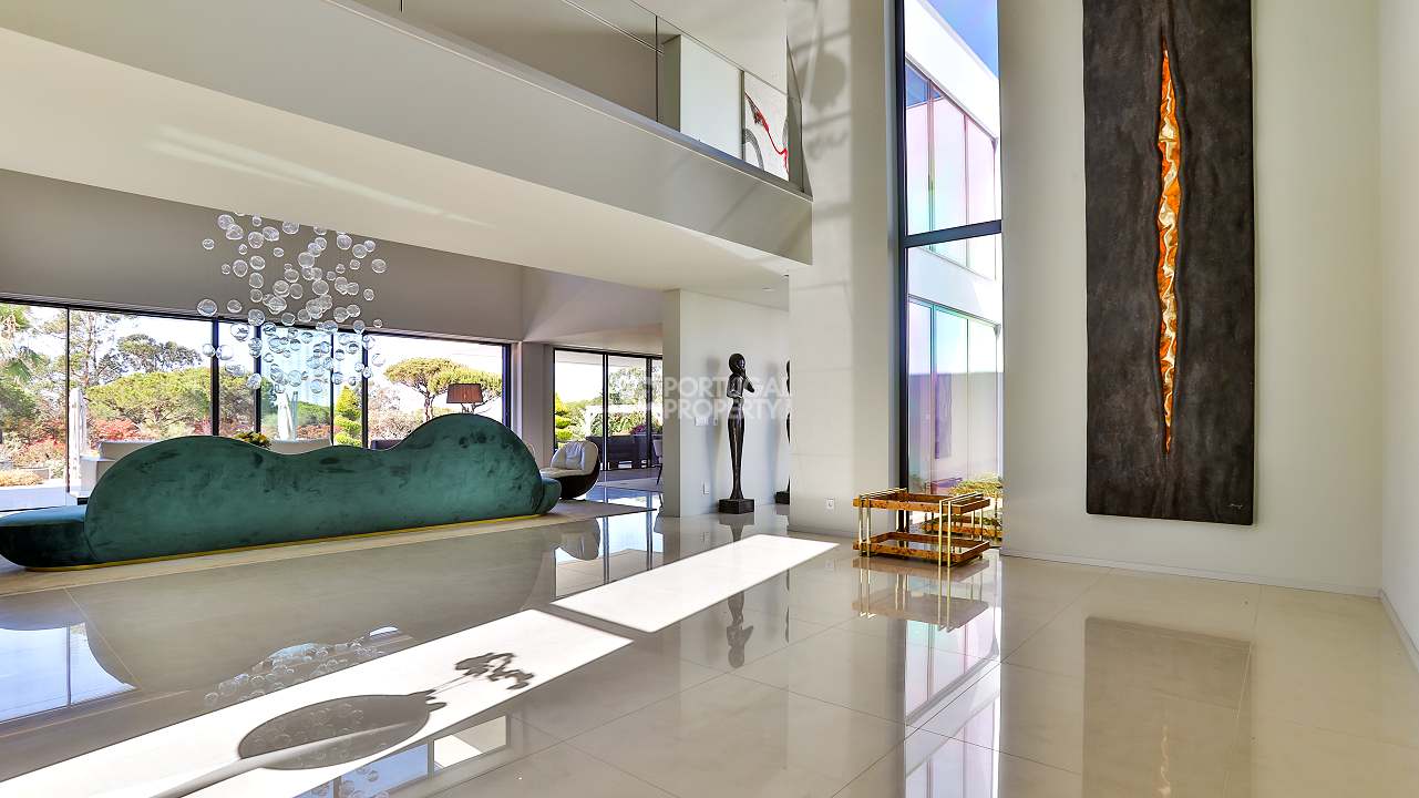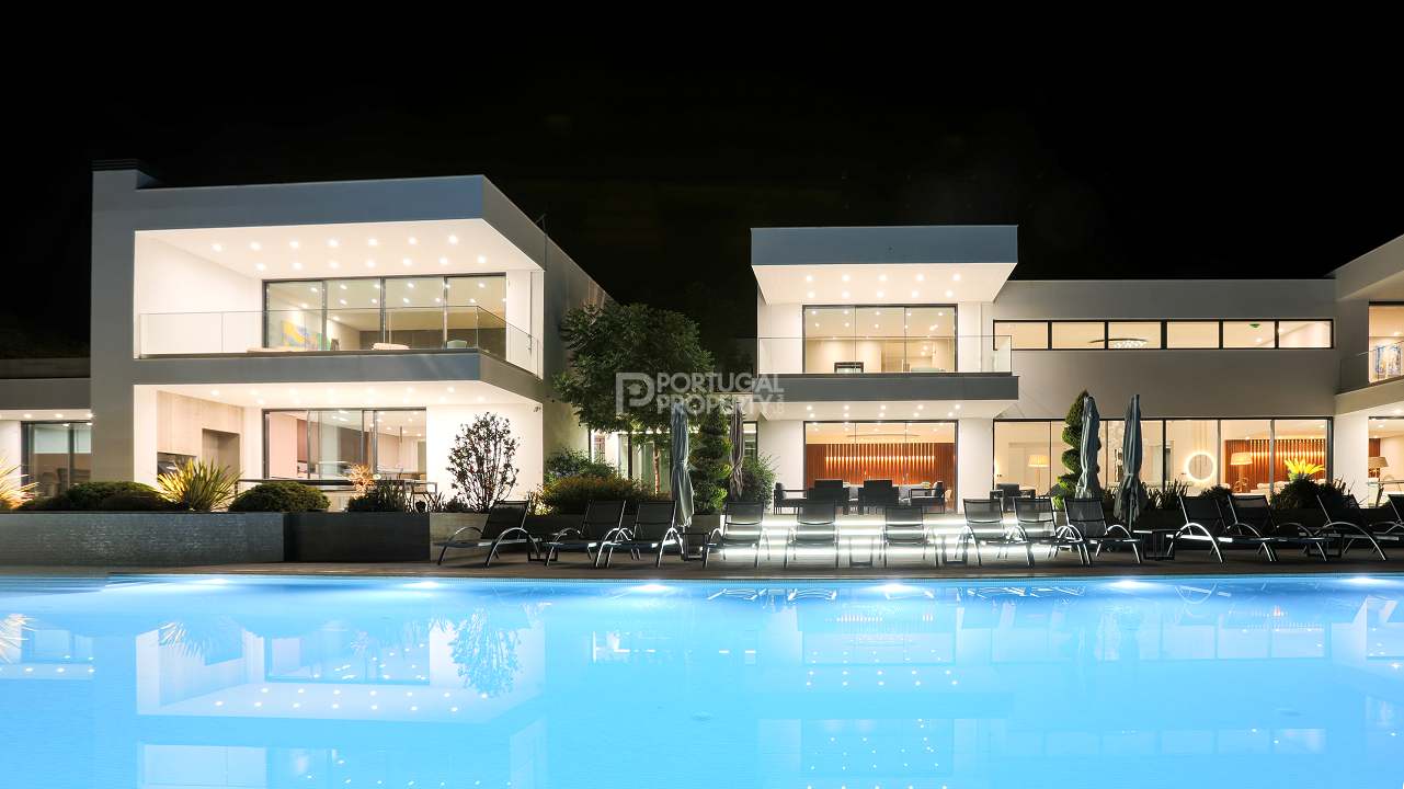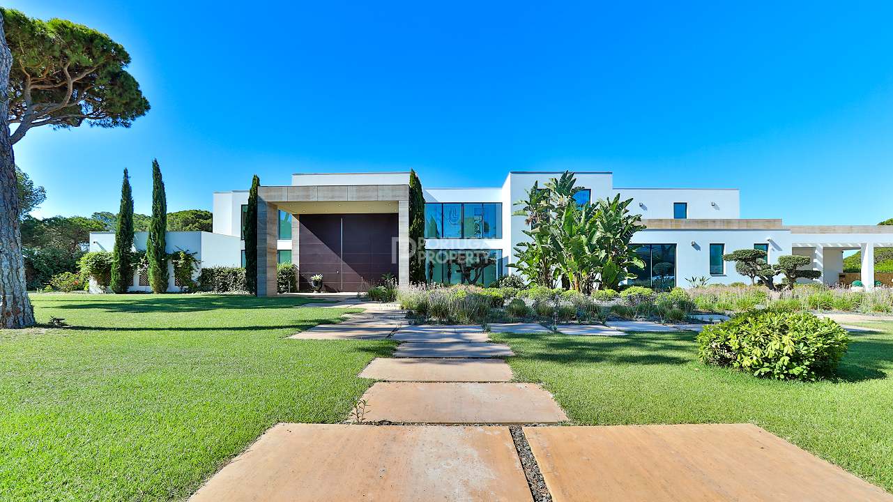 Discover unparalleled luxury in the esteemed Pinhal Velho area of Vilamoura with this exquisite villa, a 2020 masterpiece from SMS Arquitectos. Nestled on a sprawling 6,859 m2 plot, this 956.5 m2 property boasts 8 elegant bedrooms and 10 lavish bathrooms. The villa's architectural brilliance is matched by its sophisticated interiors, including a double-height lounge, a cosy TV room with a gas fireplace, and a grand dining area seating 20. Seamless outdoor integration highlights a stunning adult and children's swimming pool, a BBQ-equipped covered terrace, and a delightful children's playground amidst picturesque gardens.
