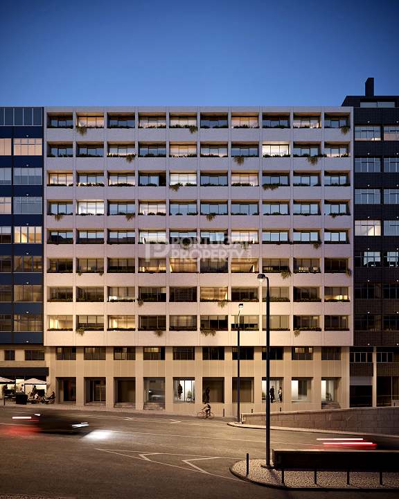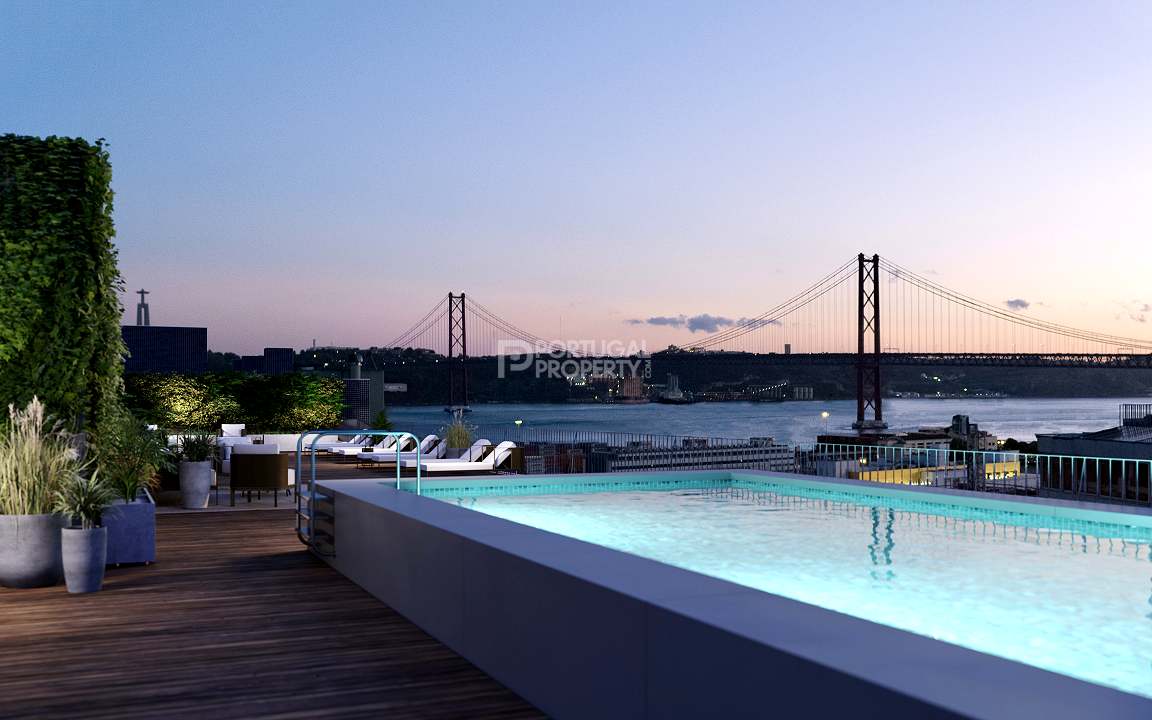 The project consists of 33 apartments over 9 floors. The range of apartments is from 1-bed through to 3-beds, with some units having exterior space, and many having views of the river. There is a communal rooftop terrace with a pool which covers the full roof and offers spectacular views of the river Tejo and Lisbon´s famous bridge.