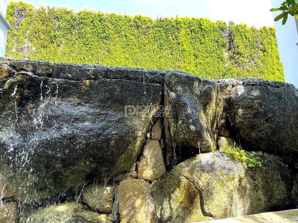 On the upper floor of the home is a very large office with views of the surrounding landscapes with a large balcony. There is also a spiral staircase that connects to the rooftop – a perfect place for star gazing or taking in the sunshine. The lower floor of the property has a very large den, family play area and home gym. Some doors connect to the garden areas on every floor of the home and every side of the building. The calming sound of a waterfall can be heard from the western side of the home.
