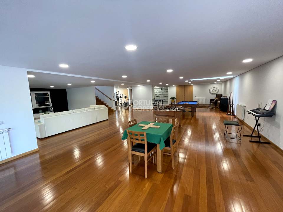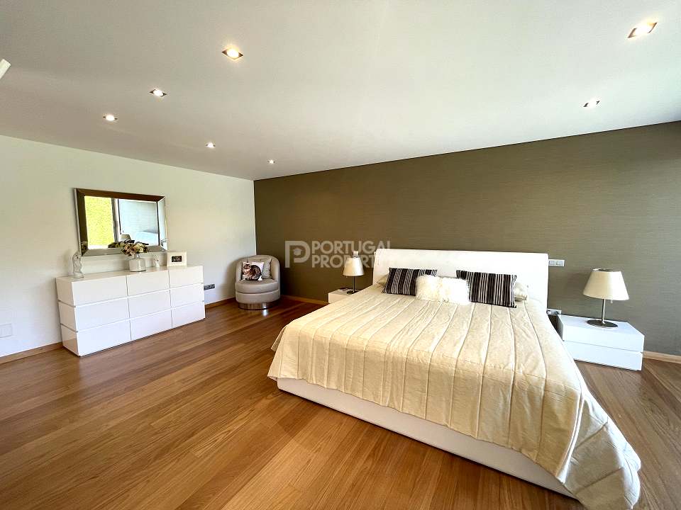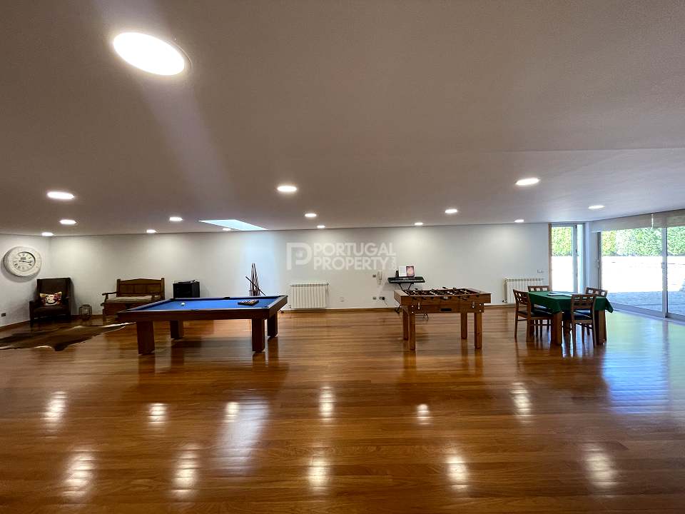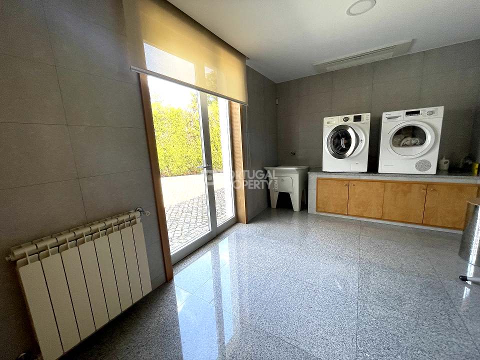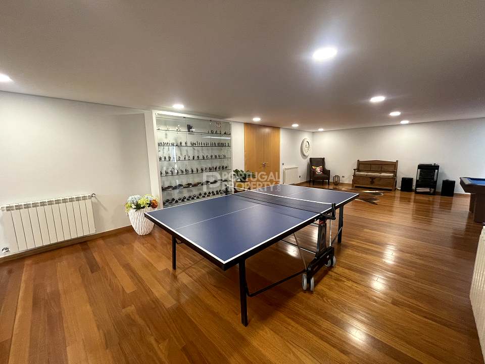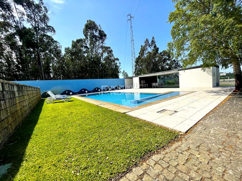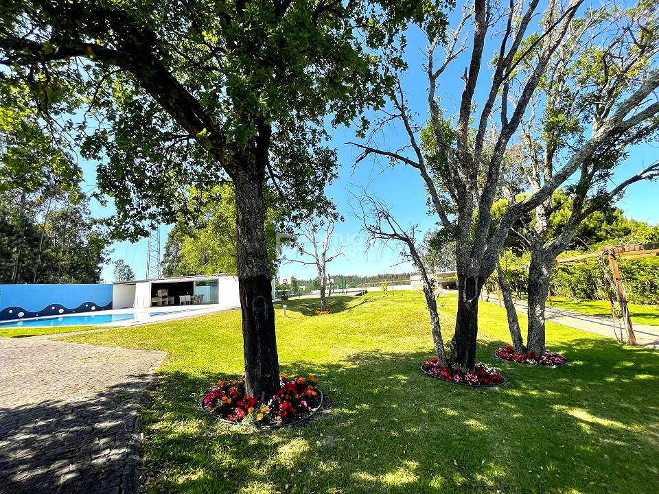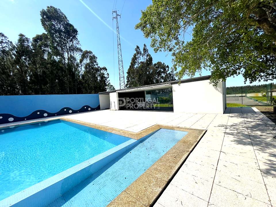 Located 12 minutes from downtown Aveiro, and 20 minutes from the gorgeous beaches of Costa Nova, this luxurious villa sits on a 4,000-square-metre plot of enclosed land. There is a covered barbeque area with a full bathroom next to the swimming pool, a full-size tennis court and basketball court, and an annexed carpentry building.