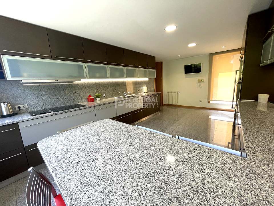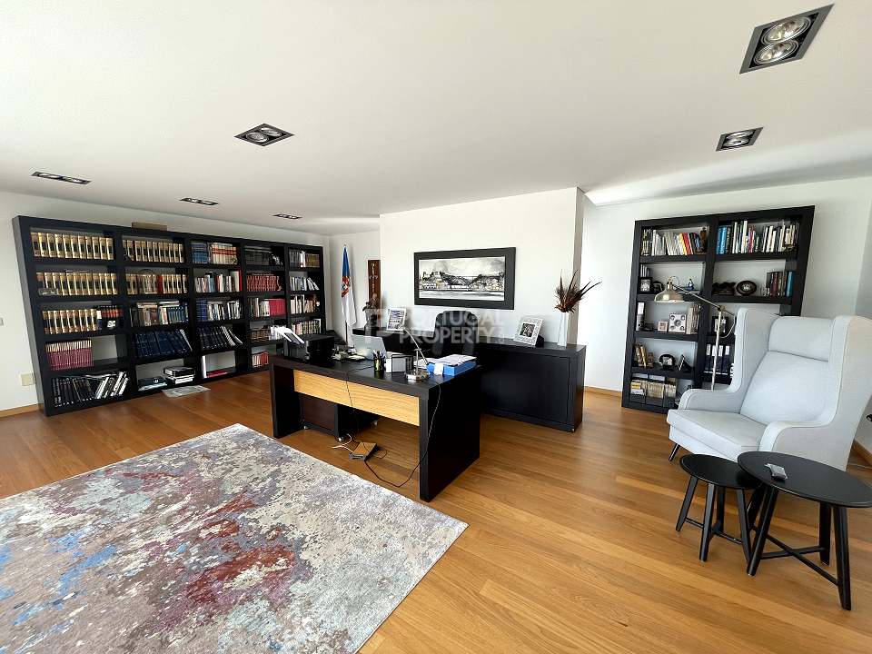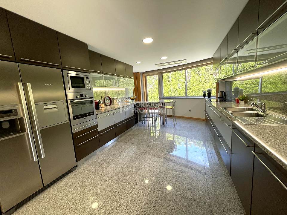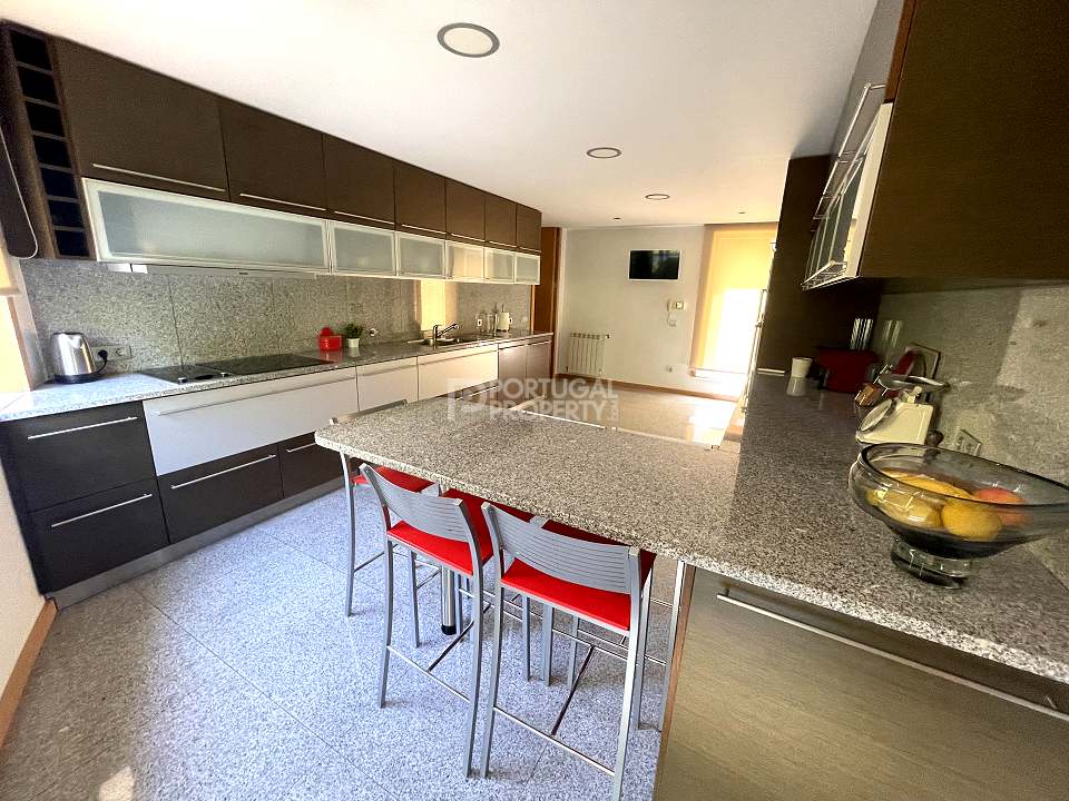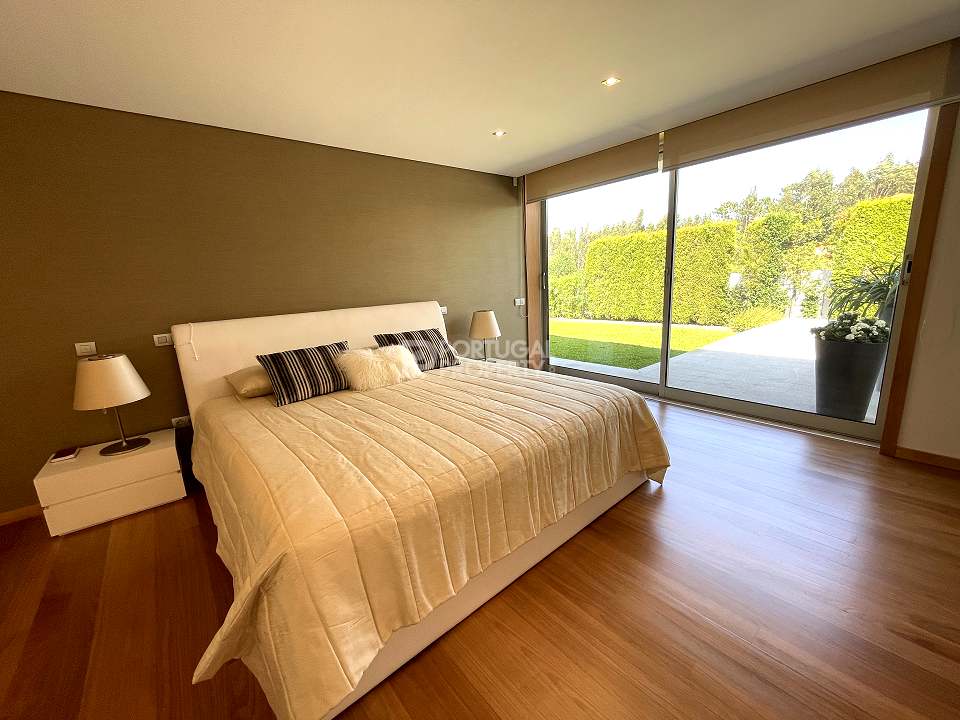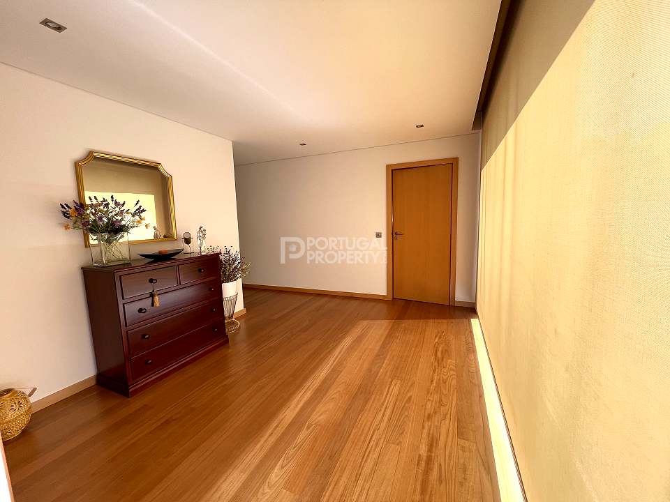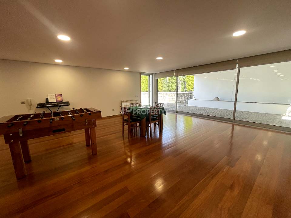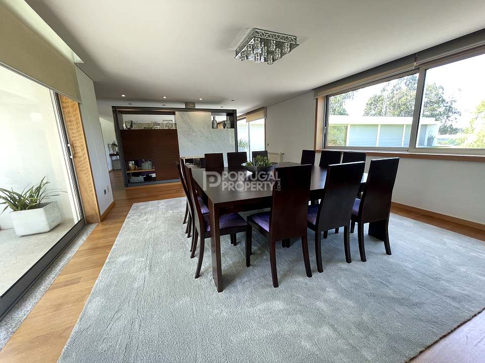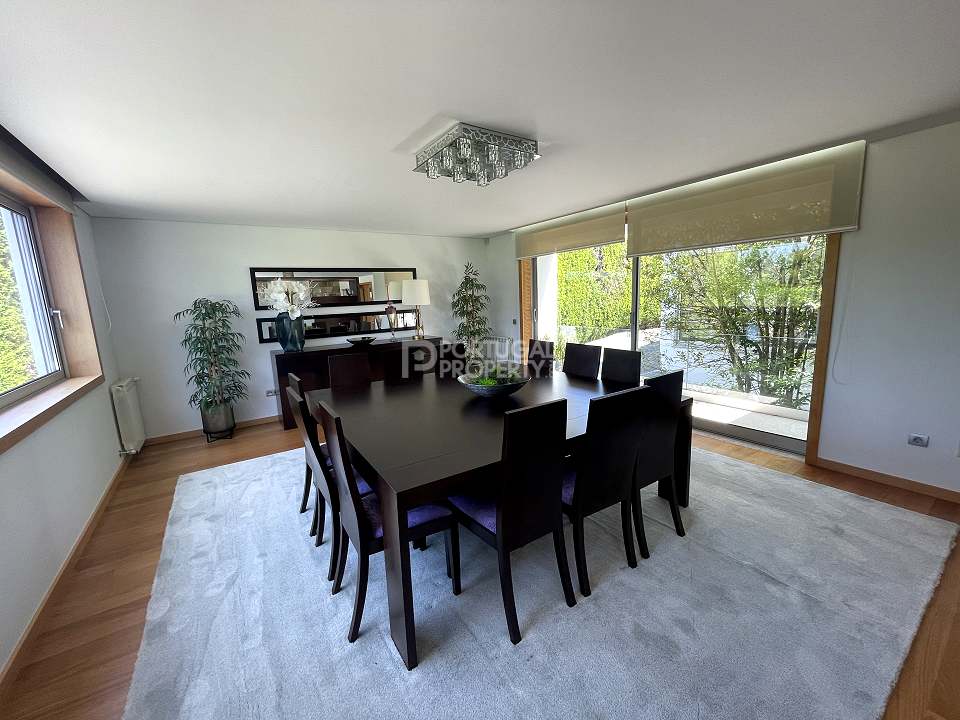 Located 12 minutes from downtown Aveiro, and 20 minutes from the gorgeous beaches of Costa Nova, this luxurious villa sits on a 4,000-square-metre plot of enclosed land. There is a covered barbeque area with a full bathroom next to the swimming pool, a full-size tennis court and basketball court, and an annexed carpentry building.
