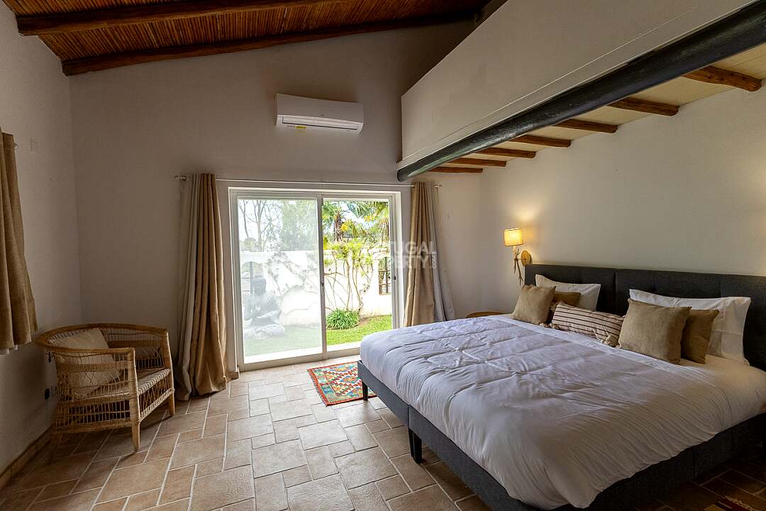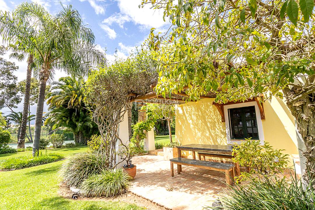 Immerse yourself in the beauty of the landscaped gardens, creating a true oasis of serenity. Additionally, the exterior features include an orchard, a substantial agricultural glass greenhouse, an area dedicated to palm tree cultivation, a water well, and a borehole for irrigation purposes, among other remarkable additions.
