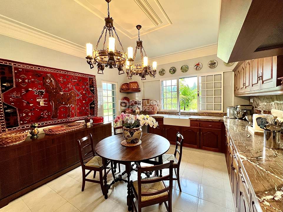 This exceptional villa serves as an ideal personal residence, a lucrative source of rental income, or both, depending on your vision. Recent renovations have transformed all kitchens and bathrooms, with the main kitchen resembling a chef's dream. Its functional layout, exquisite stone countertops, a spacious island, and tall cabinetry make it a culinary haven.