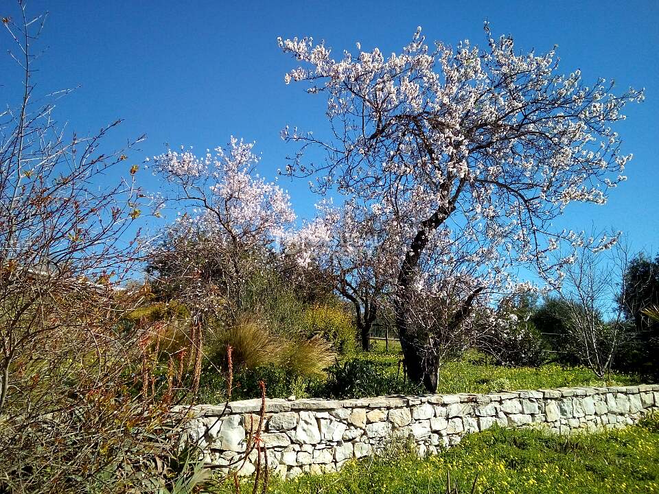 Several mature native trees including olive, carob, almond, fig, orange, and lemon