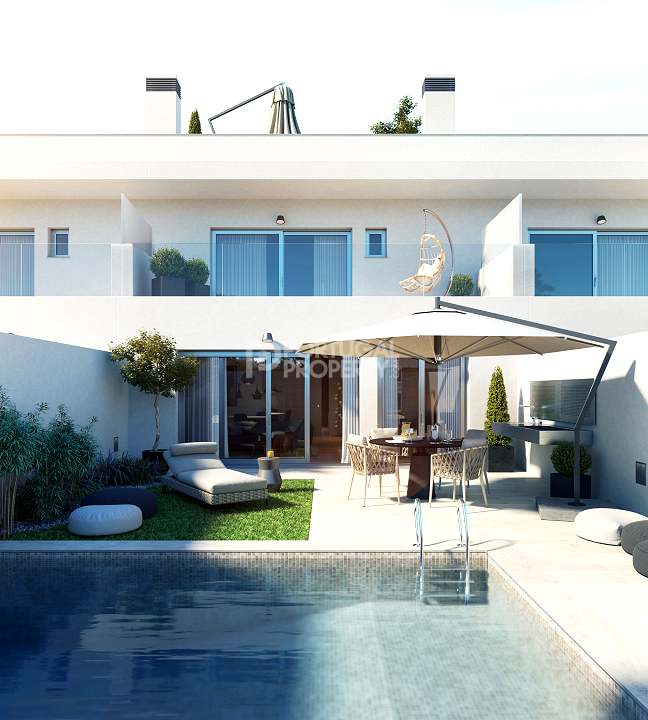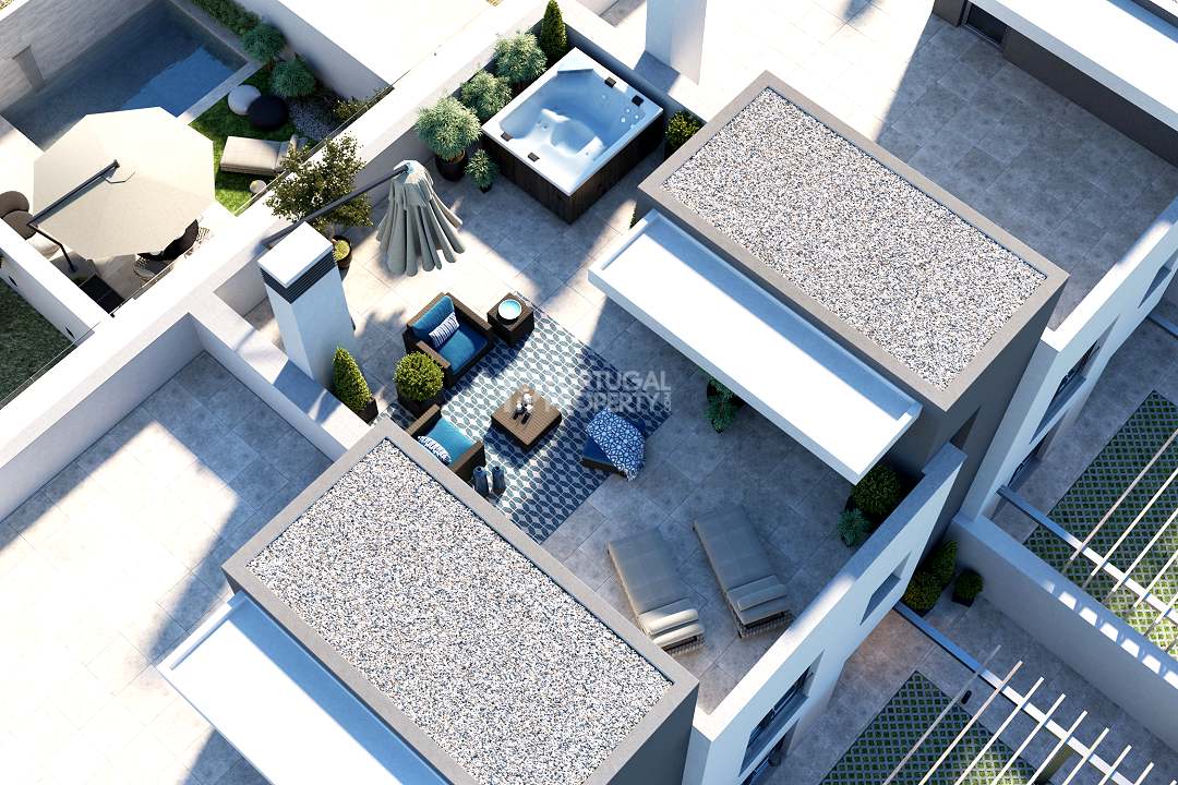 Each townhouse is swet over two floors, has enclosed parking space for 2 cars, a terrace with a swimming pool and 3 ensuite bedroom. There is also a large rooftop with pre-installation for a jacuzzi and a summer kitchedn.