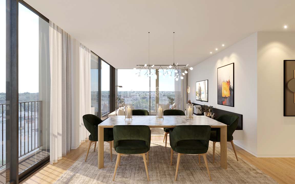 Experience the modern feel of open-plan living in the spacious apartments, where kitchen, living, and dining seamlessly intertwine. Abundant light from large windows envelops each corner, fostering a sense of peace, comfort, and calm.