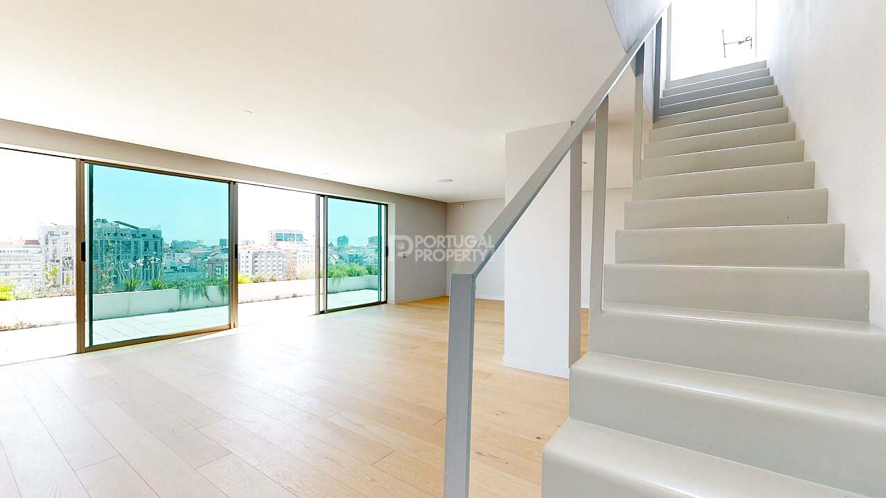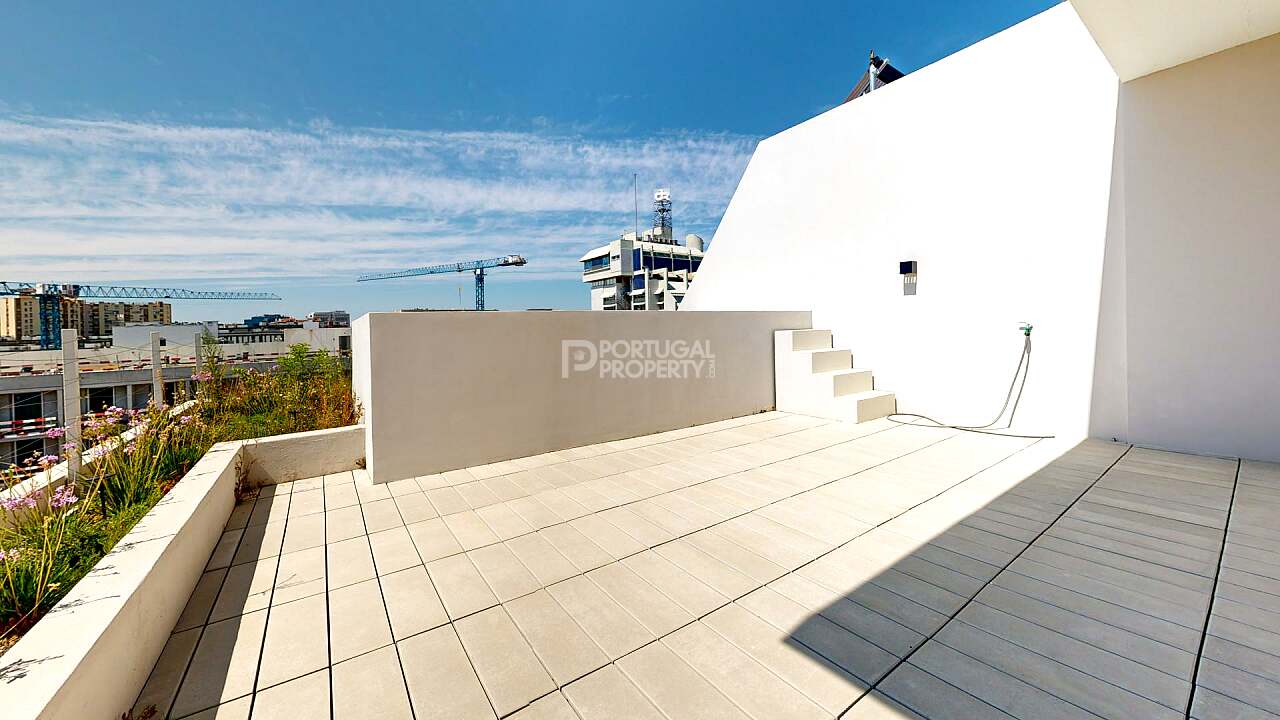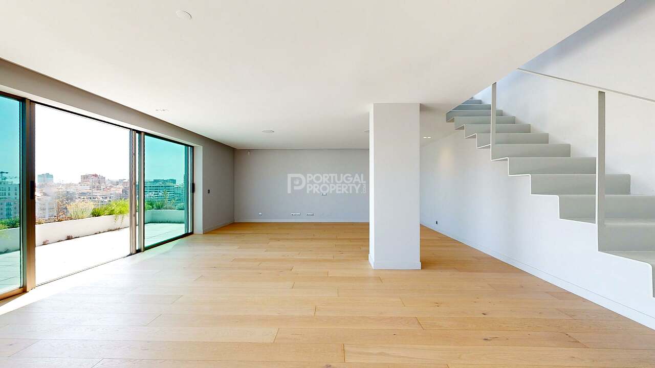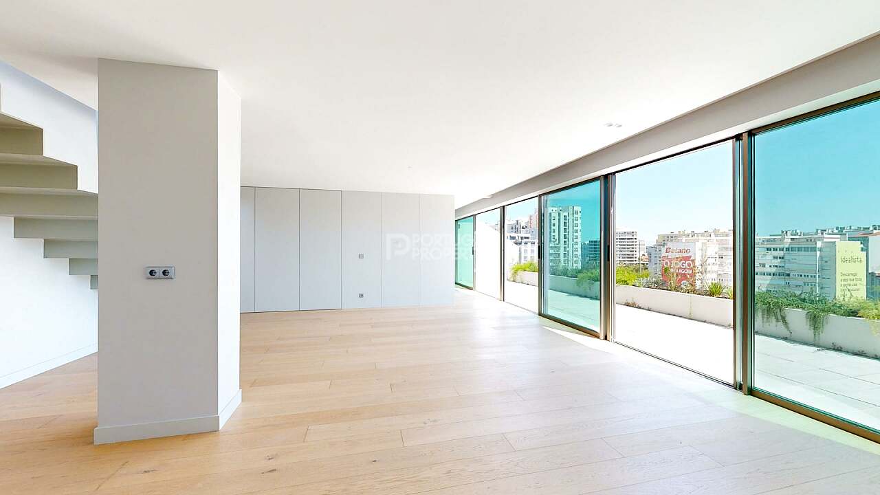 This penthouse provides a luxurious lifestyle with stunning views over the Avenidas Novas, standing out for its generous space, contemporary design, and exclusive amenities.