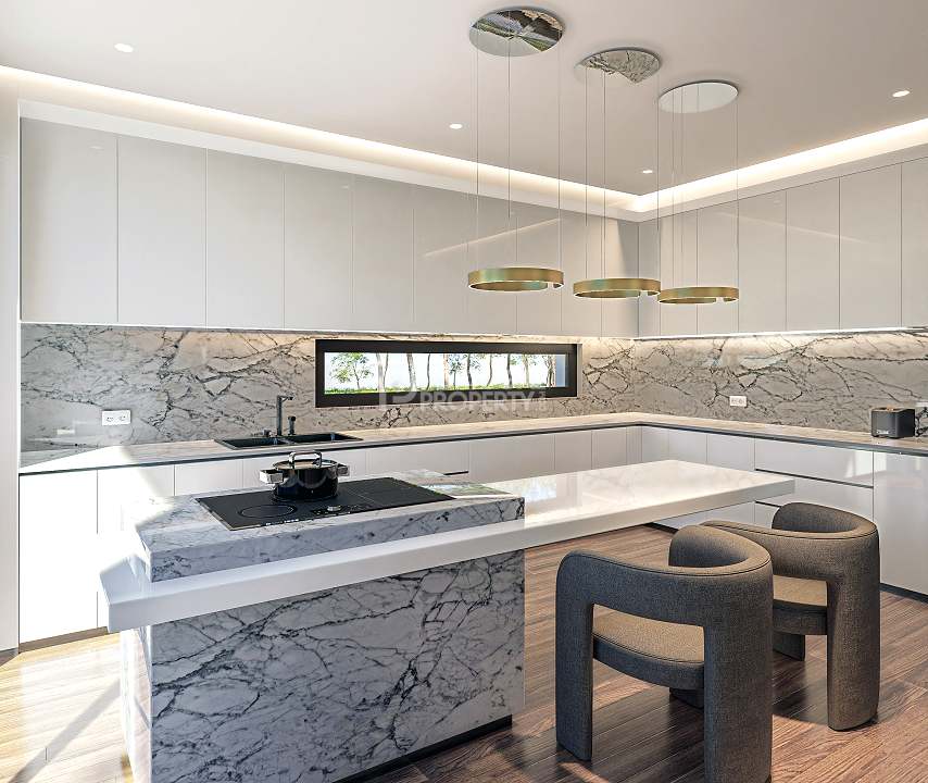 With a gross construction area of 376 m² on a 540 m² plot, the house boasts a contemporary, modern, and functional design. It features high-quality construction with meticulous attention to detail, premium finishes, and top-notch materials.