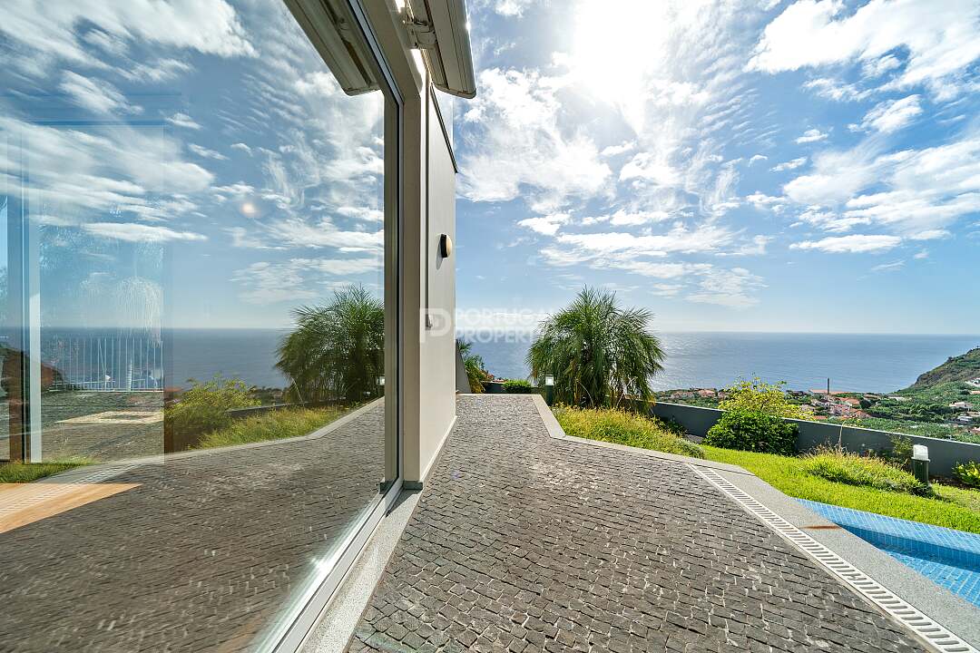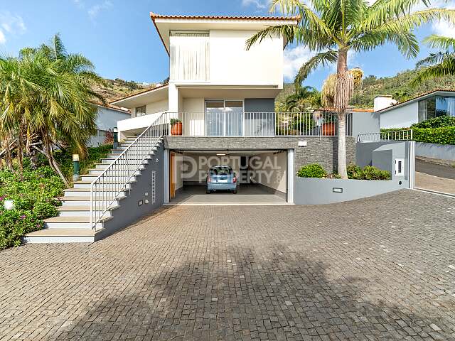 This 4-bedroom villa is situated in a no exit street, in an extremely quiet area. It offers a breathtaking and definitive view of the sea and the mountains. At an altitude of just 290 metres. This property benefits from excellent sun exposure and pleasant temperatures all year round. Ideal for those looking for tranquillity and comfort, the house is just 5 minutes from the main essential services in the Calheta area and 30 minutes from the city of Funchal.