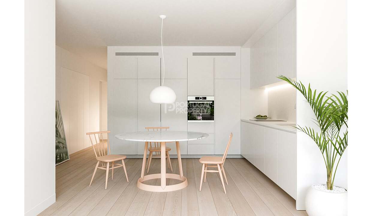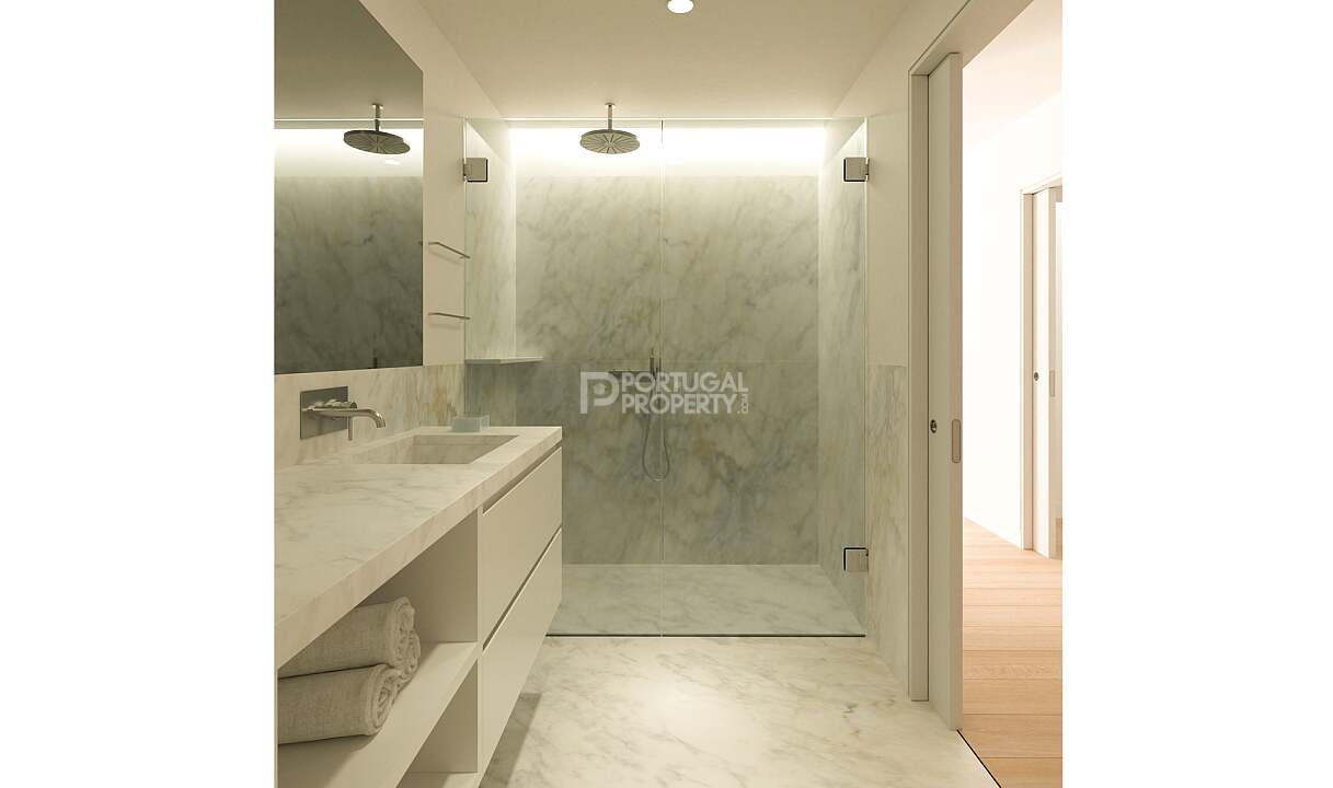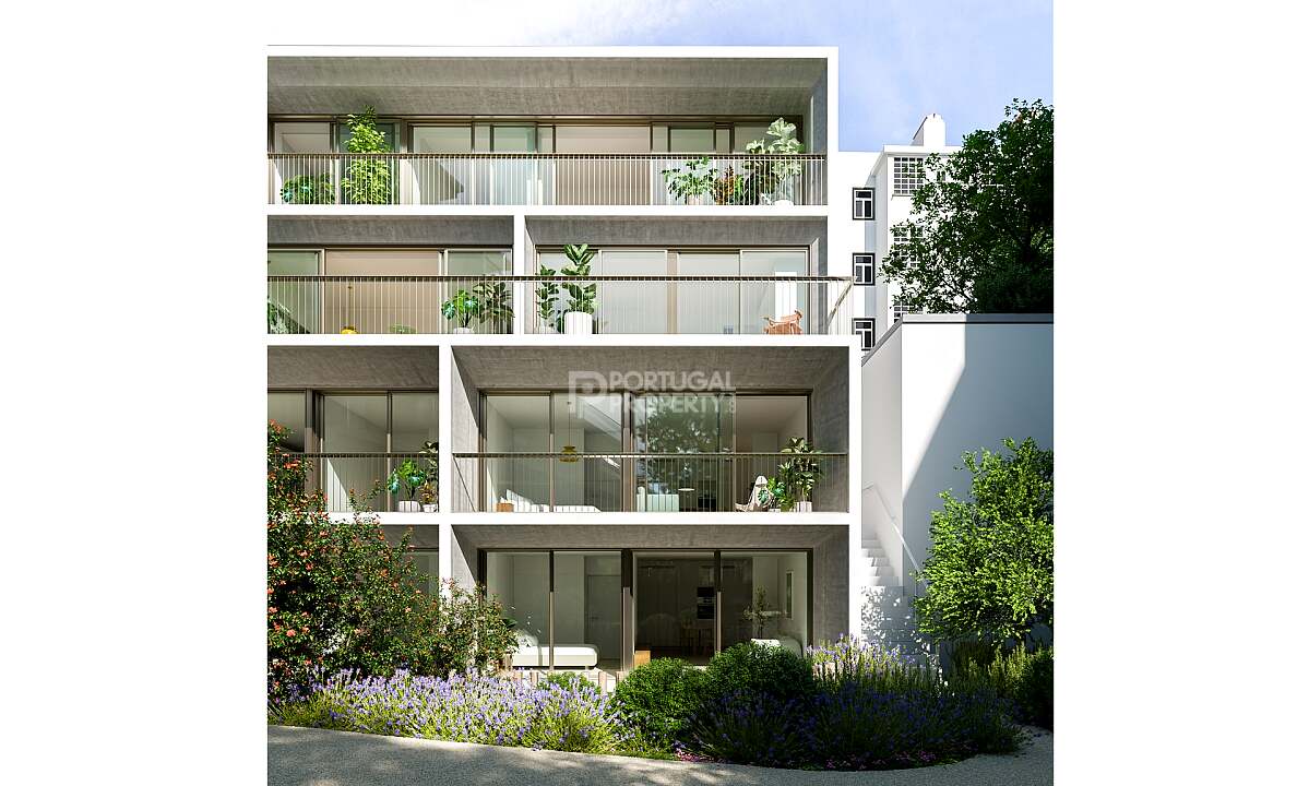 The facilities include an indoor pool with a wave machine, Turkish bath, sauna, underground parking, and concierge. The development is situated on a 5,000 m2 estate in the centre of Graça. There are 42 apartments in total distributed over 5 buildings, surrounded by gardens, pools, garden lots, and a discrete children’s play area. Its modern architecture provides classically contemporary homes with tailor-made finishes and designs of the highest quality, perfectly integrated with the surrounding nature.