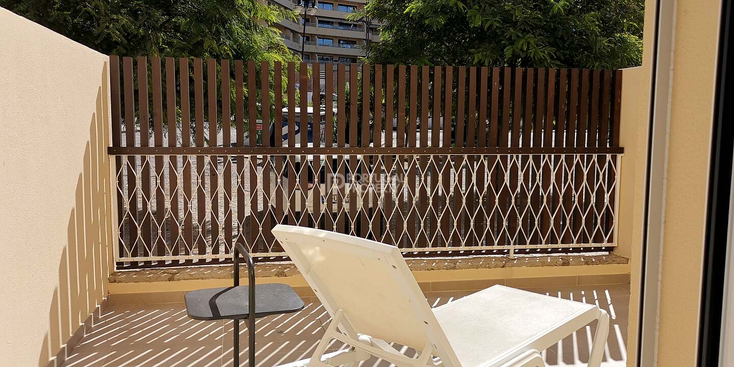 The primary bedroom features an en-suite bathroom and access to a secluded private terrace, an idyllic spot for sunbathing or quiet relaxation. A second bathroom adds extra convenience, making this property ideal for both residents and their guests.