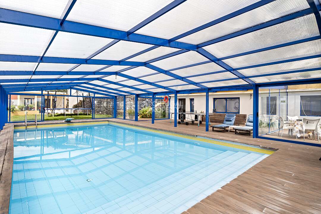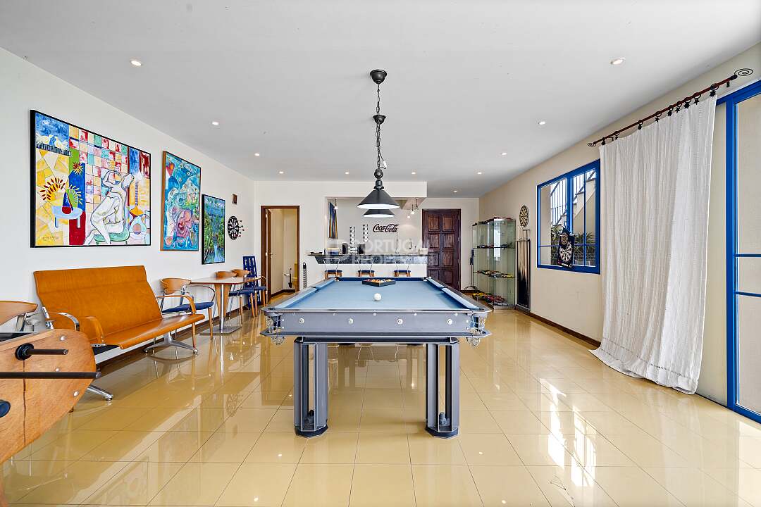 Between the main house and the short-term rental properties, there is a barbecue, a food/leisure area, kitchens/bars, bathrooms, a swimming pool, a kids area, a snooker and ping pong area, a reading/library area, a solarium, and a leisure area in general.