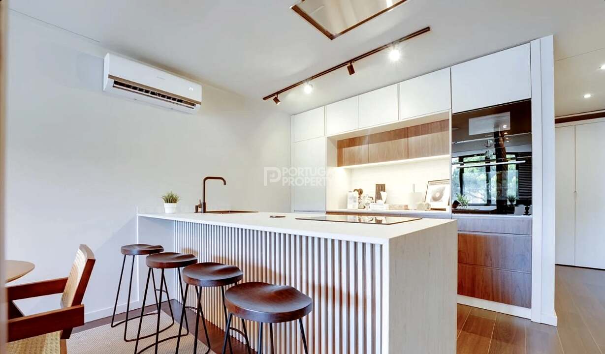 Fully renovated in 2024, this stunning 2-bedroom apartment in Vilamoura is a true gem. Tastefully decorated with warm wooden elements, it exudes a cosy and inviting atmosphere. The open-plan living room and modern kitchen create a spacious and functional living area.