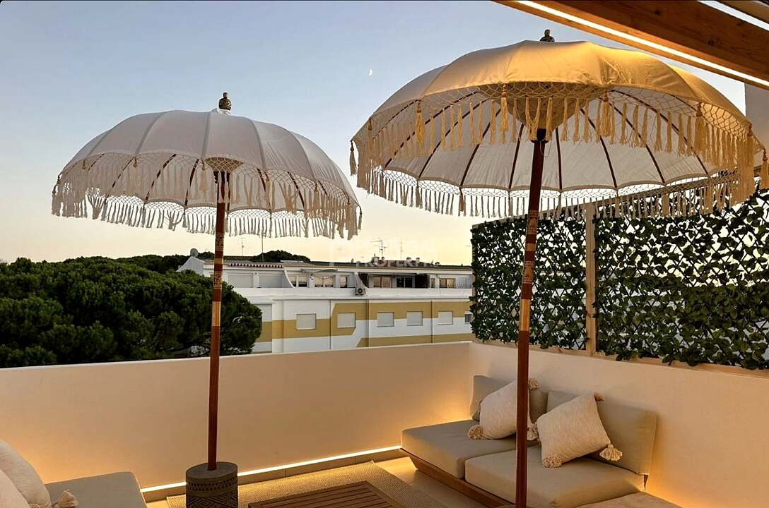 The apartment features two bedrooms, including a master suite, plus an additional bathroom. The highlight of this property is its private rooftop space, which is complete with a barbecue area and breathtaking panoramic views. Designed with a chic bohemian touch, it provides the perfect setting for relaxation and entertaining.