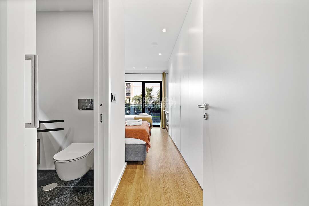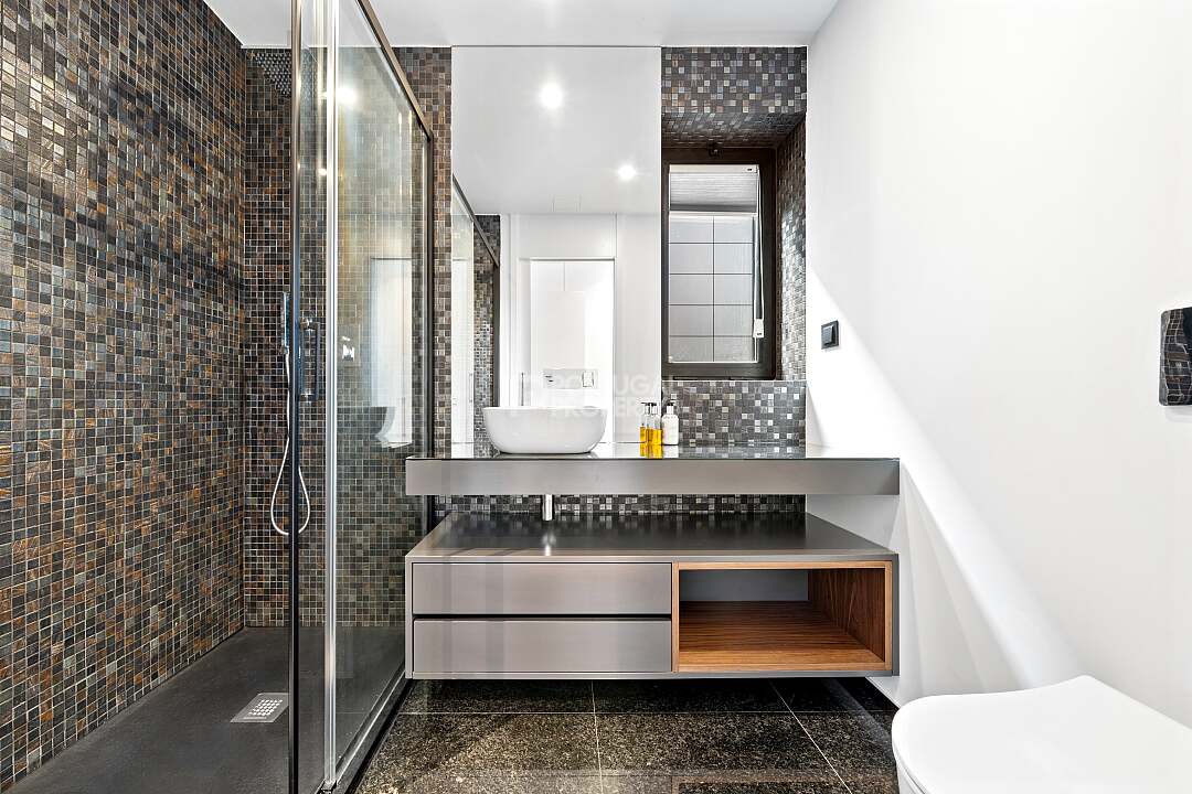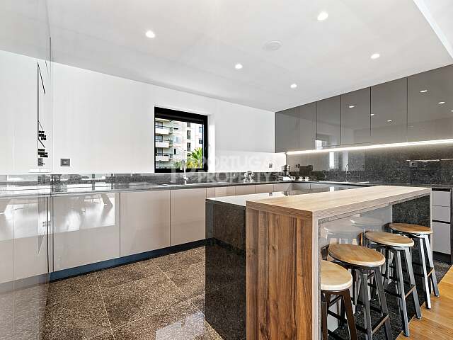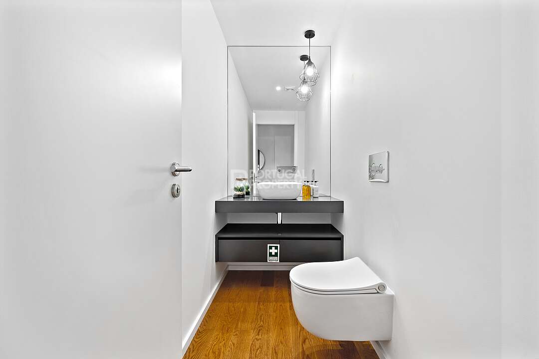 Este apartamento dispõe de três casas de banho bem projetadas. Duas são suítes privativas, cuidadosamente concebidas para oferecer privacidade e conforto a cada quarto. A terceira é uma elegante casa de banho social, ideal para receber convidados. Cada casa de banho apresenta acabamentos contemporâneos, acessórios de alta qualidade e um design sofisticado que complementa o estilo de vida moderno.