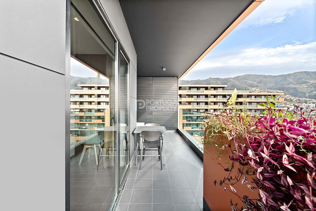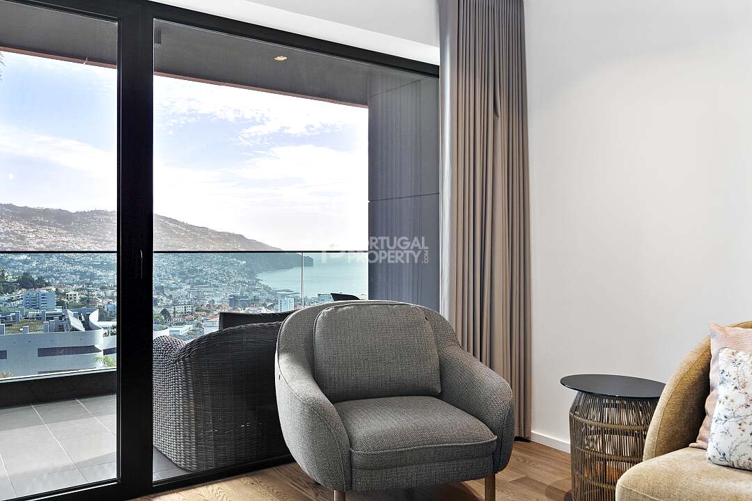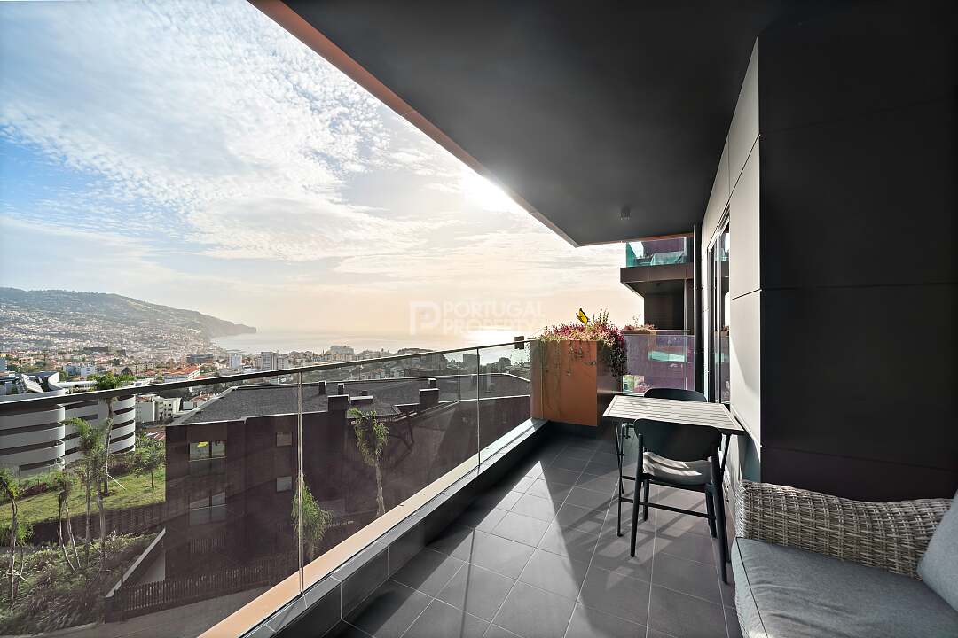The generously sized balcony offers panoramic vistas of the ocean, mountains, and Funchal. It’s the perfect spot to relax, entertain, or enjoy a quiet morning coffee. -