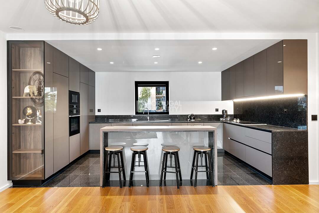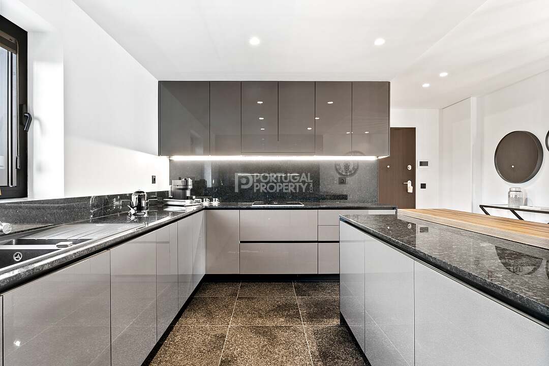 The open-plan kitchen is equipped with state-of-the-art appliances, seamlessly blending functionality with style. With modern cabinetry and premium countertops, it’s ideal for preparing meals or entertaining guests. -