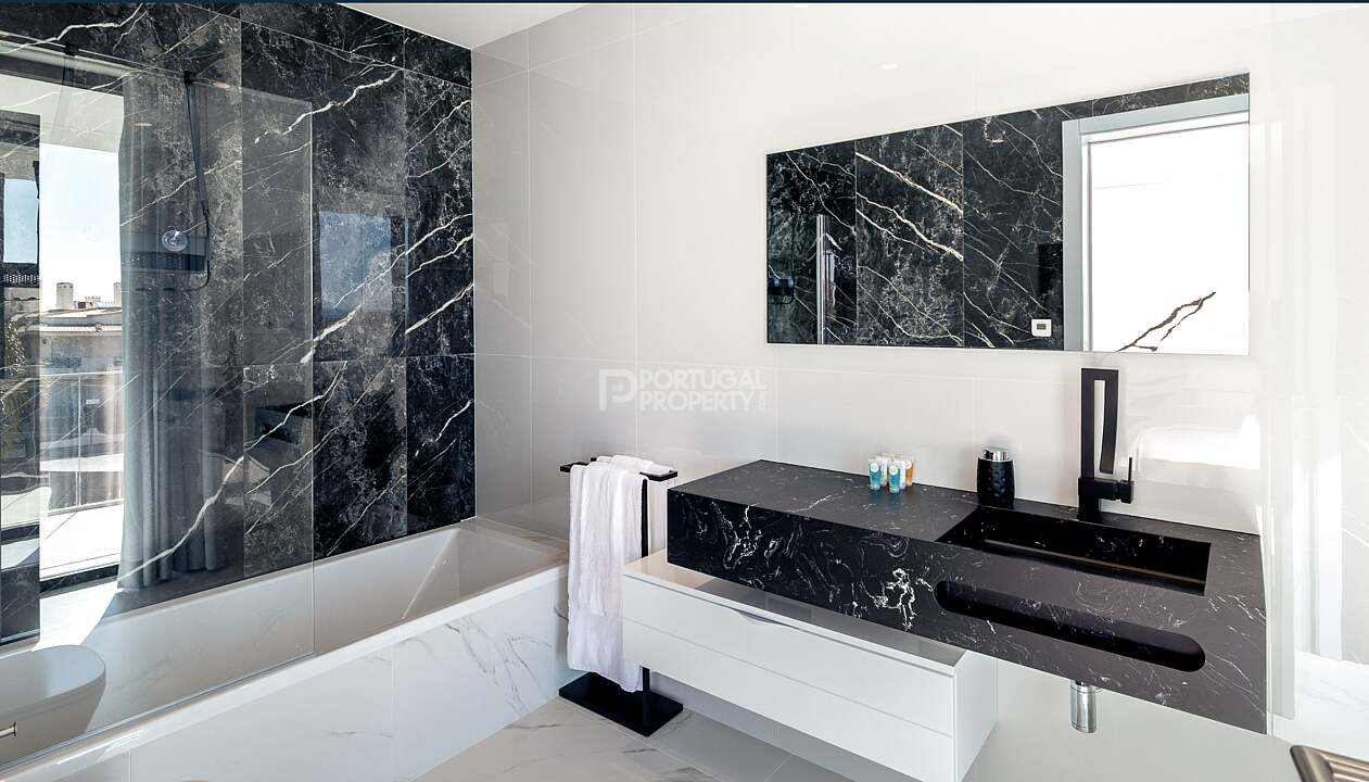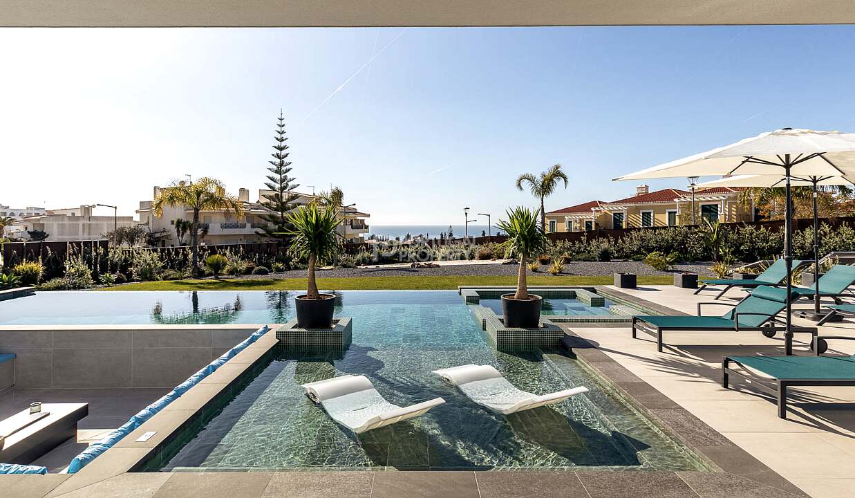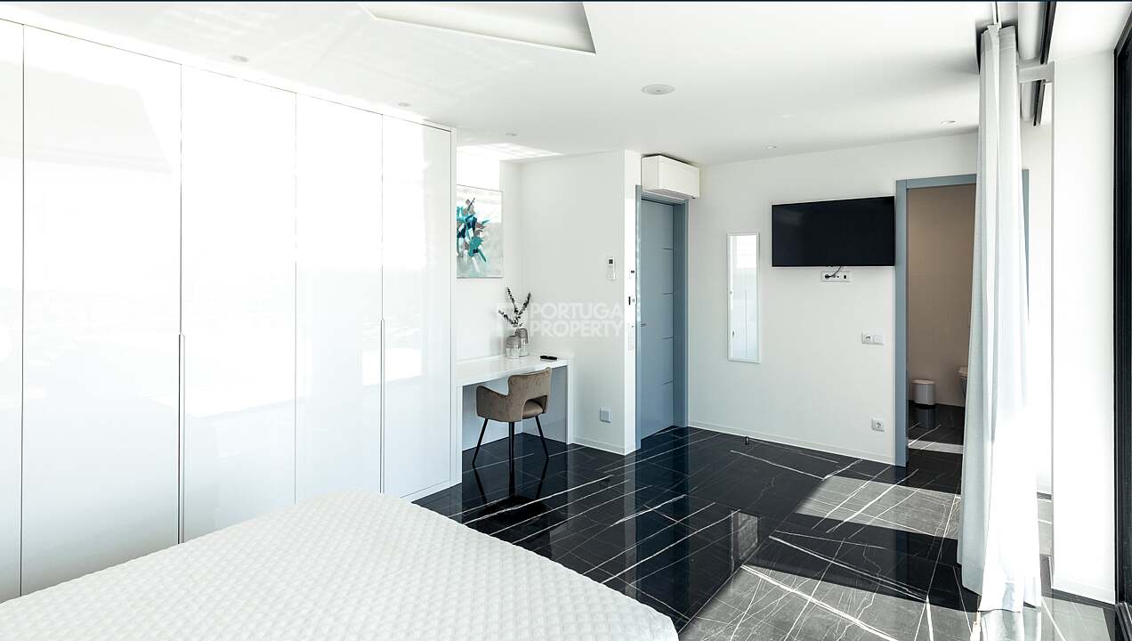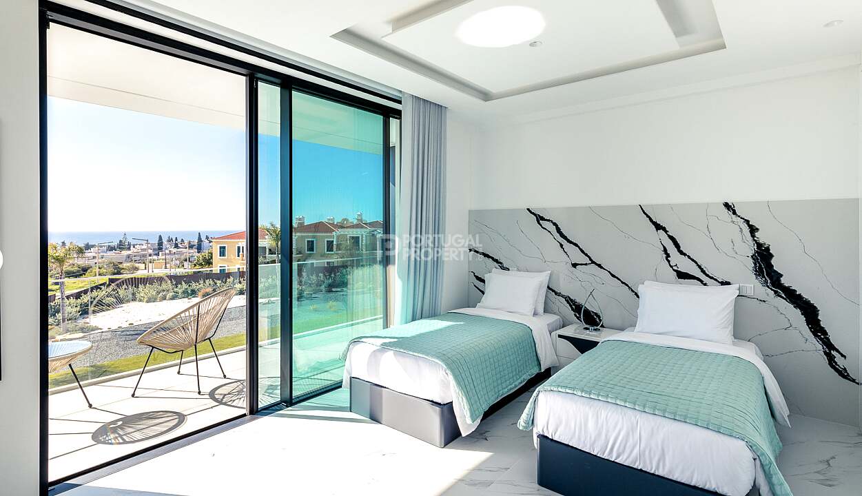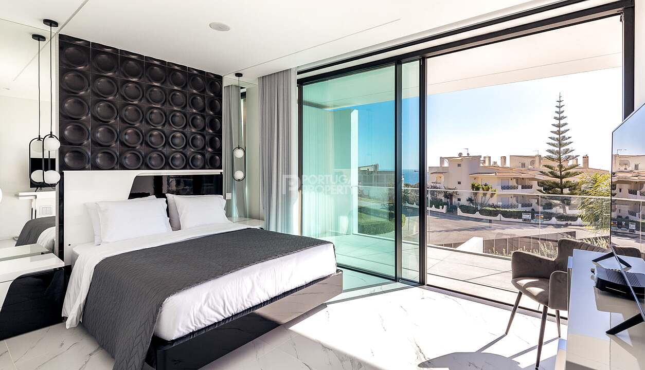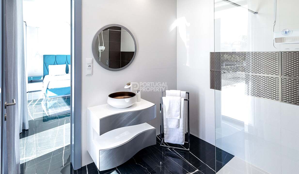 On the first floor, four additional en-suite bedrooms come with private balconies offering spectacular sea views. These serene retreats are perfect for relaxing while soaking in the natural beauty of the Algarve coastline.