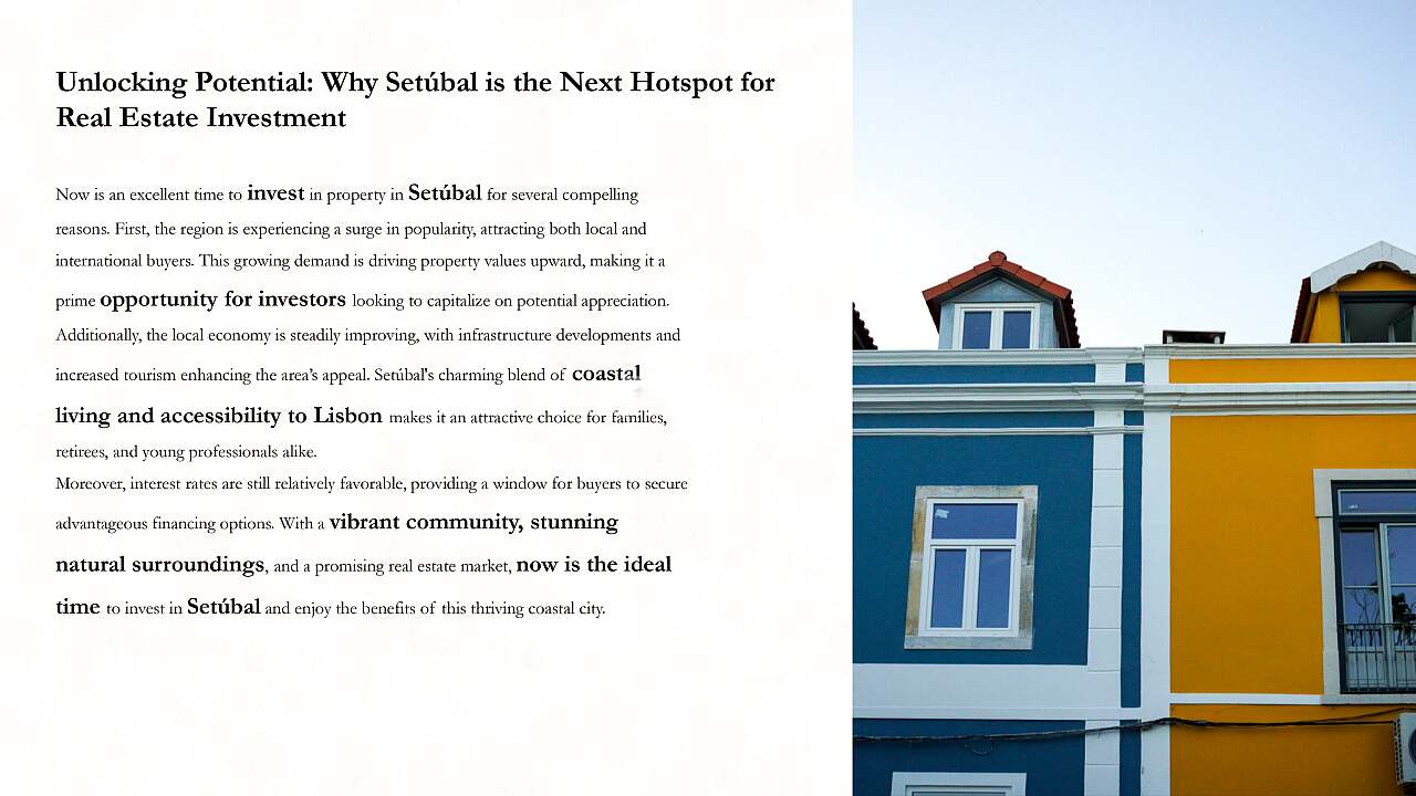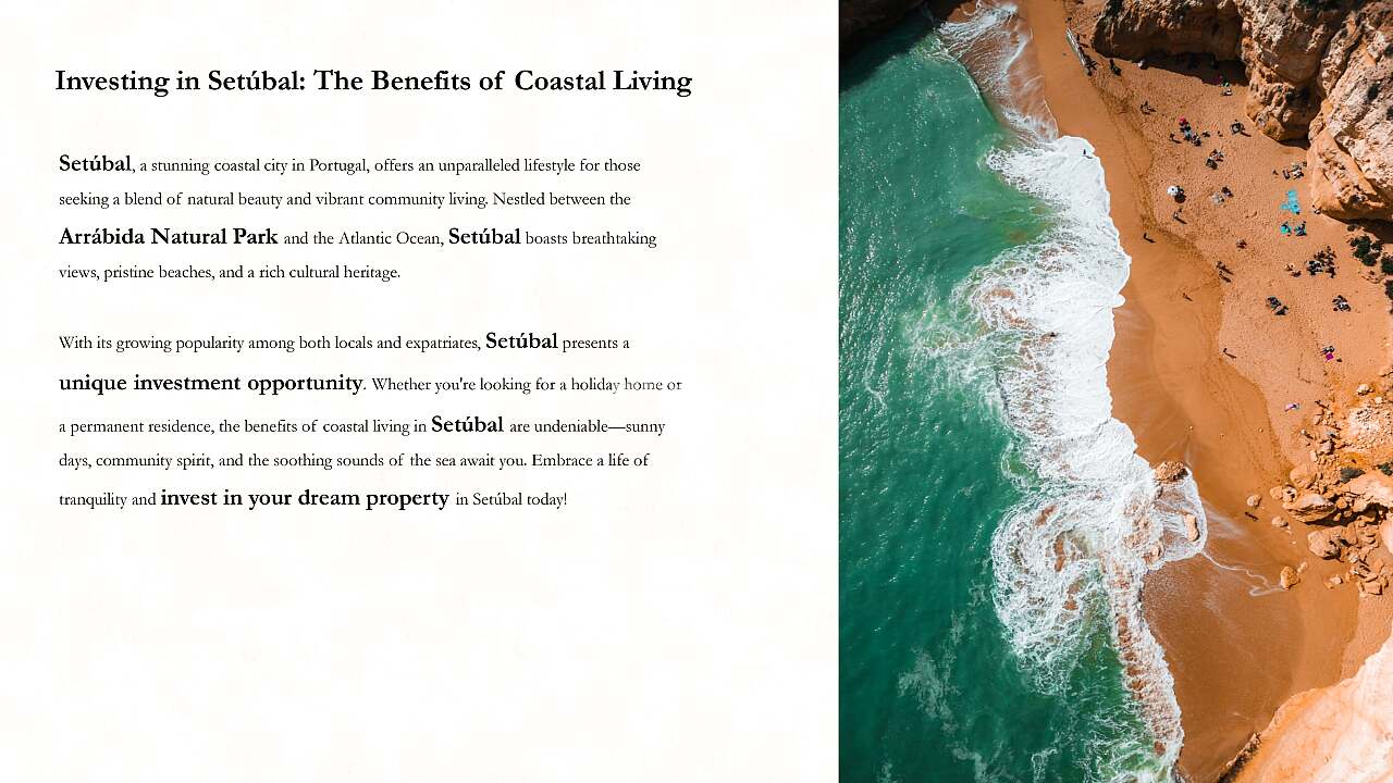 The market is hot, with an increasing demand from international buyers, and prices are still accessible. With favourable interest rates and ever-developing infrastructure, Setúbal is a place where your investment can thrive and multiply.