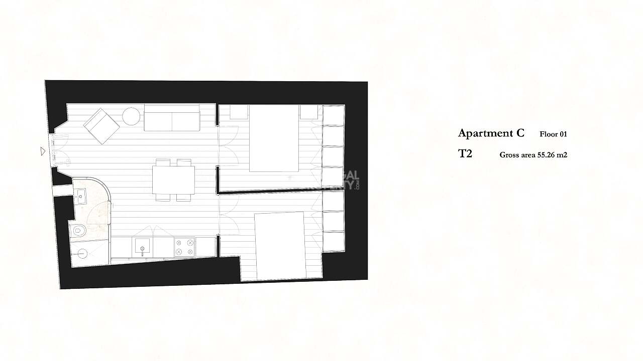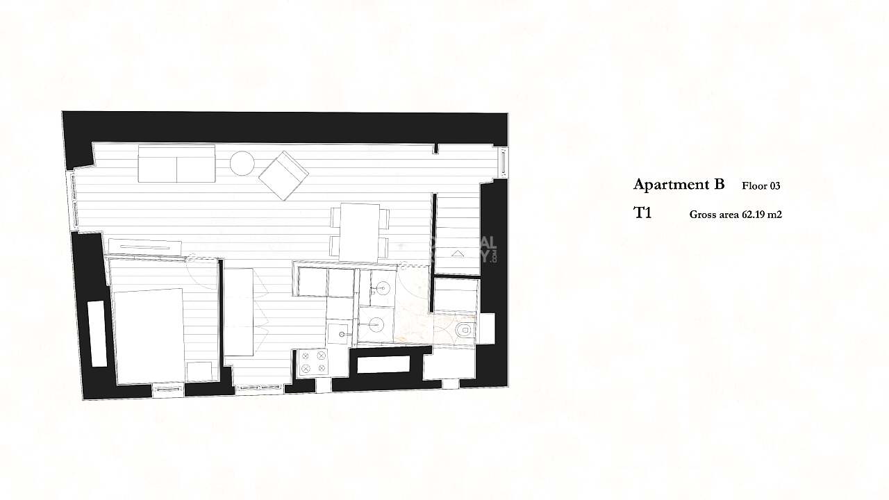- 3rd floor – T1 | 62.19 m² – Spacious, bright, and with huge potential to be transformed into your vision, bringing it to life in a unique way.