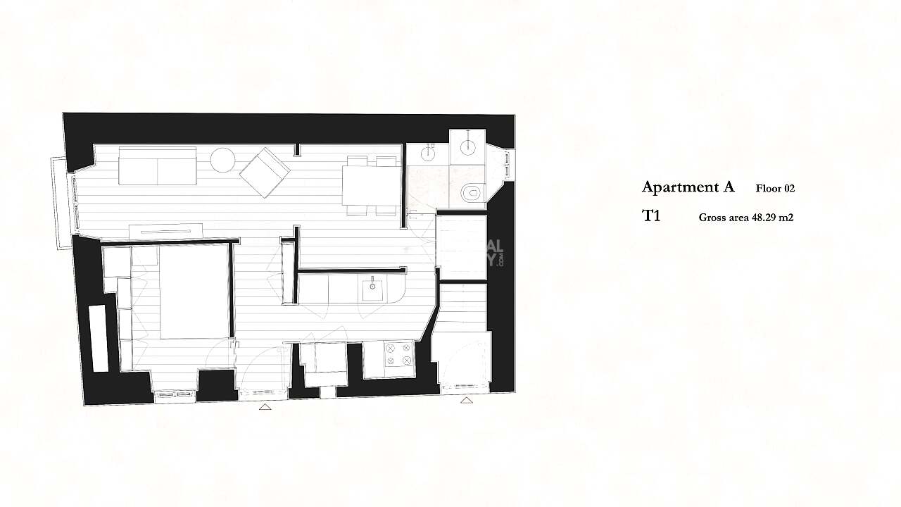 - 2nd floor – T1 | 48.29 m² – A modern space full of personality, perfect for a charming loft.